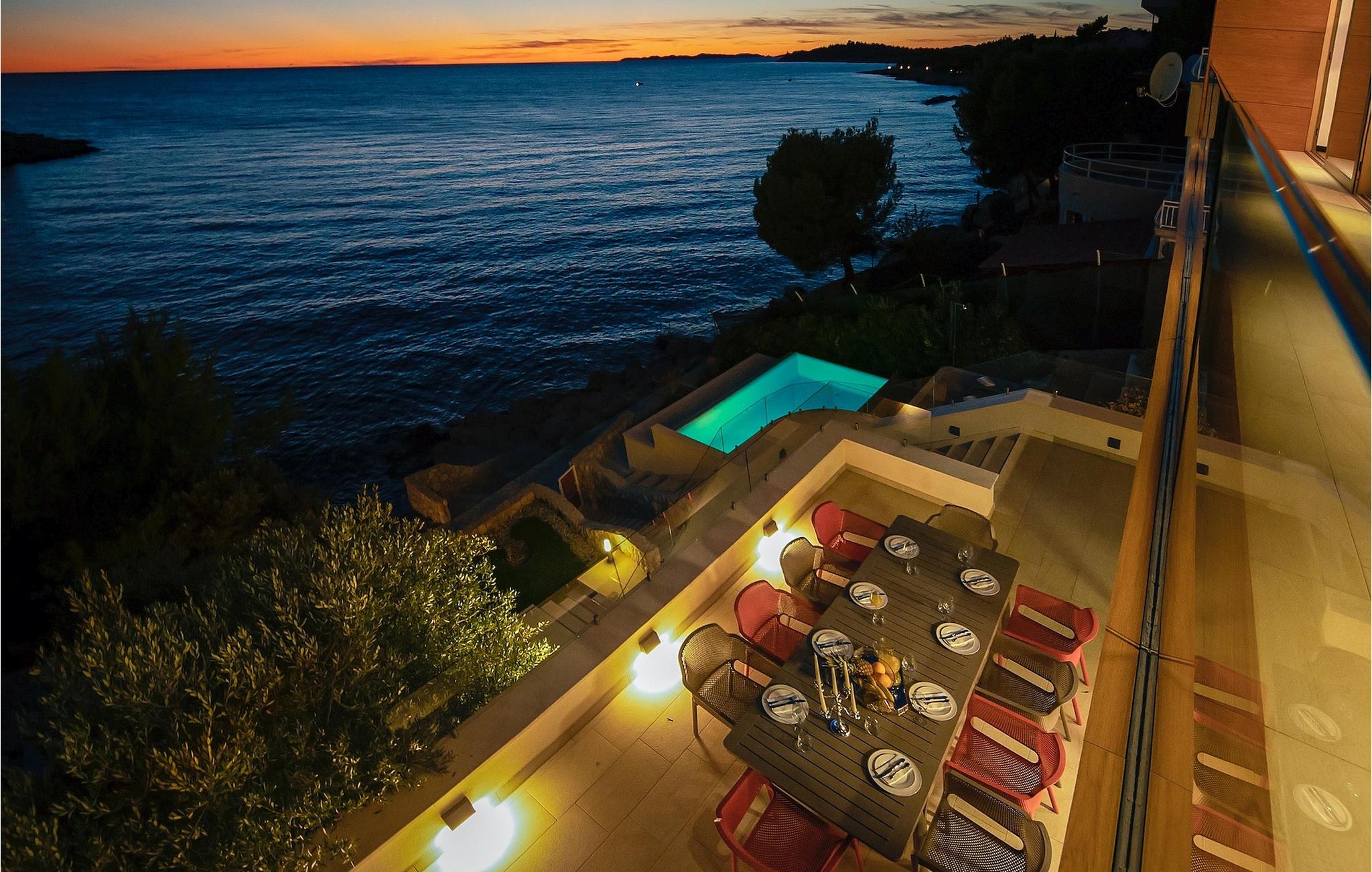 Der erstaunliche, einzigartige und großartige Blick auf das Meer ist definitiv der Hauptgrund für einen Traumurlaub in der wunderschönen Villa Gloss, die direkt am Meer ligt. Wachen Sie jeden Morgen mit dem Klang der Wellen und einem wunderschönen Blick auf das glasklare Meer auf. Erwecken Sie Ihre Sinne und genießen Sie diese tolle Einrichtung. Die Villa Gloss ist eine geröumige und lichtdurchflutete Villa, die aufgrund ihrer Lage und ihrer angenehmen Ambiente den perfekten Ort für einen entspannten Urlaub bietet. Gleichzeitig verfügt die Villa über alle notwendigen modernen Einrichtungen, die Ihnen den perfekten Urlaub bieten. Die Villa Gloss kann bis zu 12 Gäste beherbergen und bietet 5 schöne Schlafzimmer.
