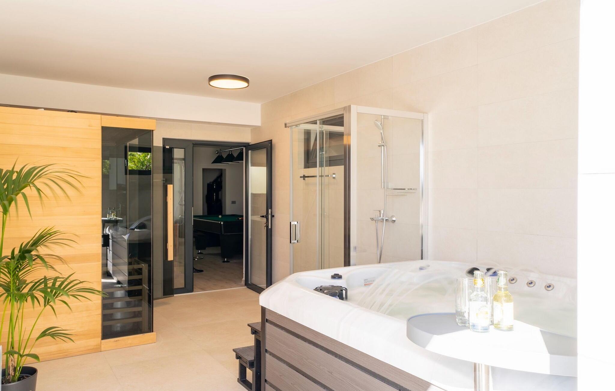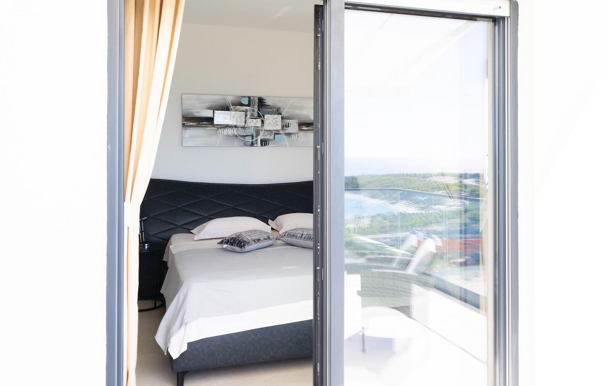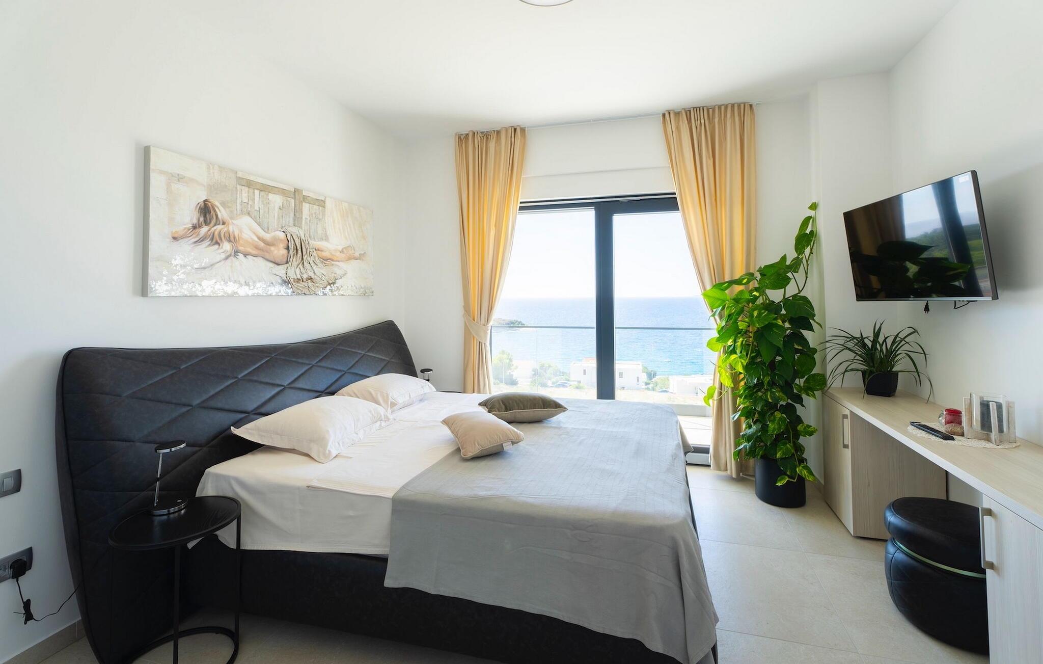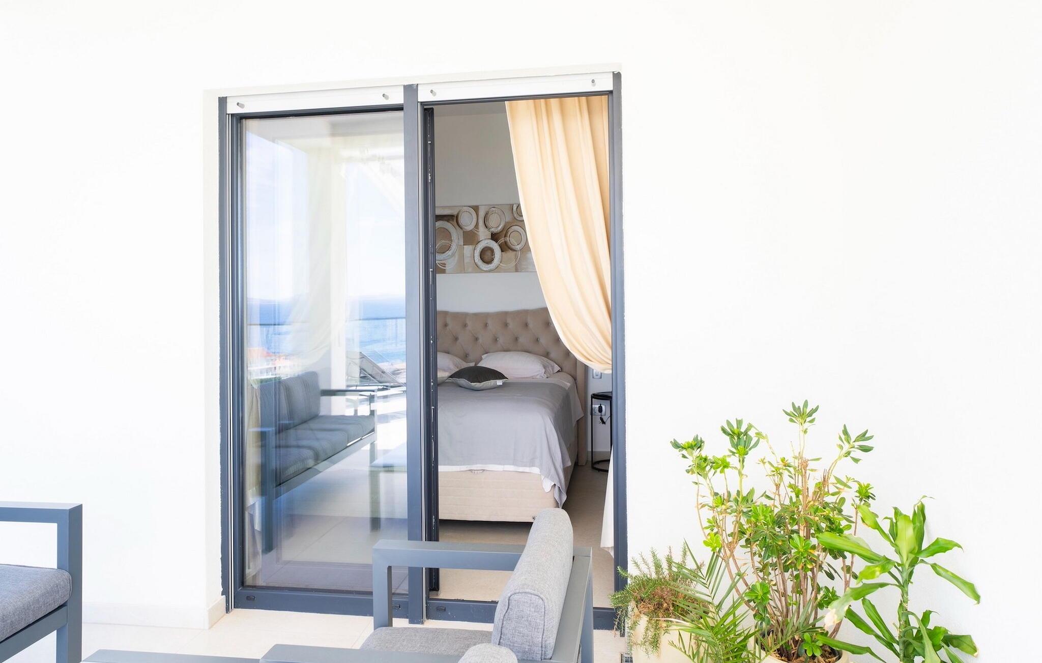 Zu der weiteren Ausstattung, die Sie erwarten können, gehören eine Sauna mit Whirlpool, ein Billardzimmer mit Bar und Fernseher und ein privater Fitnessbereich. Eines der komfortablen, elegant gestalteten Doppelzimmer befindet sich im Erdgeschoss, die anderen 3 befinden sich im Obergeschoss. Hier finden Sie einen großen Balkon, auf dem Sie Ihren Morgenkaffee mit Blick auf das schimmernde Meer genießen können.