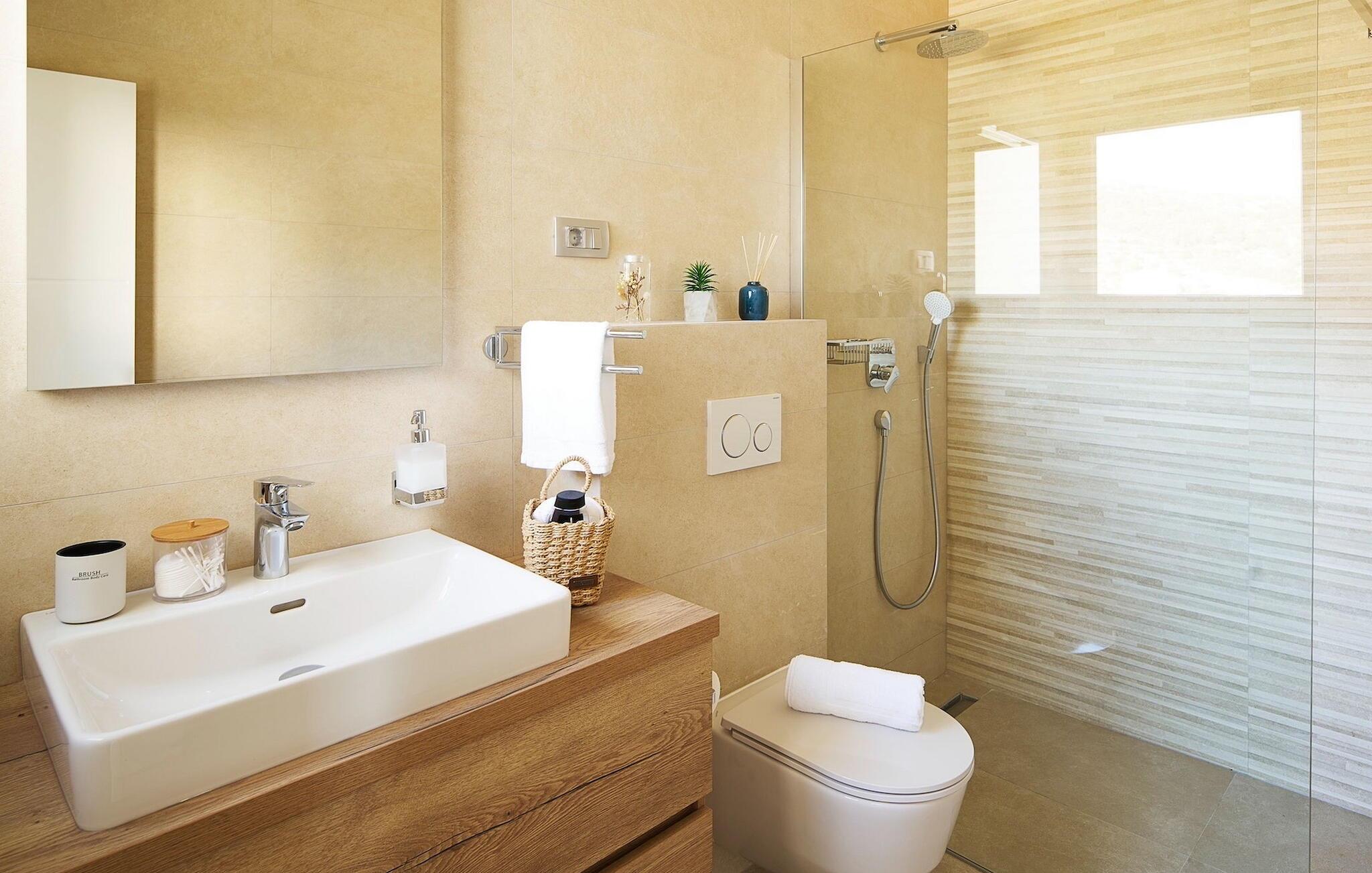 - WC mit warmem und kaltem Wasser, Dusche und Badewanne