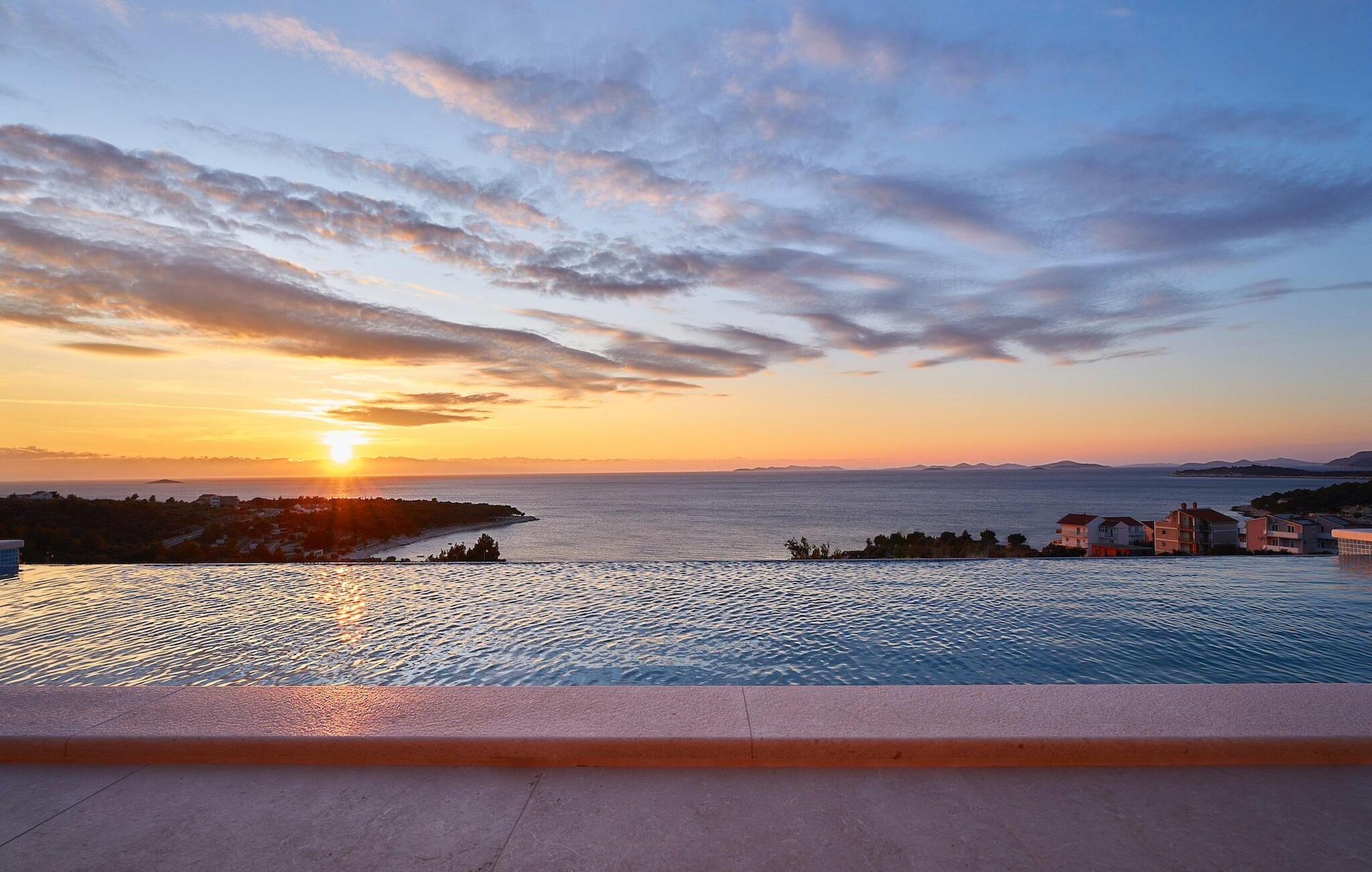 Wenn Sie auf der Suche nach einer Villa mit einem atemberaubenden Blick auf das Meer, die Küste und mehrere Inseln sind, den Sie vom Rand Ihres eigenen privaten Infinity-Pools aus genießen können, sind Sie bei der Villa Infinity View genau richtig. Alternativ können Sie auf 4 Sonnenliegen die Sonne oder die Aussicht im Schatten des Loungebereichs genießen. Ein Grill ist vorhanden, sodass Sie vom Essbereich für bis zu 8 Personen eine köstliche Mahlzeit mit Blick auf das Meer genießen können.