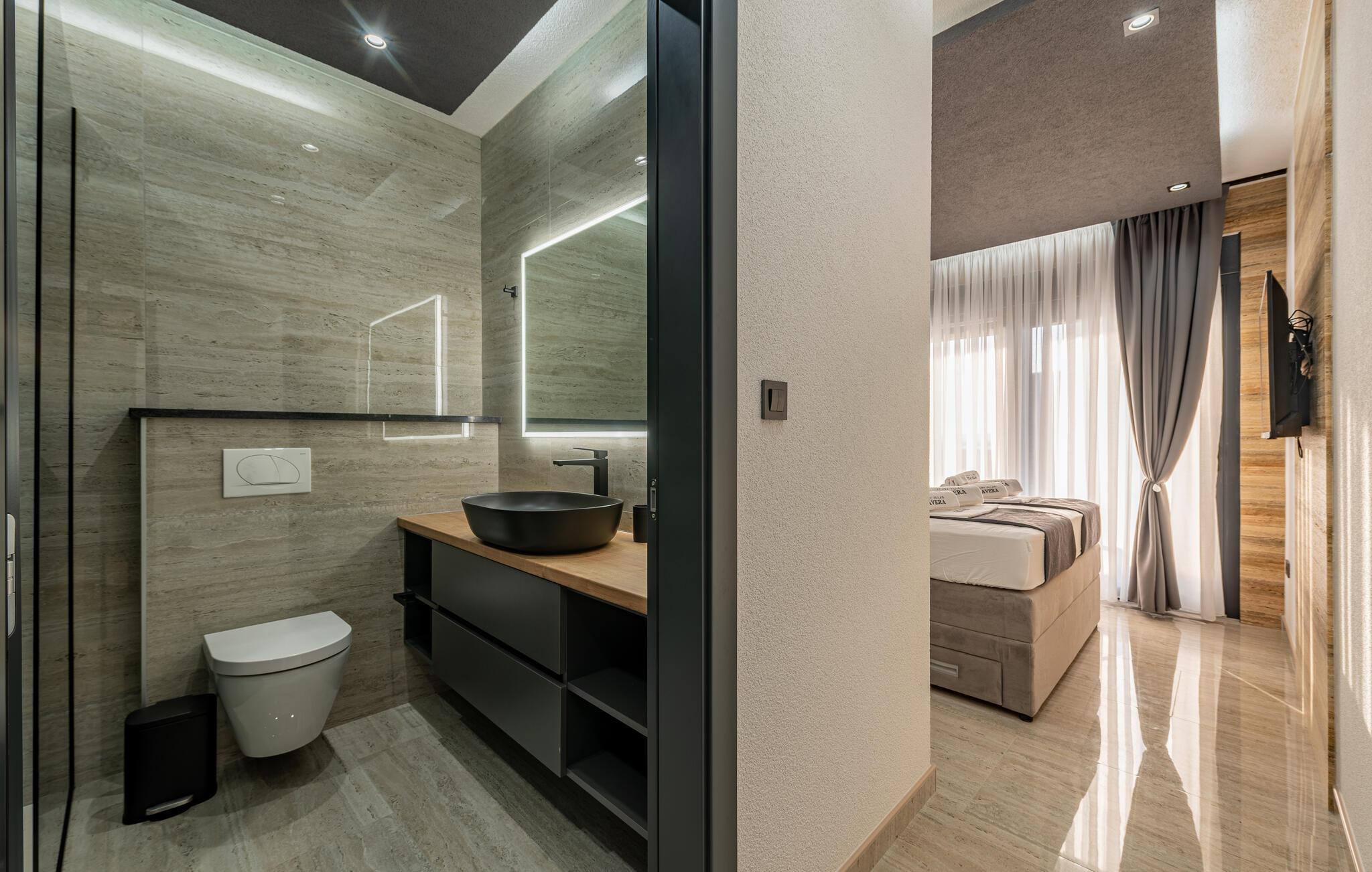 - WC mit warmem und kaltem Wasser, Dusche