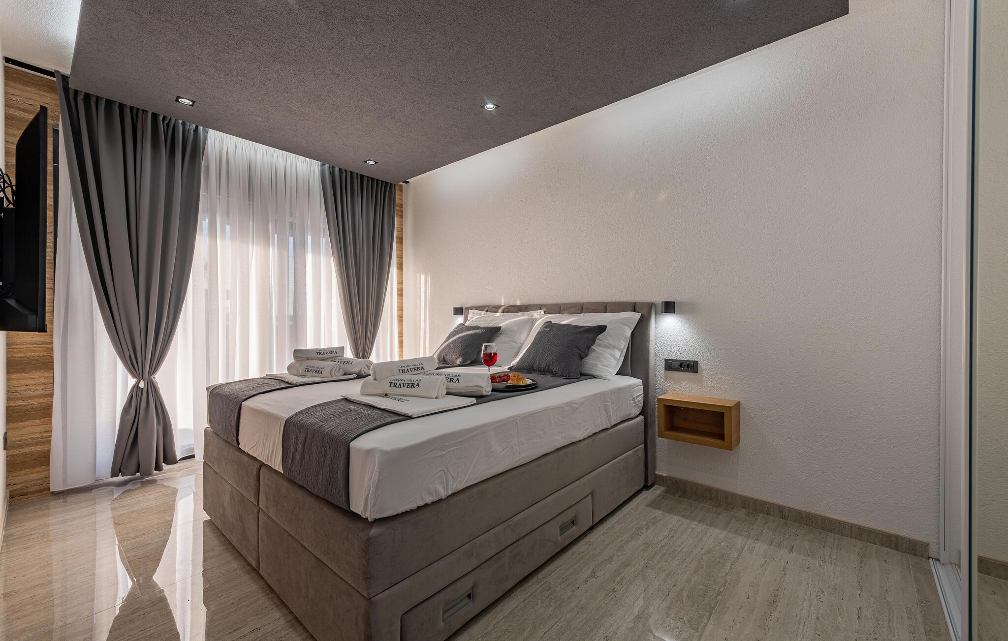Genießen Sie ein herrliches Meerespanorama Urlaub in diesem komfortablen Ferienhaus mit Pool und Whirlpool.