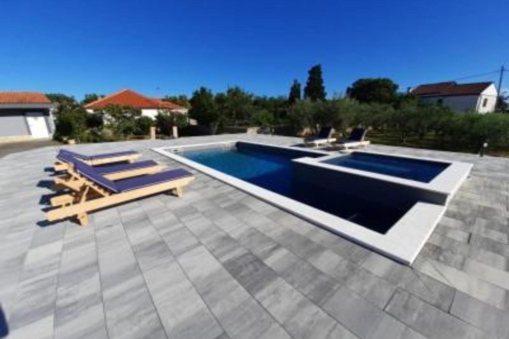 Apartments Franica with Heated Pool and Hot-Tub is a cozy vacation rental located in Privlaka, Zadar County, Croatia. Situated approximately 300 meters from the sea, guests can enjoy nearby beaches like Marina Privlaka, Punta, and Mostina. The apartments are located 300 m from the sea. They are located in a quiet place, surrounded by olive trees, a swimming pool, a jacuzzi, a grill, a games room with darts and table football. Large fenced yard. Note: Private parking is available, and a reservation is not required. Wi-Fi is available throughout the property. Pets are not allowed. This two-bedroom can accommodate up to four guests. It features an SAT/flat-screen TV and is combined with a living room and kitchen. The private bathroom is equipped with a shower and toilet. Thanks to its excellent location, everything you'll need for your vacation is just a short walk from the property. Grocery stores, cafes, restaurants—everything is within a 300 m radius. The beach is 300 m away from the property.