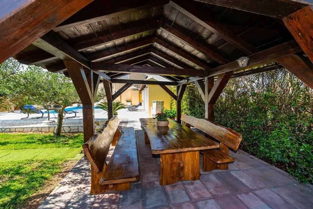 Das Haus besteht aus zwei Apartments mit einem Schlafzimmer, die zusammen vermietet werden. Sie befinden sich im ersten Stock des Hauses. Jedes Apartment verfügt über ein Schlafzimmer mit Doppelbett, ein Schlafsofa für zwei Personen im Wohnzimmer, eine gut ausgestattete Küche und ein Badezimmer mit Dusche. Im Garten gibt es einen Grillplatz mit Essbereich im Freien, einen großen Pool von 32 m2, geschlossen und privat.