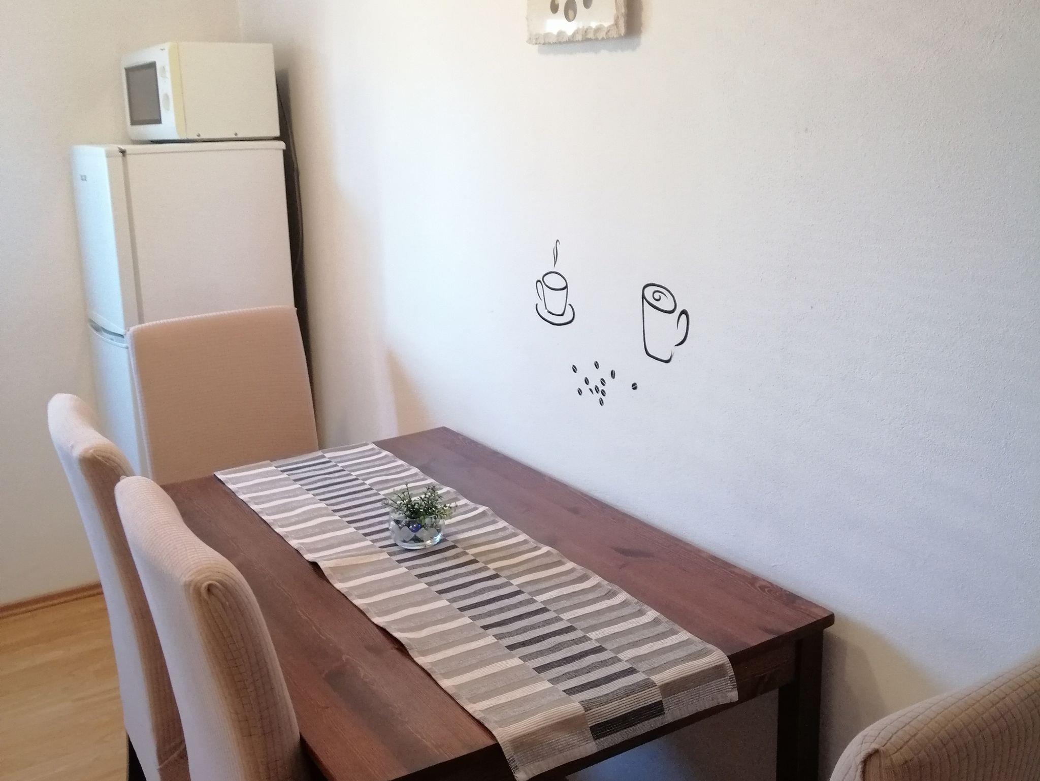 Umgebung des Objekts (Ordentlich), Hof (250m2, Sitzbereich), Parkplatz (Anzahl der Parkplätze: 3, Entfernung vom Objekt: im Hof), Grill: gemeinsam, WiFi Internet, Föhn, Bügeleisen, Bügelbrett, Kinderbett
