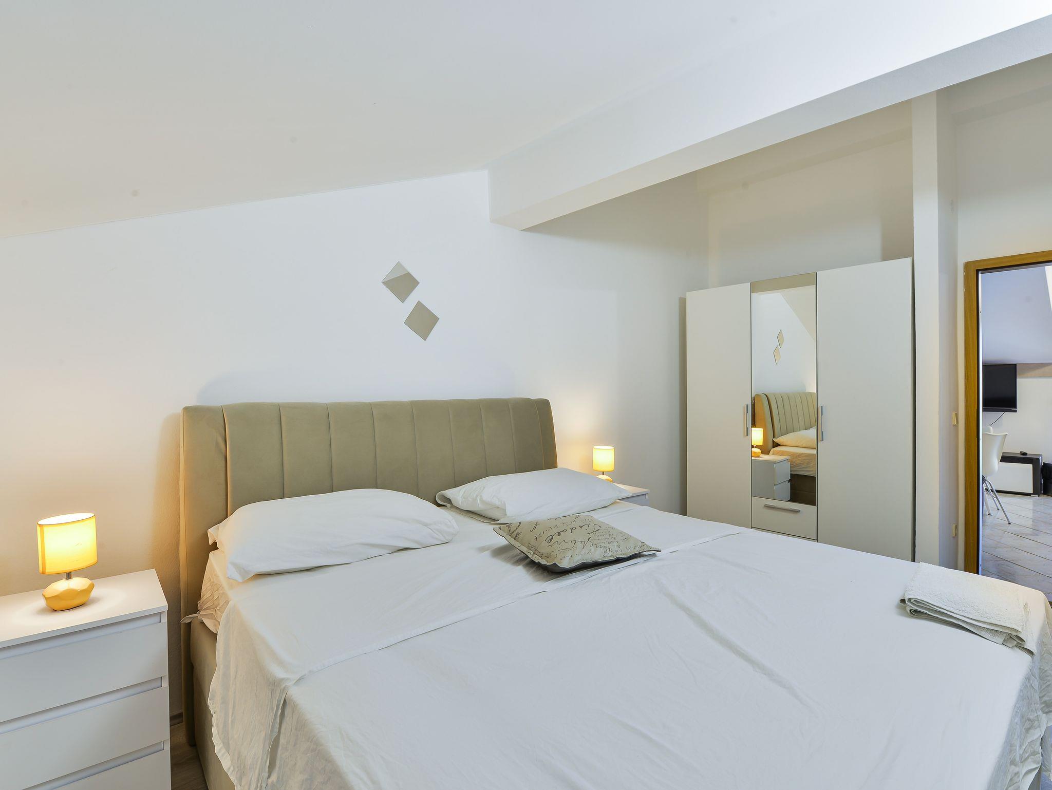 Ferienwohnung bietet Platz für 4 Gäste. Die Betten sind in Schlafzimmern, die es 2 gibt, innerhalb einer Gesamtfläche von 50m2, angeordnet. Die Gäste haben einen eigenen Balkon zur Verfügung, auf der sie in warmen Sommernächten genießen können. Es ist erlaubt, Speisen auf dem Gemeinschafts-Grill vorzubereiten. Während ihres Aufenthalts können Gäste das gemeinsam zur Nutzung stehende Schwimmbad benutzen. IM PREIS INBEGRIFFEN: Kurtaxe, Endreinigung, Klimatisierung, Pool, Parkplatz, Internet, Kinderbett, Föhn. VERBINDLICHE ZUSÄTZLICHE KOSTEN: Aufzahlung für Kurzaufenthalte (prozentualer Zuschlag pro Nächtigungsanzahl: 30% - 1, 20% - 2, 10% - 3). Die Verfügbarkeit zusätzlicher Dienstleistungen in Ihrem reservierten Termin und die Preise derselben (falls nicht aufgeführt) müssen im Voraus überprüft werden. Zusätzliche Dienstleistungen die in der Zahlungsaufforderung nicht aufgeführt sind werden direkt beim Vermieter bezahlt, angenommen der Gast nutzt auch diese.