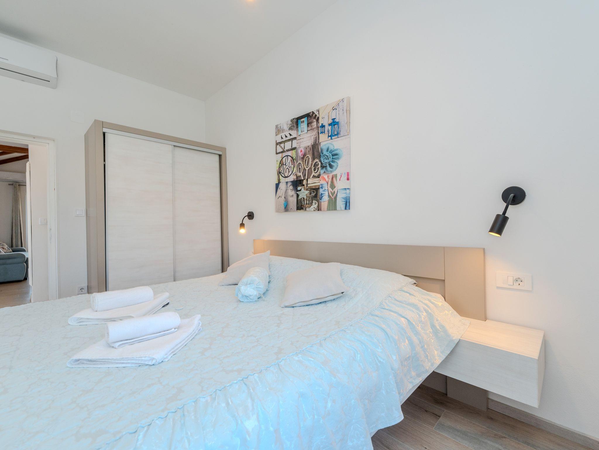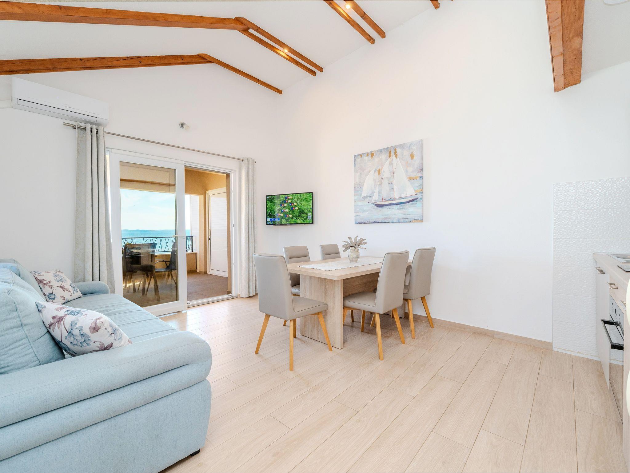 Ferienwohnung bietet Platz für 6 Gäste. Die Betten sind in Schlafzimmern, die es 2 gibt, und in Wohnzimmer, innerhalb einer Gesamtfläche von 62m2, angeordnet. Die Gäste haben eine eigene Terrasse zur Verfügung, auf der sie in warmen Sommernächten genießen können. Das Apartment bietet Meerblick. Es ist erlaubt, Speisen auf dem Gemeinschafts-Grill vorzubereiten. In der Unterkunftseinheit besteht die Möglichkeit des Mitbringens von Haustieren gegen Aufpreis. IM PREIS INBEGRIFFEN: Kurtaxe, Endreinigung, Klimatisierung, Parkplatz, Internet, Kinderbett, Bügeleisen, Bügelbrett, Föhn, tragbarer Grill, Liegestühle. VERBINDLICHE ZUSÄTZLICHE KOSTEN: Aufzahlung für Kurzaufenthalte (prozentualer Zuschlag pro Nächtigungsanzahl: 30% - 1, 20% - 2, 10% - 3). UNVERBINDLICHE ZUSÄTZLICHE KOSTEN: Haustiere (15,00 € pro Nacht). Die Verfügbarkeit zusätzlicher Dienstleistungen in Ihrem reservierten Termin und die Preise derselben (falls nicht aufgeführt) müssen im Voraus überprüft werden. Zusätzliche Dienstleistungen die in der Zahlungsaufforderung nicht aufgeführt sind werden direkt beim Vermieter bezahlt, angenommen der Gast nutzt auch diese.