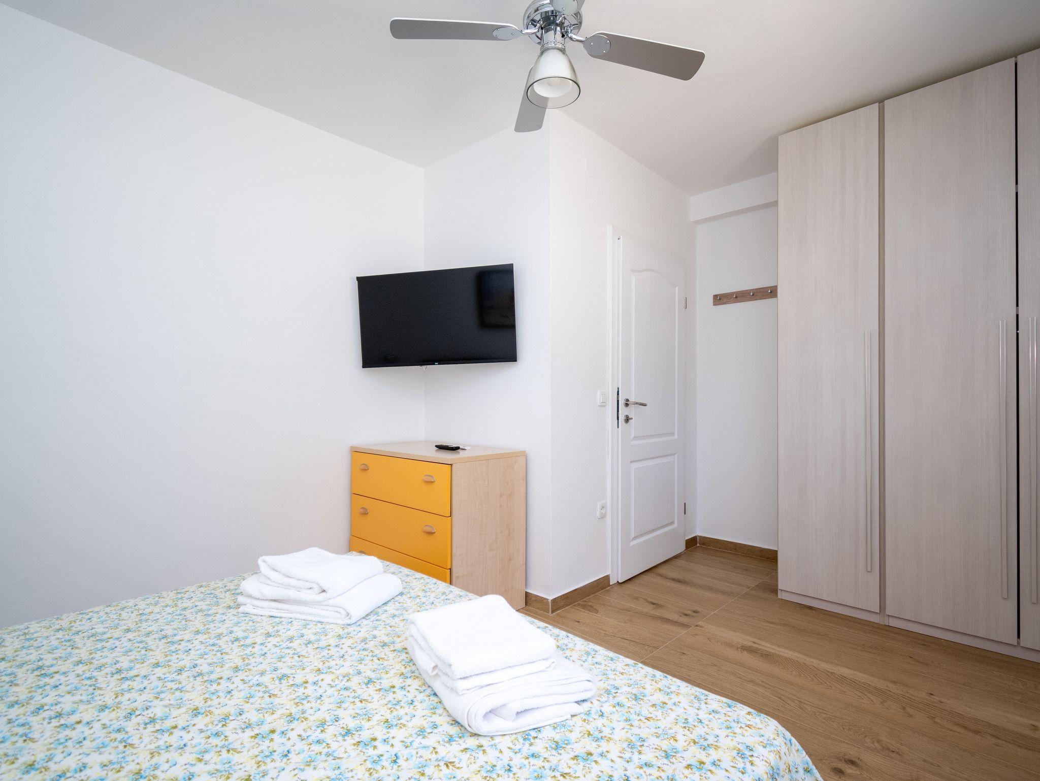 Ferienwohnung bietet Platz für 4 Gäste. Die Betten sind in Schlafzimmern, die es 2 gibt, innerhalb einer Gesamtfläche von 56m2, angeordnet. Die Gäste haben eine eigene Terrasse zur Verfügung, auf der sie in warmen Sommernächten genießen können. Es ist erlaubt, Speisen auf dem Gemeinschafts-Grill vorzubereiten. Während ihres Aufenthalts können sich Gäste im privaten Schwimmbad entspannen. IM PREIS INBEGRIFFEN: Kurtaxe, Endreinigung, Klimatisierung, Pool, Parkplatz, Internet, Kinderbett, Bügeleisen, Bügelbrett, Föhn, 2 Kinderbettchen (im Preis enthalten). Die Verfügbarkeit zusätzlicher Dienstleistungen in Ihrem reservierten Termin und die Preise derselben (falls nicht aufgeführt) müssen im Voraus überprüft werden. Zusätzliche Dienstleistungen die in der Zahlungsaufforderung nicht aufgeführt sind werden direkt beim Vermieter bezahlt, angenommen der Gast nutzt auch diese.