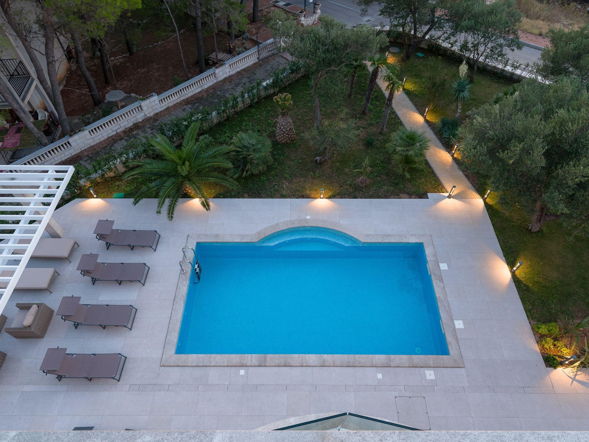Hof (500m2, Kinderbereich, Sitzbereich), Parkplatz (Anzahl der Parkplätze: 5, Entfernung vom Objekt: im Hof), Pool: gemeinsam, Dimensionen: 8m x 4.3m x 1.5m, Wassertyp: Süßwasser, Heizung: Ja, Grill: gemeinsam, WiFi Internet, Föhn, Bügeleisen, Bügelbrett, Kinderbett