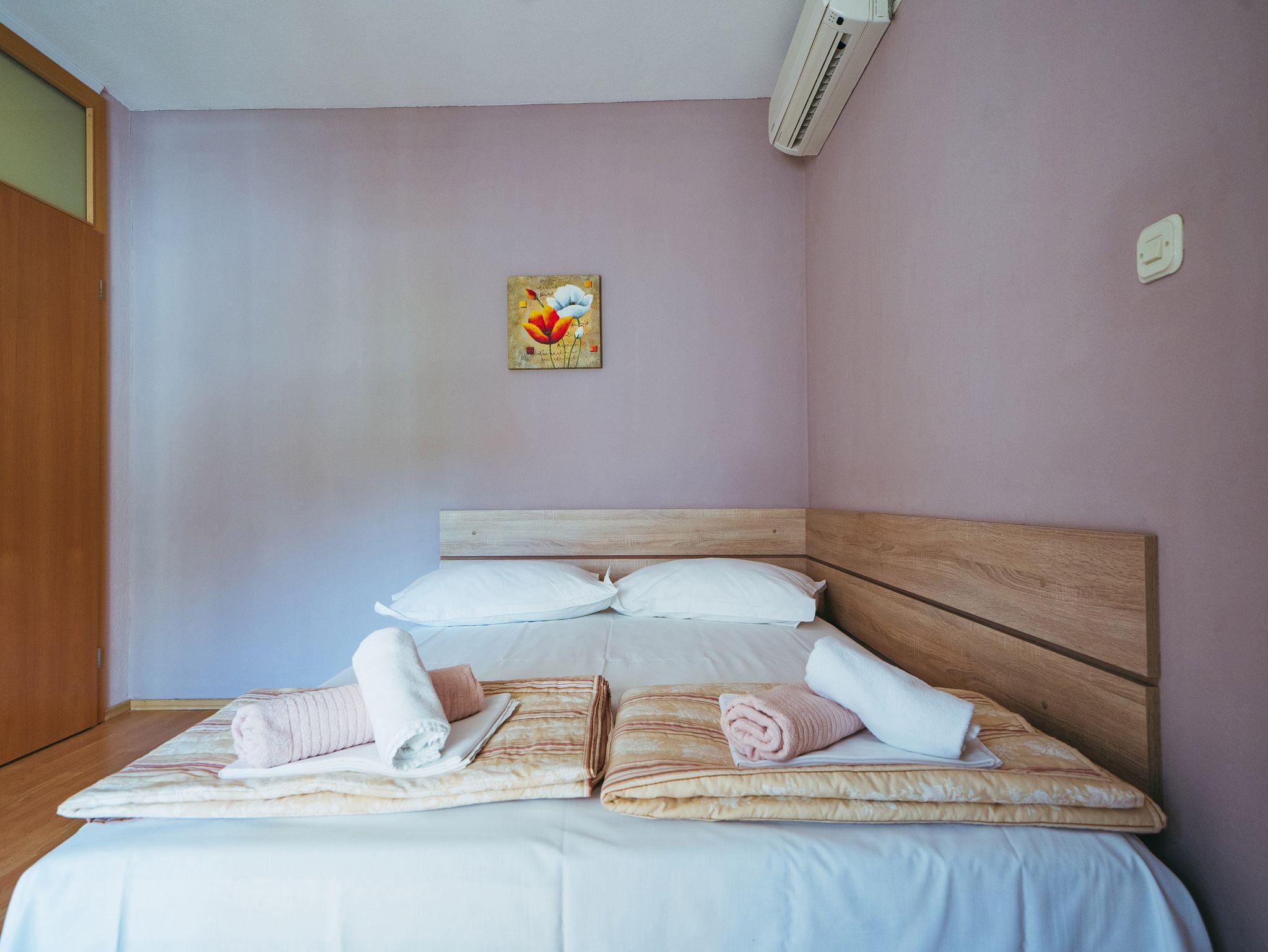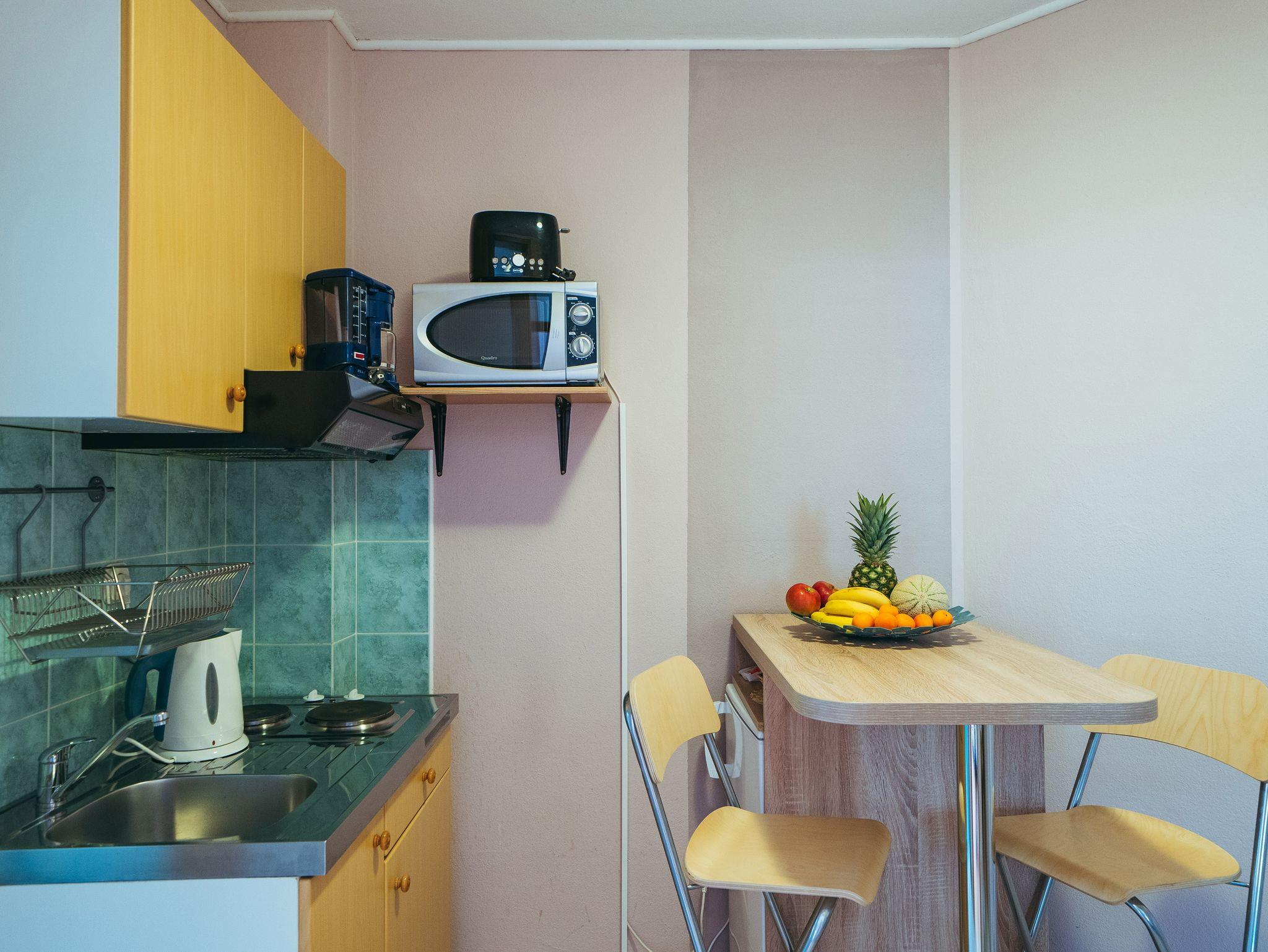 Ferienwohnung bietet Platz für 4 Gäste. Die Betten sind in Schlafzimmern, die es 1 gibt, und in Wohnzimmer, innerhalb einer Gesamtfläche von 33m2, angeordnet. Die Gäste haben einen eigenen Balkon zur Verfügung, auf der sie in warmen Sommernächten genießen können. Es ist erlaubt, Speisen auf dem Gemeinschafts-Grill vorzubereiten. Während ihres Aufenthalts können Gäste das gemeinsam zur Nutzung stehende Schwimmbad benutzen. IM PREIS INBEGRIFFEN: Kurtaxe, Endreinigung, Klimatisierung, Pool, Parkplatz, Internet, Wäschewaschen, Kinderbett, Föhn. Die Verfügbarkeit zusätzlicher Dienstleistungen in Ihrem reservierten Termin und die Preise derselben (falls nicht aufgeführt) müssen im Voraus überprüft werden. Zusätzliche Dienstleistungen die in der Zahlungsaufforderung nicht aufgeführt sind werden direkt beim Vermieter bezahlt, angenommen der Gast nutzt auch diese.