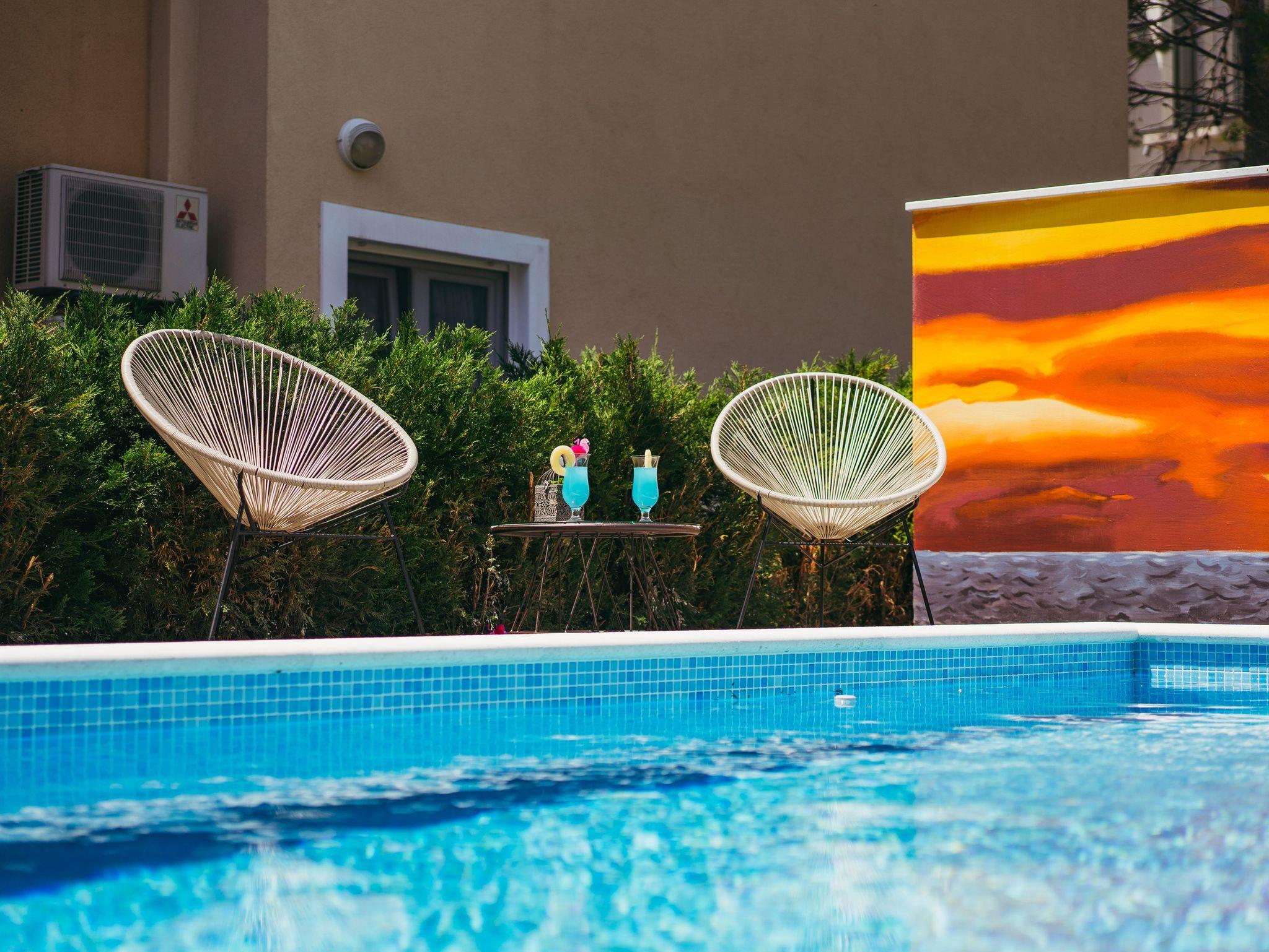 Hof (100m2, Kinderbereich, Sitzbereich), Parkplatz (Anzahl der Parkplätze: 5, Entfernung vom Objekt: im Hof), Pool: gemeinsam, Dimensionen: 7m x 4m x 1.4m, Wassertyp: Süßwasser, Grill: gemeinsam, WiFi Internet, Wäschewaschen, Föhn, Kinderbett
