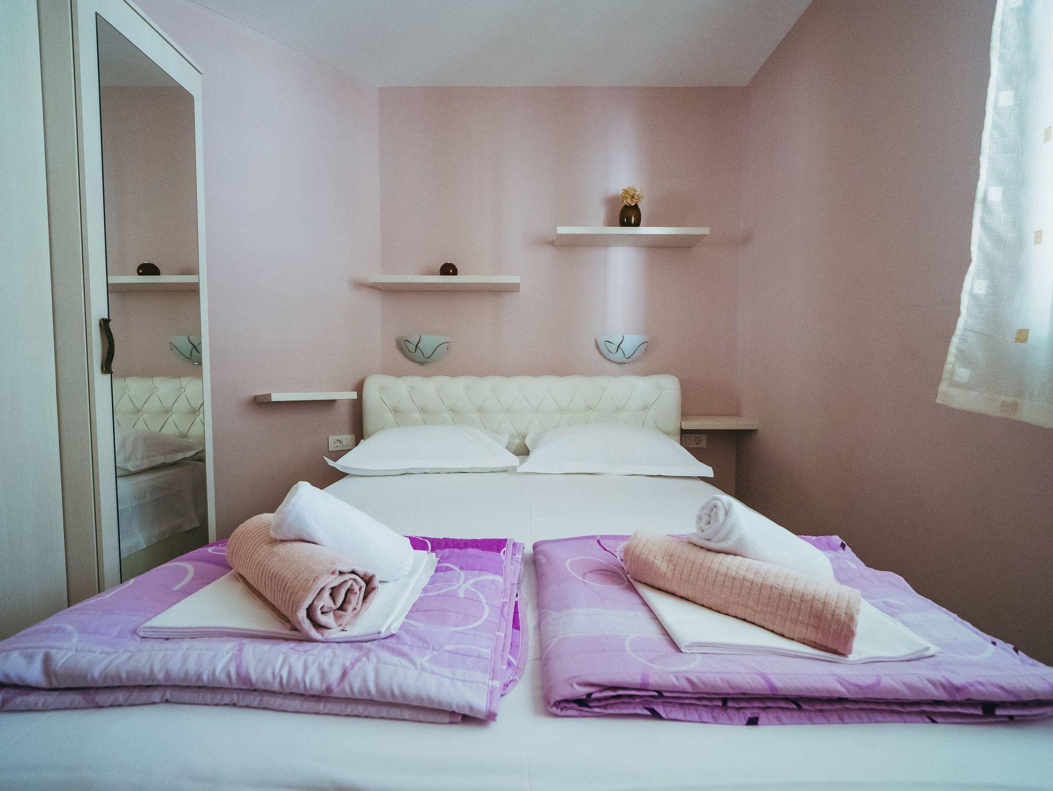 Ferienwohnung bietet Platz für 4 Gäste. Die Betten sind in Schlafzimmern, die es 1 gibt, und in Wohnzimmer, innerhalb einer Gesamtfläche von 33m2, angeordnet. Die Gäste haben einen eigenen Balkon zur Verfügung, auf der sie in warmen Sommernächten genießen können. Es ist erlaubt, Speisen auf dem Gemeinschafts-Grill vorzubereiten. Während ihres Aufenthalts können Gäste das gemeinsam zur Nutzung stehende Schwimmbad benutzen. IM PREIS INBEGRIFFEN: Kurtaxe, Endreinigung, Klimatisierung, Pool, Parkplatz, Internet, Wäschewaschen, Kinderbett, Föhn. Die Verfügbarkeit zusätzlicher Dienstleistungen in Ihrem reservierten Termin und die Preise derselben (falls nicht aufgeführt) müssen im Voraus überprüft werden. Zusätzliche Dienstleistungen die in der Zahlungsaufforderung nicht aufgeführt sind werden direkt beim Vermieter bezahlt, angenommen der Gast nutzt auch diese.