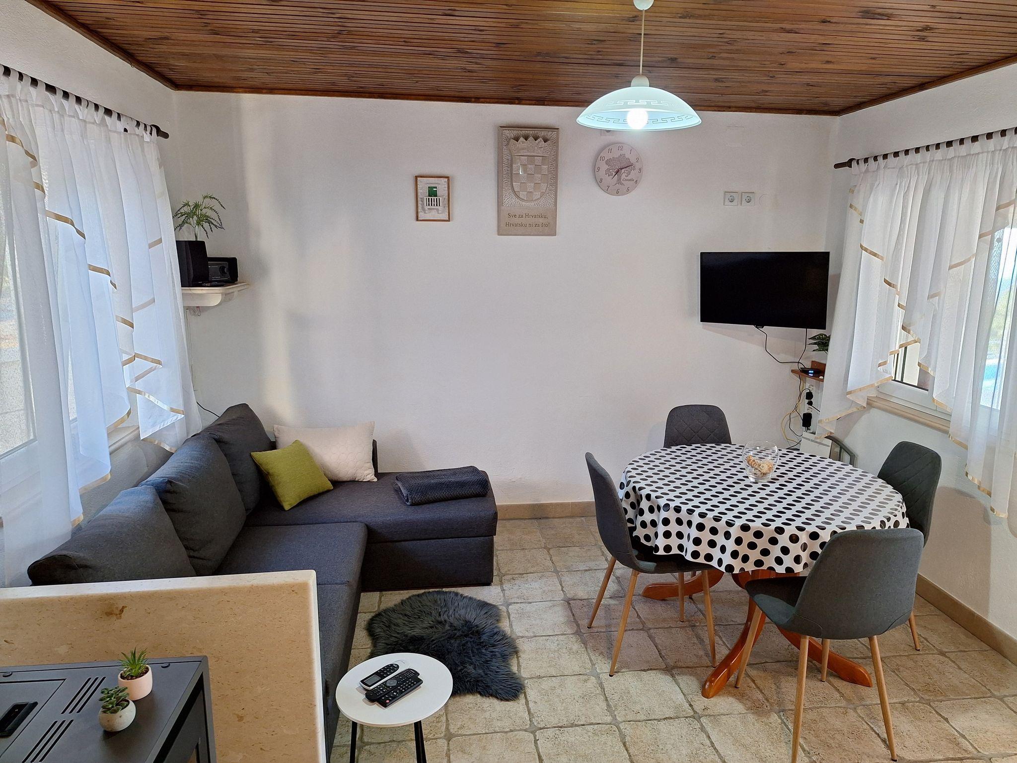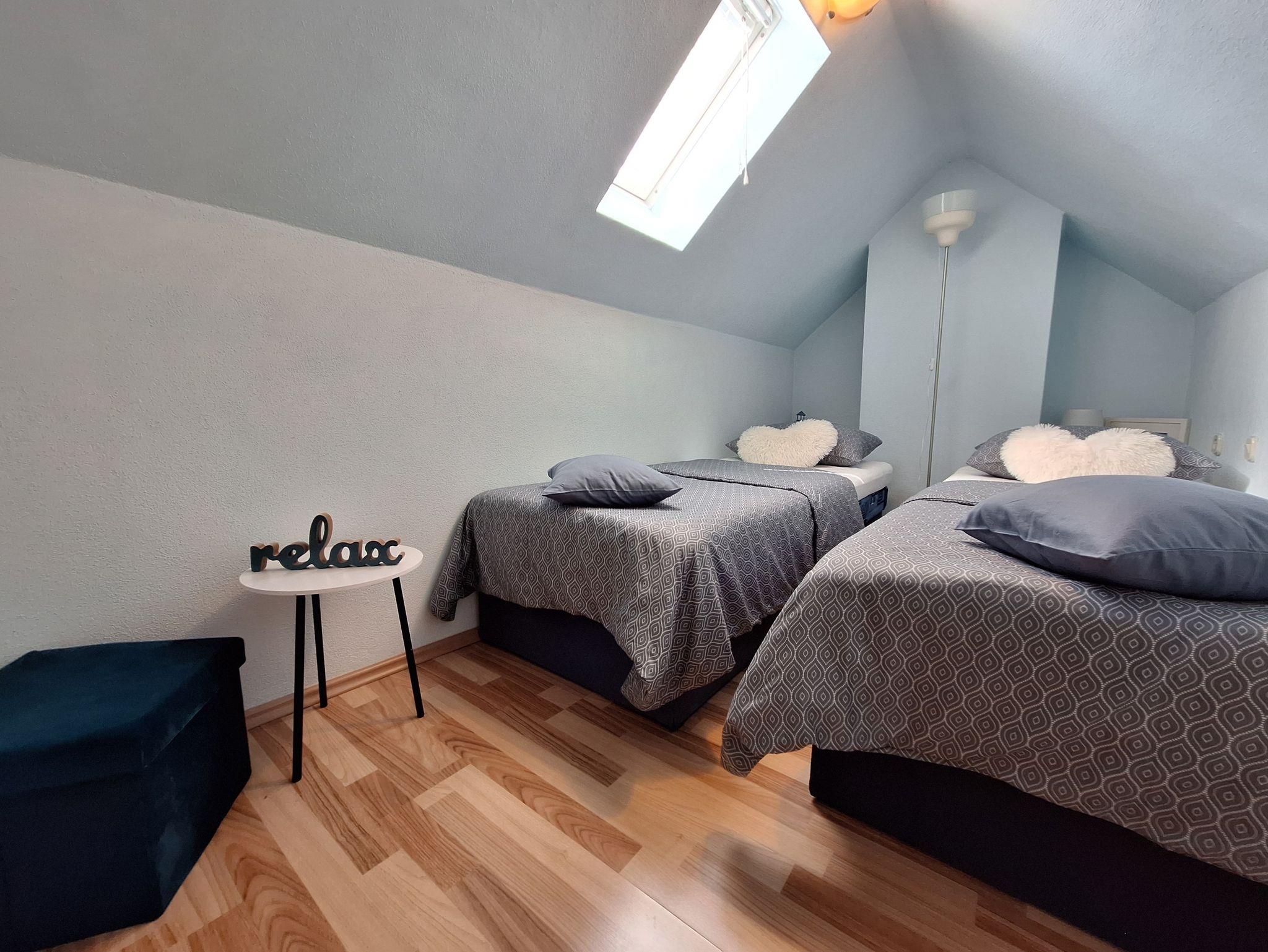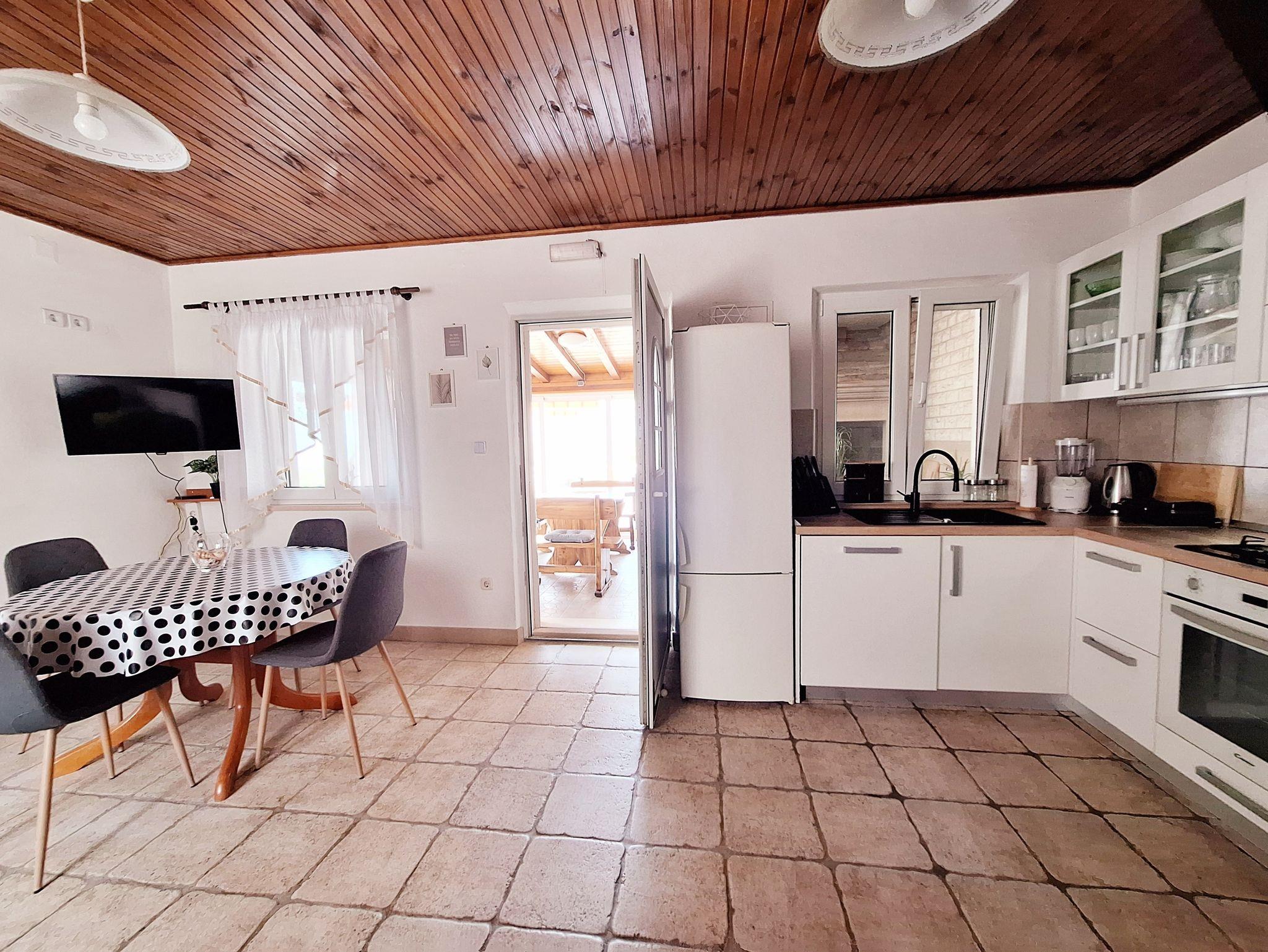 Haus bietet Platz für 6 Gäste. Die Betten sind in Schlafzimmern, die es 3 gibt, innerhalb einer Gesamtfläche von 66m2, angeordnet. Die Gäste haben eine eigene Terrasse zur Verfügung, auf der sie in warmen Sommernächten genießen können. Es ist erlaubt, Speisen auf dem Gemeinschafts-Grill vorzubereiten. Während ihres Aufenthalts können Gäste das gemeinsam zur Nutzung stehende Schwimmbad benutzen. In der Unterkunftseinheit besteht die Möglichkeit des Mitbringens von Haustieren, und die Dienstleistung ist im Preis der Unterkunft enthalten. Räume der gebuchten Unterkunftseinheit werden nicht in eine Ganze verbunden. Unterkunftseinheit hat Räume, die von dem Rest der Einheit abgetrennt werden. IM PREIS INBEGRIFFEN: Kurtaxe, Endreinigung, Klimatisierung, Zentralheizung, Pool, Parkplatz, Internet, Haustiere, Kinderbett, Bügeleisen, Bügelbrett, Föhn, Sonnenschirm. Die Verfügbarkeit zusätzlicher Dienstleistungen in Ihrem reservierten Termin und die Preise derselben (falls nicht aufgeführt) müssen im Voraus überprüft werden. Zusätzliche Dienstleistungen die in der Zahlungsaufforderung nicht aufgeführt sind werden direkt beim Vermieter bezahlt, angenommen der Gast nutzt auch diese. Ermäßigung auf den Grundpreis: Gratistag 14=13 (bei einem Aufenthalt von 14 Tagen oder mehr erhalten Sie einen Gratistag für den Aufenthalt bis 31.12.26).