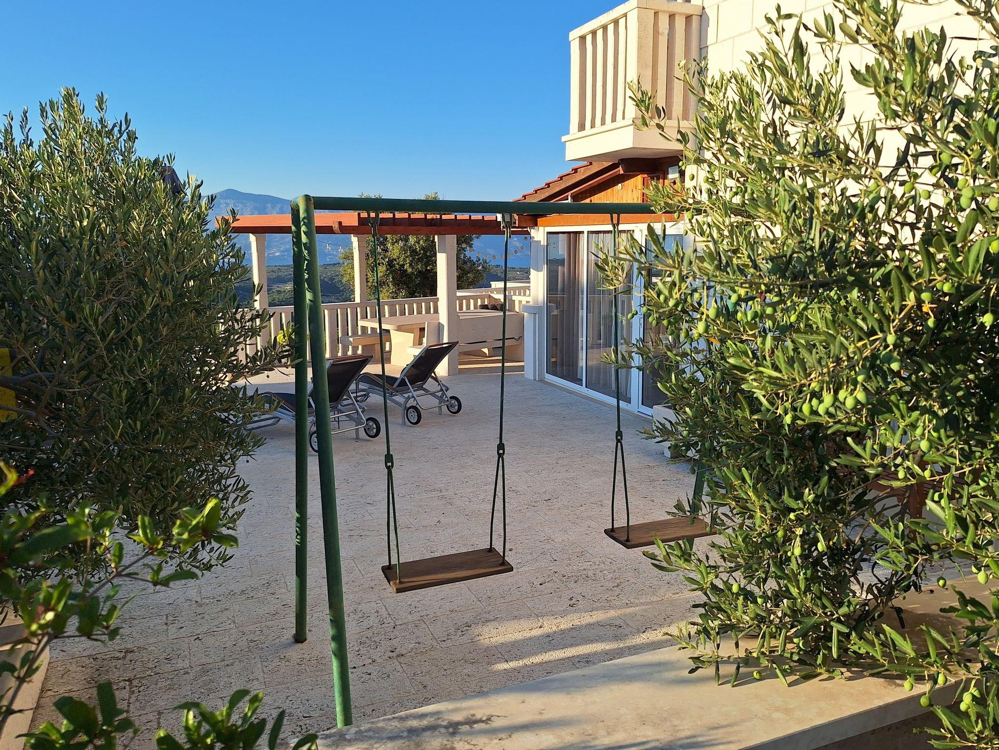 Umgebung des Objekts (Eingerichtet), Hof (250m2, Kinderbereich, Sitzbereich), Parkplatz (Anzahl der Parkplätze: 3, Entfernung vom Objekt: im Hof), Pool: gemeinsam, Dimensionen: 5.5m x 3.5m x 1.5m, Wassertyp: Süßwasser, Heizung: Ja, Grill: gemeinsam, WiFi Internet, Föhn, Bügeleisen, Bügelbrett, Sonnenschirm, Kinderbett