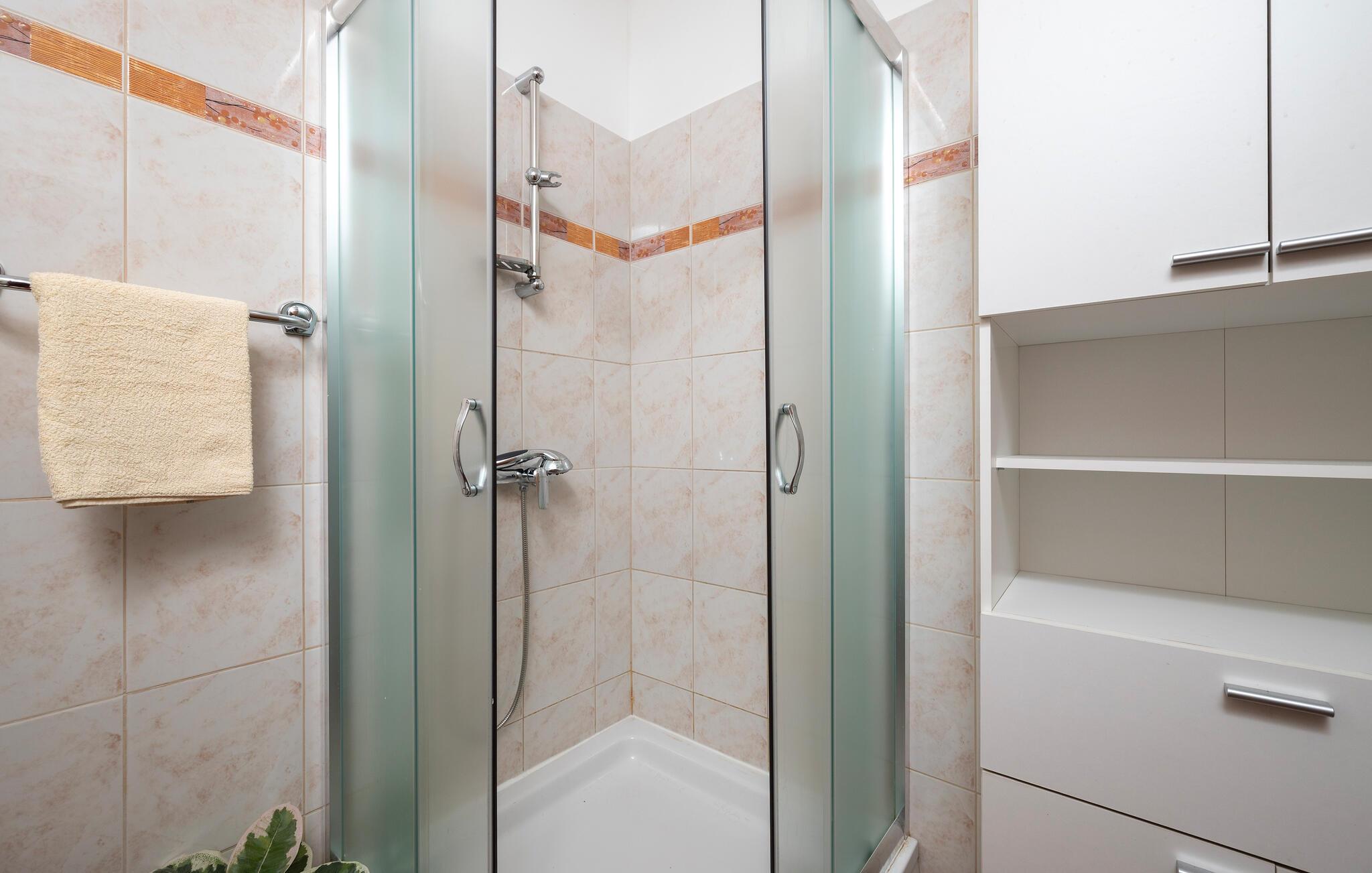 - WC mit warmem und kaltem Wasser, Dusche