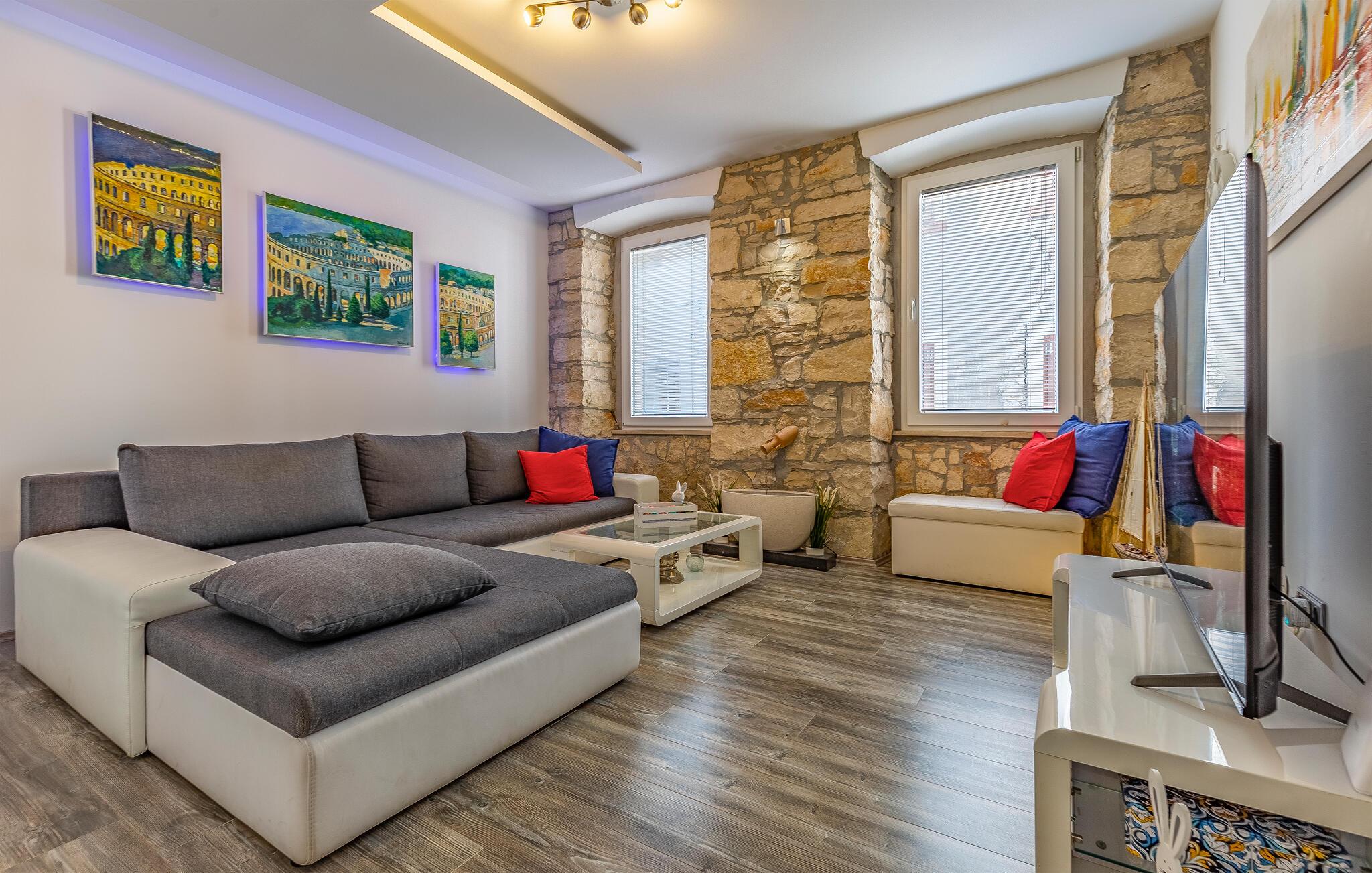 Ihre Unterkunft befindet sich in unmittelbarer Nähe der beeindruckenden Arena von Pula, einem der bedeutendsten römischen Bauwerke. Der Augustustempel und das Kastel sind ebenfalls nur wenige Gehminuten entfernt. Schlendern Sie durch die historischen Straßen, entdecken Sie Museen und genießen Sie die lebhafte Atmosphäre der Stadt. Verweilen Sie auch an den nahen Stränden und tauchen in das kristallklare Wasser der Adria ein.