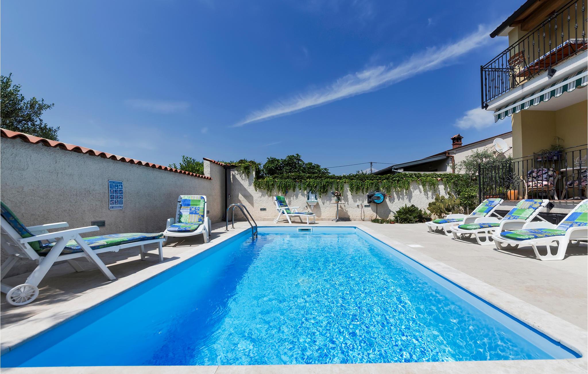 Verbringen Sie einen angenehmen Urlaub in diesen stilvoll eingerichteten Ferienwohnungen. Das gemeinsame Grundstück mit Pool und Terrasse ist komplett umzäunt. Neben dem Gemeinschaftspool steht allen Gästen auch ein Außenwhirlpool zur Verfügung. Überdachte, gemeinsame Terrasse mit Grill. Jede Ferienwohnung besitzt auch eine eigene Terrasse, ideal für das Kaffeetrinken am Morgen. Die nähere Umgebung eignet sich für ausgiebige Spaziergänge und die nächsten Strände finden Sie in Valbandon. Sehenswert sind auch die Kleinstadt Fažana und ihre schöne Uferpromenade mit Restaurants und Cafés und dem Ausgangshafen für den Brijuni-Nationalpark.