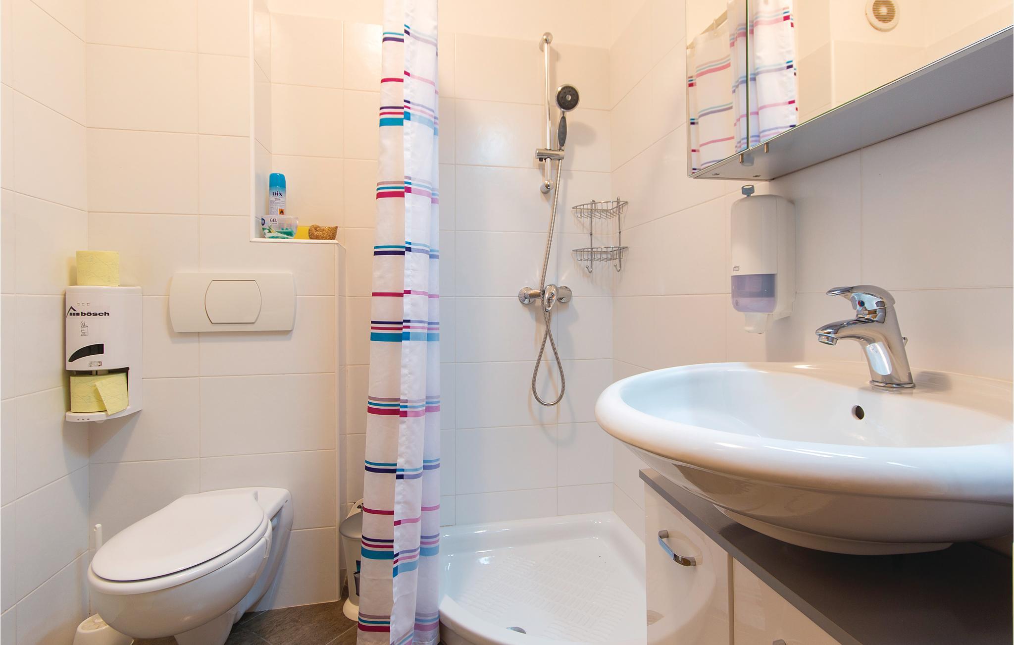 - WC mit warmem und kaltem Wasser, Dusche