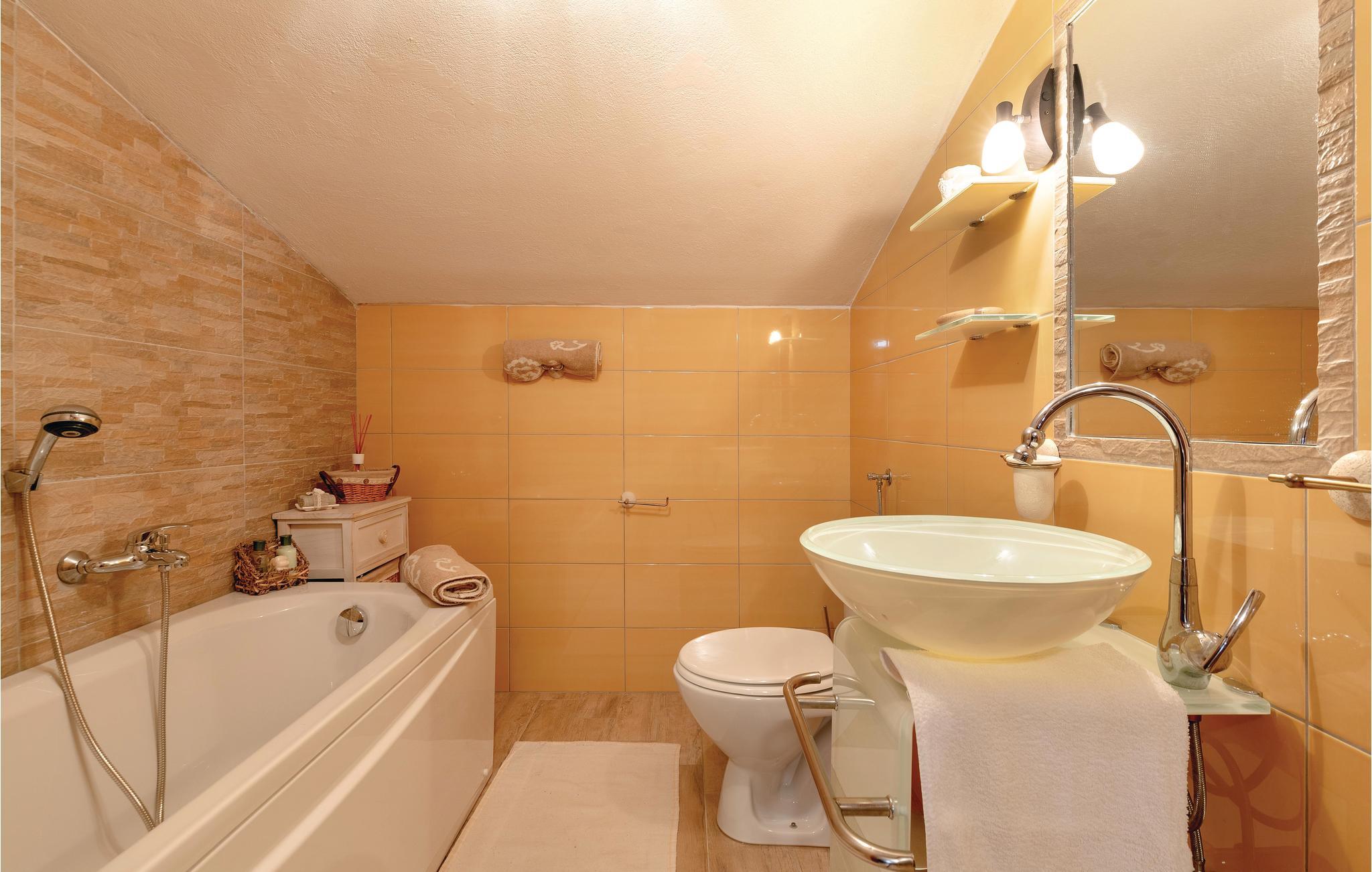 - WC mit warmem und kaltem Wasser, Badewanne
