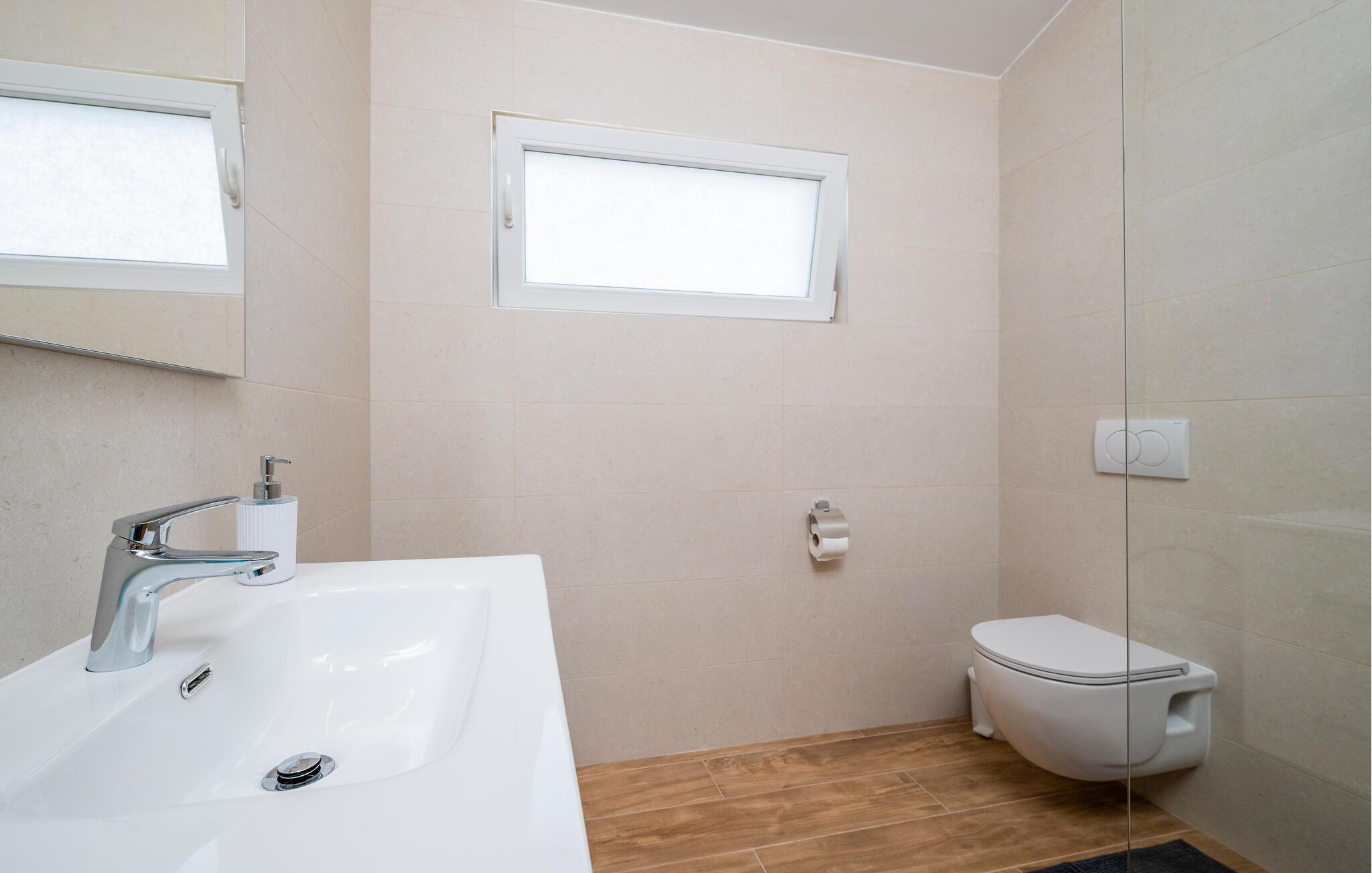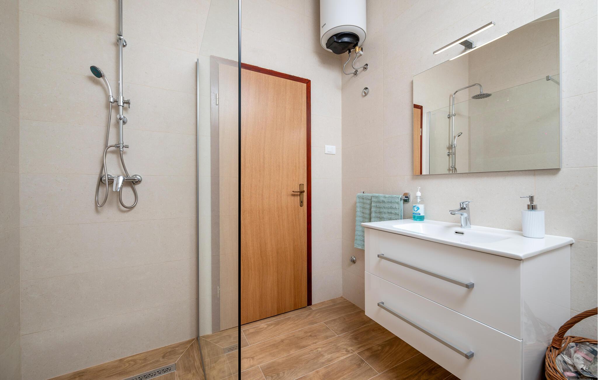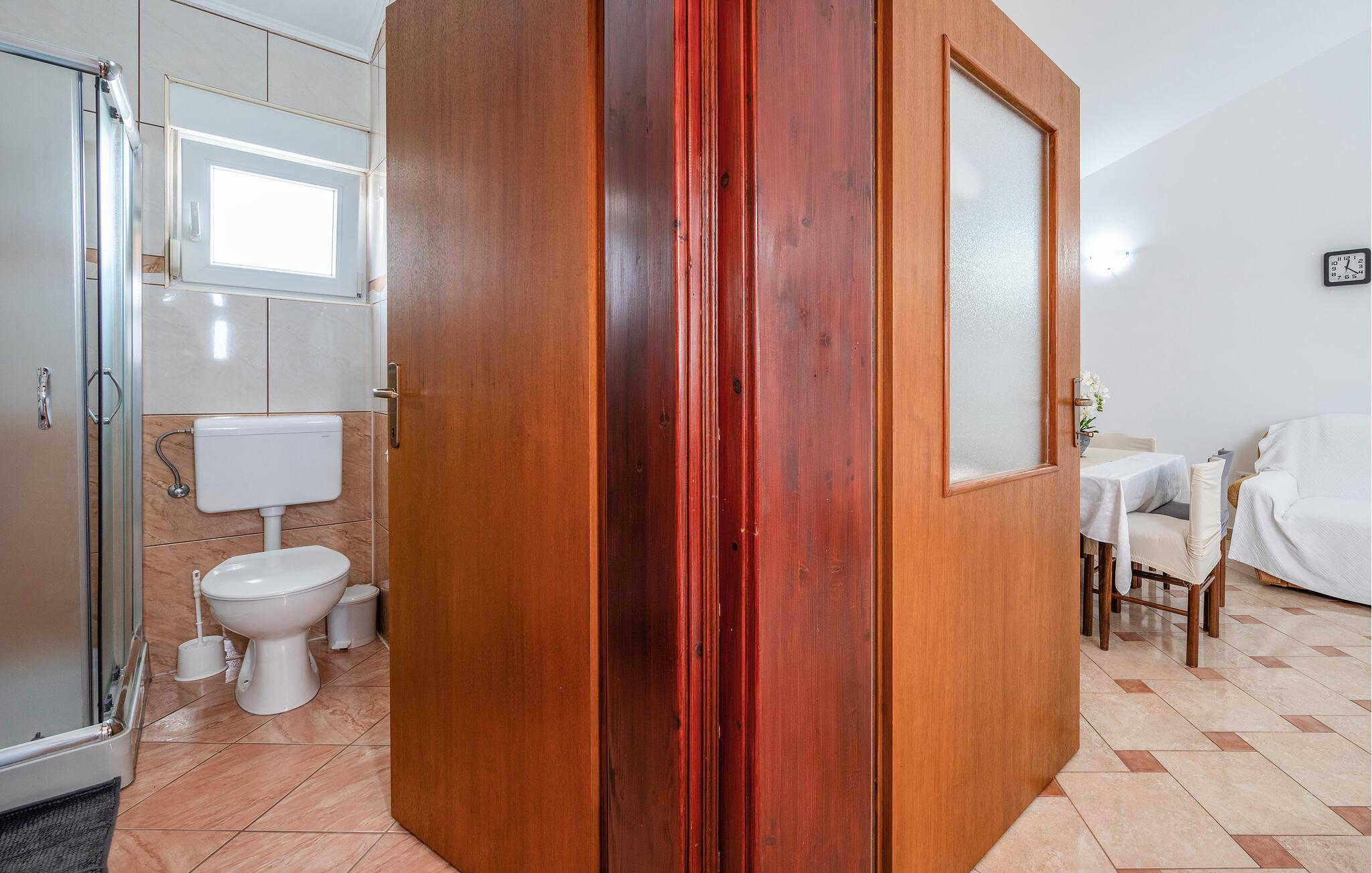 - WC mit warmem und kaltem Wasser, Dusche
