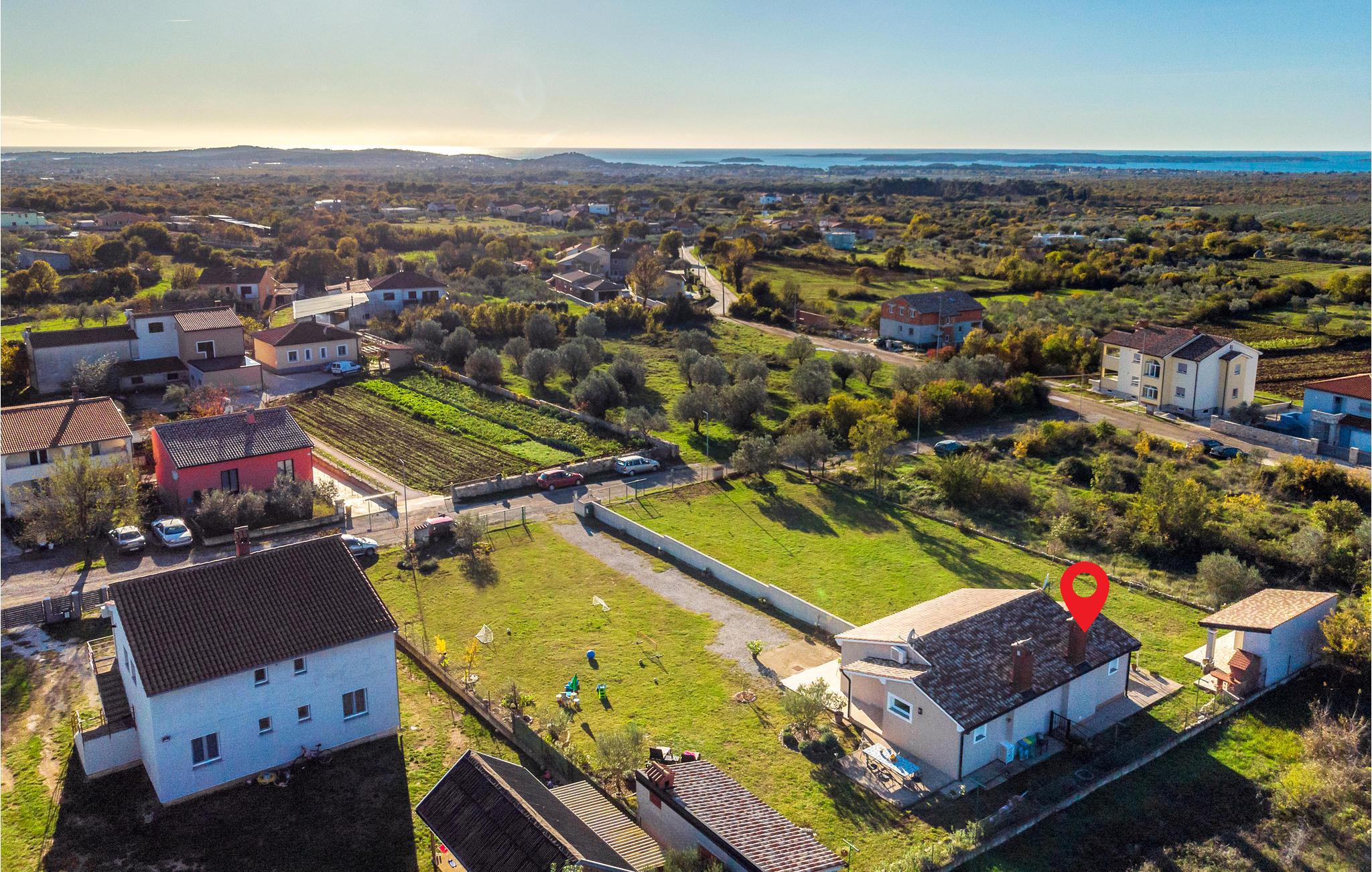 Auf einem großen Grundstück erwartet Sie dieses Ferienhaus im Umland von Pula. Die Doppelhaushälfte bietet Platz in 2 Schlafzimmern, 2 Badezimmern und einem Wohnraum mit Küche - ideal für eine kleine Familie mit Haustier.