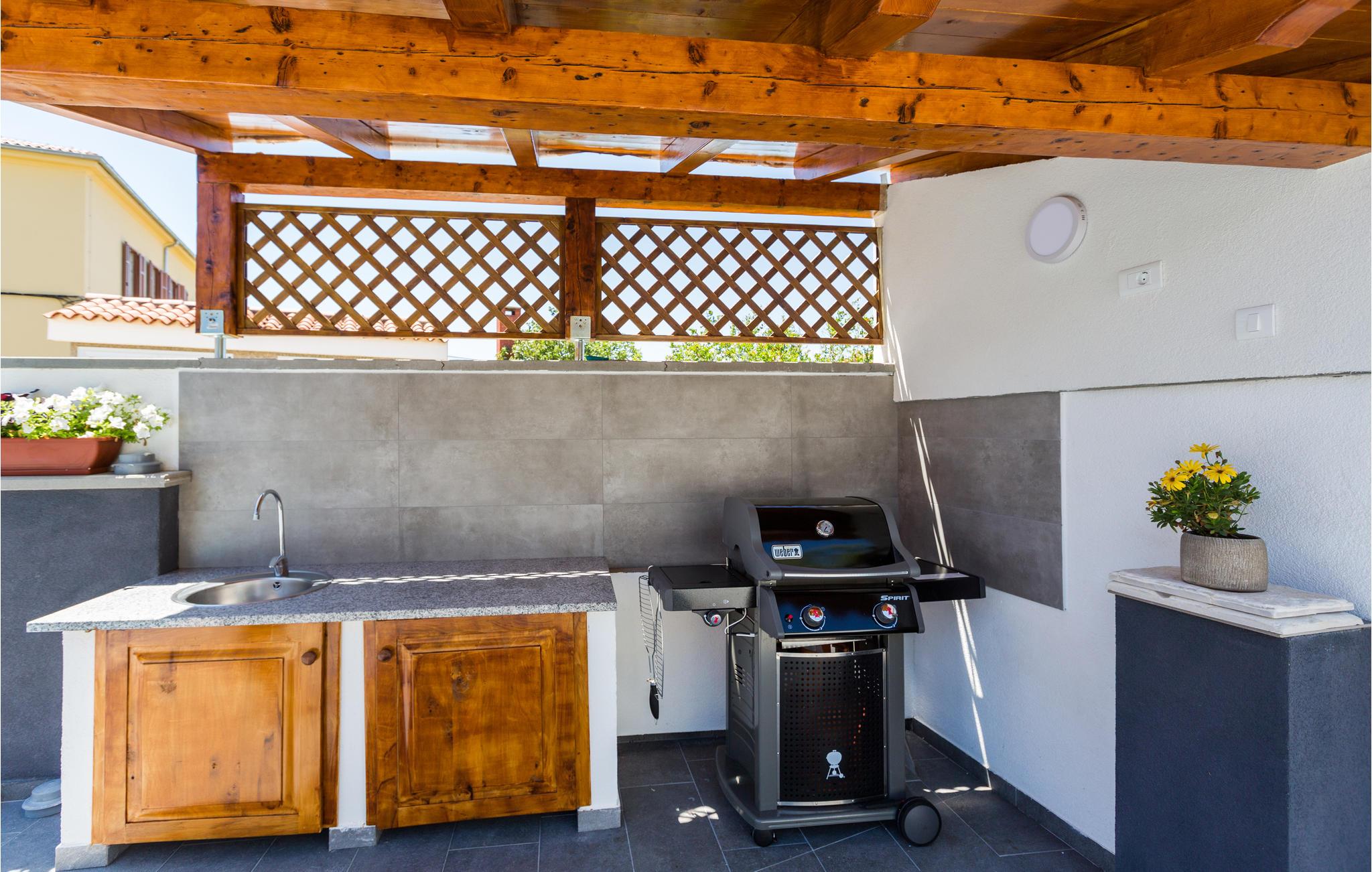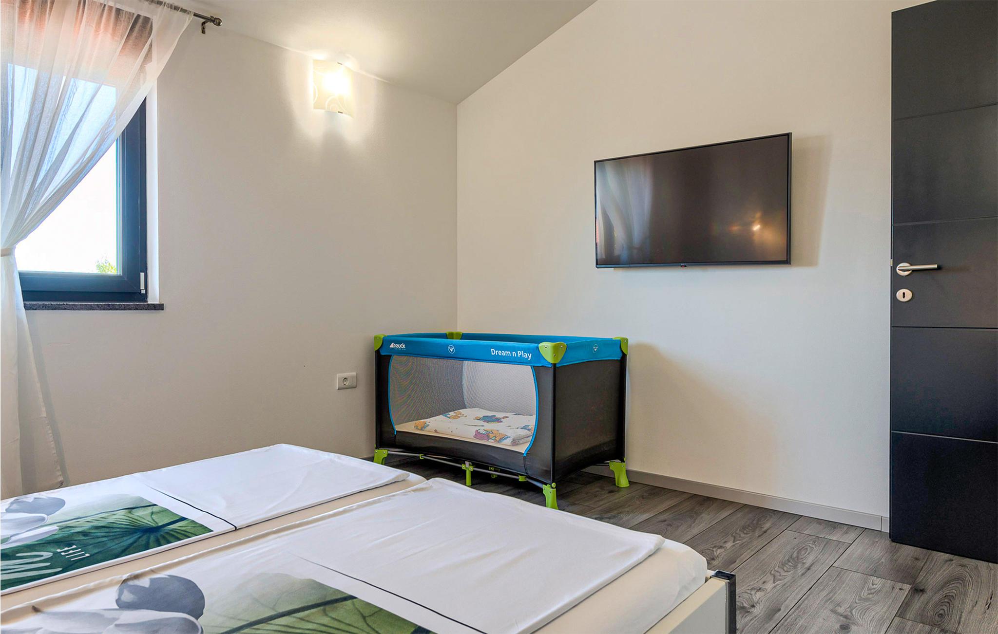 Planen Sie ein paar Ausflüge in die wundervolle Umgebung der Halbinsel, da diese Unterkunft die perfekte Basis dafür ist. Wenige Kilometer trennen Sie von dem malerischen Städtchen Fazana mit einem kleinen Hafen, bunten Stadthäusern und tollen Restaurants. Genießen Sie das einzigartige Urlaubsflair, das der ehemalige Fischerort verbreitet. Schlendern Sie an der belebten Strandpromenade entlang oder machen Sie eine kleine Fahrradtour zu den feinen Sandstränden. Mit dem Boot erreichen Sie den berühmten Nationalpark Brijuni mit seinen 14 Inseln direkt vor der Küste. Auch die Hafenstadt Pula können Sie einen Besuch abstatten und die Geschichte der Stadt durch die historischen Gebäude miterleben.