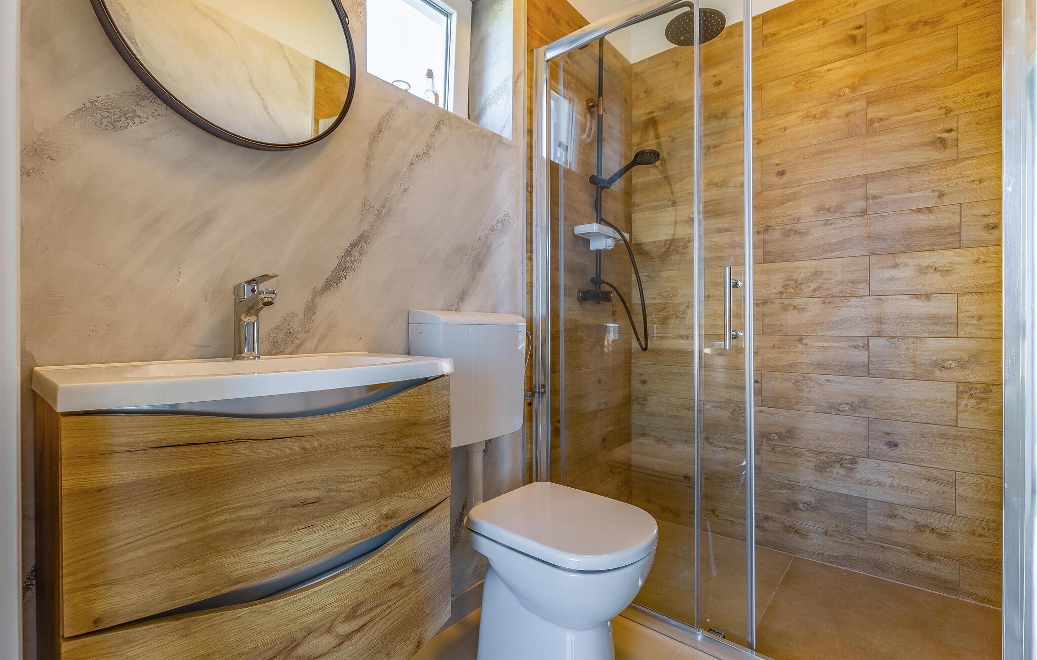 - WC mit warmem und kaltem Wasser, Dusche