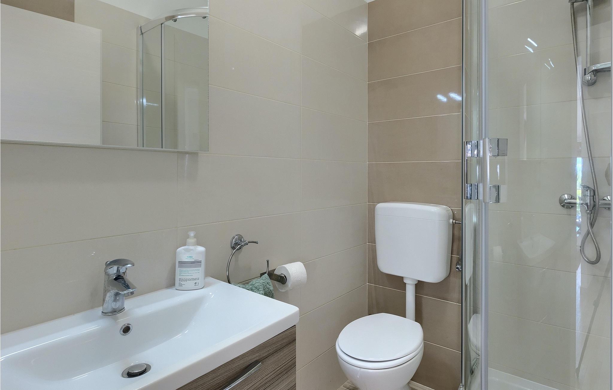 - WC mit warmem und kaltem Wasser, Dusche