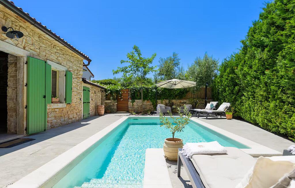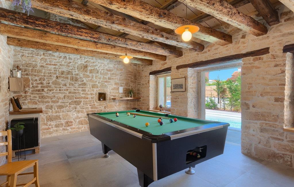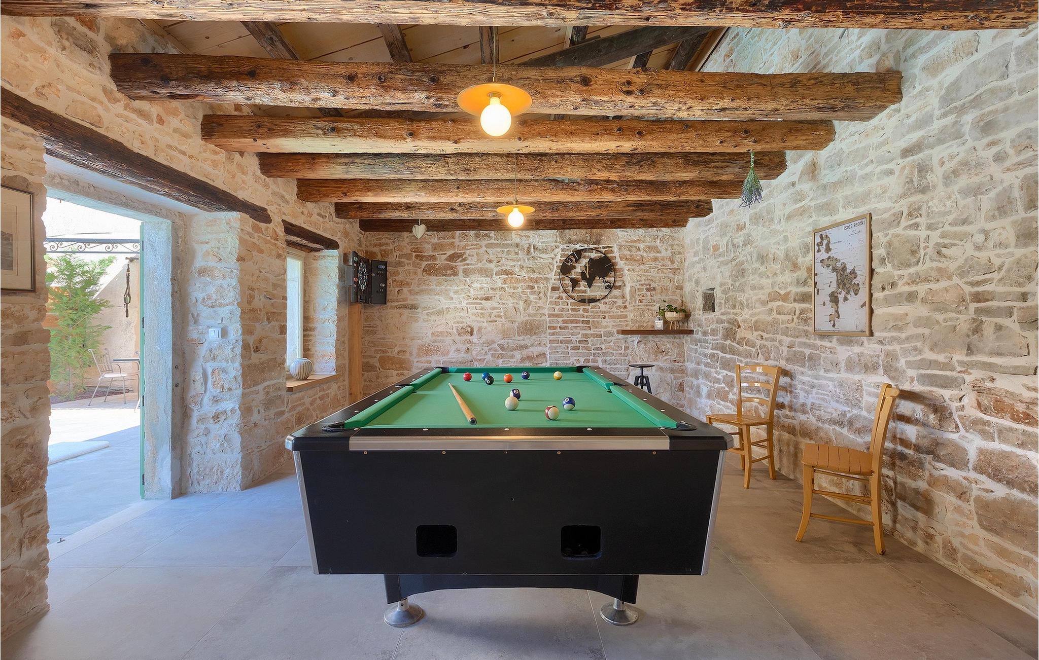 Diese kleine charmante Steinvilla, die ungefähr im Jahre 1800 erbaut und komplett renoviert wurde, bietet Ihnen alles, was sie für einen entspannten Urlaub brauchen. Die Villa Eglis befindet sich in ruhige Lage nah an der bekannten historischen Stadt Pula. Mit ihren 2 Schlafzimmern kann sie insgesamt 4 Personen beherbergen und eignet sich dabei ideal für einen Familien oder Pärchenurlaub. Im komplett eingezäunten Außenbereich erwartet Sie ein privater Pool, der von Sonnenliegen umgeben ist und an heißen Sommertagen zur Abkühlung einlädt. Nutzen Sie den Grill, um Ihre Grillkünste unter Beweis zu stellen. Ebenfalls verfügt die Villa über einen Billardtisch und Darts. Der Innenbereich ist mit Stil eingerichtet und bietet eine angenehme Atmosphäre. Das Erdgeschoss besteht aus einem Wohn- und Essbereich welcher mit einer komplett ausgestatteten Küche verbunden ist, sowie einem Badezimmer. Auf der ersten Etage befinden sich zwei gemütliche Schlafzimmer jeweils mit Doppelbett. Buchen Sie die Villa Eglis und entdecken Sie die Schätze Istriens! Gruppen jünger Erwachsener (<25 Jahre) sind in der Villa nicht gestattet.Die Villa Eglis befindet sich in einem kleinen Dorf Galizana in der Nähe der Stadt Pula, umgeben von märchenhafter Natur. Der nächste Strand ist nur 6 km von der Villa entfernt und entlang der Küste finden Sie zahlreiche traumhafte Strände und Buchten. Pula ist der größte Hafen und Tourismusknotenpunkt Istriens. Reich in kultureller und traditioneller Hinsicht aber auch aufgrund der schönen Naturlandschaft, Pula bietet alle möglichen Freizeitaktivitäten wie Sportangebote, Nachtklub, Casino, Pubs und Restaurants sowie organisierte Touren. Das Symbol dieser Stadt ist definitiv die zwanzig Jahrhunderte alte Stadt-Arena, wo in der römischen Zeit spektakuläre Gladiatorenkämpfe stattfanden. Heute ist es das sechstgrößte Amphitheater der Welt.
