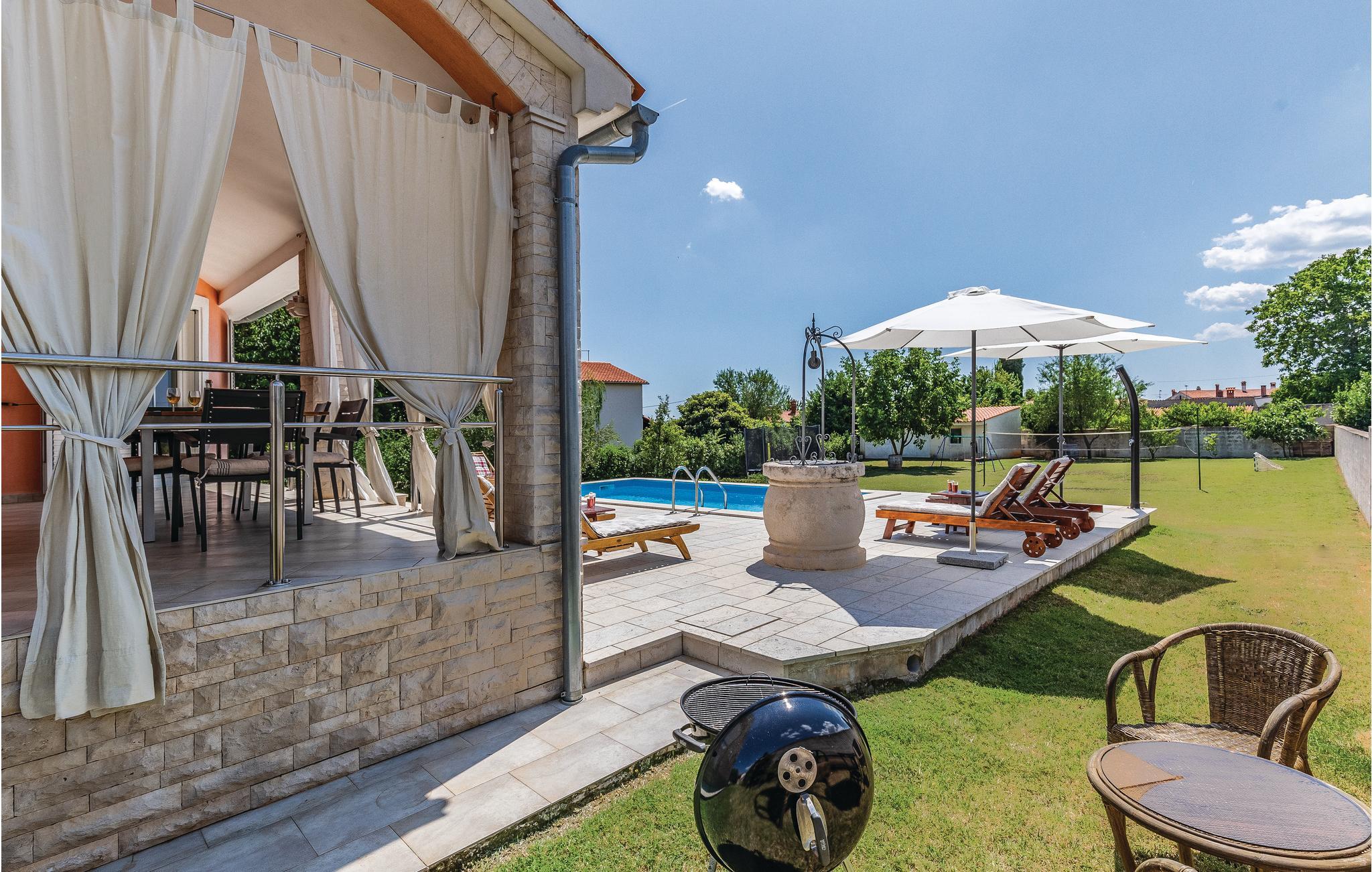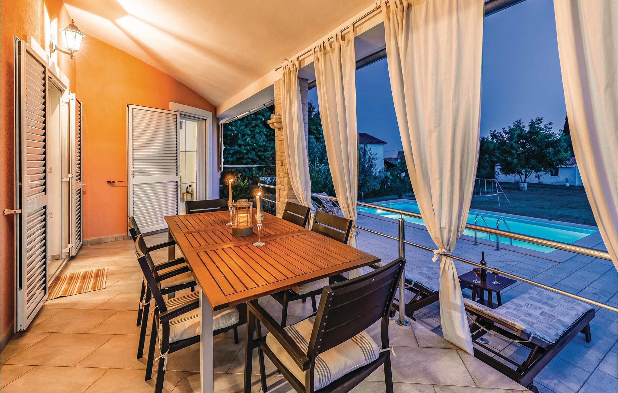 Dieses schöne und modern eingerichtete Ferienhaus liegt nur 10 Autominuten von Pula entfernt. Besonders der große Garten mit Schaukel und ein kombinierter Volleyball-/Badmintonplatz auf Gras sorgen für erholsame Momente. Hier können sich Ihre Kinder austoben oder im einladenden Swimmingpool Erfrischung finden, während Sie es sich mit einem guten Glas Wein gemütlich machen. Besuchen Sie eine der wunderschönen Naturbuchten mit kristallklarem Wasser in Duga Uvala oder die umliegenden, kleinen Orte Krnica, Rakalj, Kavran, wo im Sommer verschiedene Veranstaltungen stattfinden. Eine davon ist das Fischerfest, das eine ideale Gelegenheit bietet, lokale Sitten und Bräuche, sowie die reiche, traditionelle Küche der Region kennenzulernen. Für alle, die eine lebhafte Stadt bevorzugen, empfehlen wir einen Stadtbummel in Pula zu unternehmen. Hier erwarten sie viele kulturhistorische und interessante Sehenswürdigkeiten. Dazu zählen auch der Sergier Triumpfbogen und die eindrucksvolle, römische Arena.