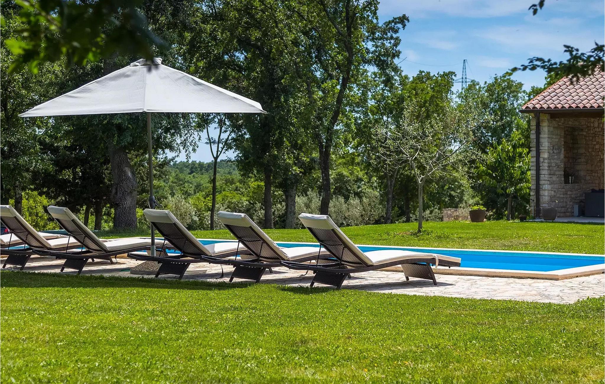 Die atemberaubend schöne Villa B&L nördlich von Pula gelegen wird Ihnen Ihr Herz stehlen. Das große Anwesen mit dieser einzigartigen Steinvilla und den typisch istrischen Details befindet sich im Dorf Divsici nahe Vodnjan, auf einer kleinen Anhöhe gelegen, inmitten von Grün. Ein großartiger Pool bildet das Herzstück und wird Ihnen an heißen Sommertagen die nötige Erfrischung bieten. Genießen Sie die warmen Sonnenstrahlen der Sonne Kroatiens auf einer der Sonnenliegen am Pool, während Sie an einem kühlen Getränk nippen. Auf dem großen Grundstück ist genug Platz für die kleinen Gäste zum Spielen, ein Trampolin und ein kleiner Kinderspielplatz stehen zu Verfügung. Einige Terrassen bieten die Möglichkeit, sich auch mal zurückzuziehen oder sich mit Familie und Freunden zu gemeinsamen Sommerabenden beim Grillen zu treffen. Finden Sie Ihren ganz persönlichen Lieblingsplatz in der Villa B&L!