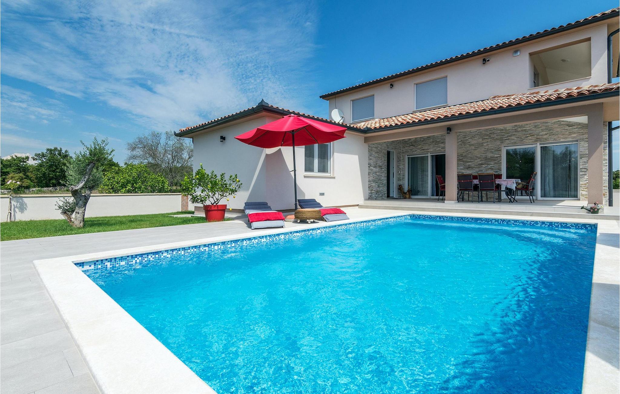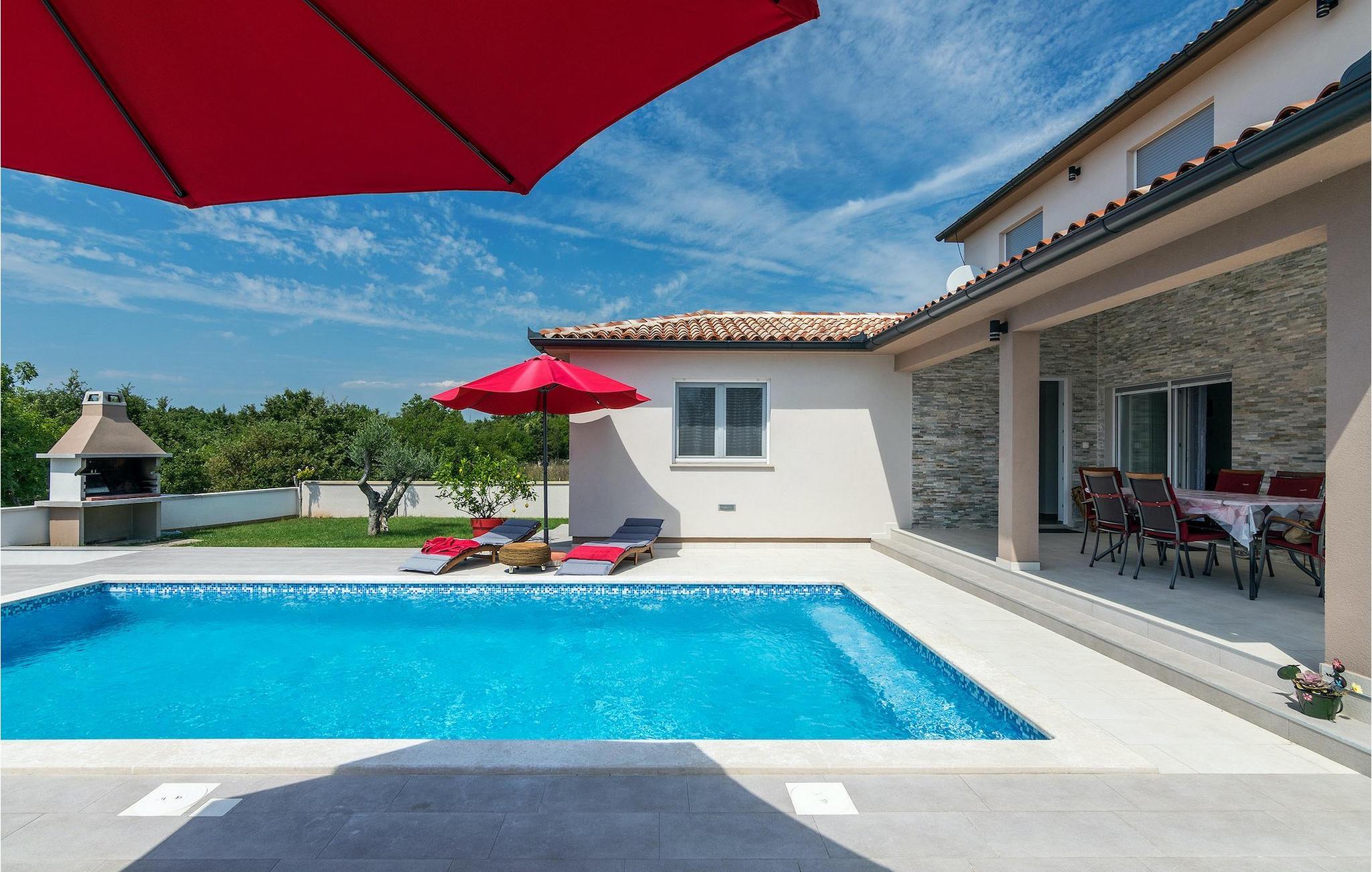 Wenn Sie im Freien kochen und speisen möchten, können Sie den Außenbereich dieser Villa mit überdachtem Essbereich und Grill nutzen. Und nicht zu vergessen ist der einladende Privatpool mit Sonnenliegen, der während der warmen Sommermonate dringend benötigte Erfrischung bietet. :)Die wunderschöne Villa Lena befindet sich in einem kleinem Dorf in Istrien namens Krvavici. So wie die Mehrheit der istrischen Dörfer, ist das Dorf Krvavici auch von atemberaubender Natur, grünen Hügeln und Feldern umgeben, weswegen seine Lage ideal für einen entspannenden Urlaub ist. Falls Sie sich für historische Städte interessieren, ist Pula nur eine kurze Fahrt von der Villa entfernt.