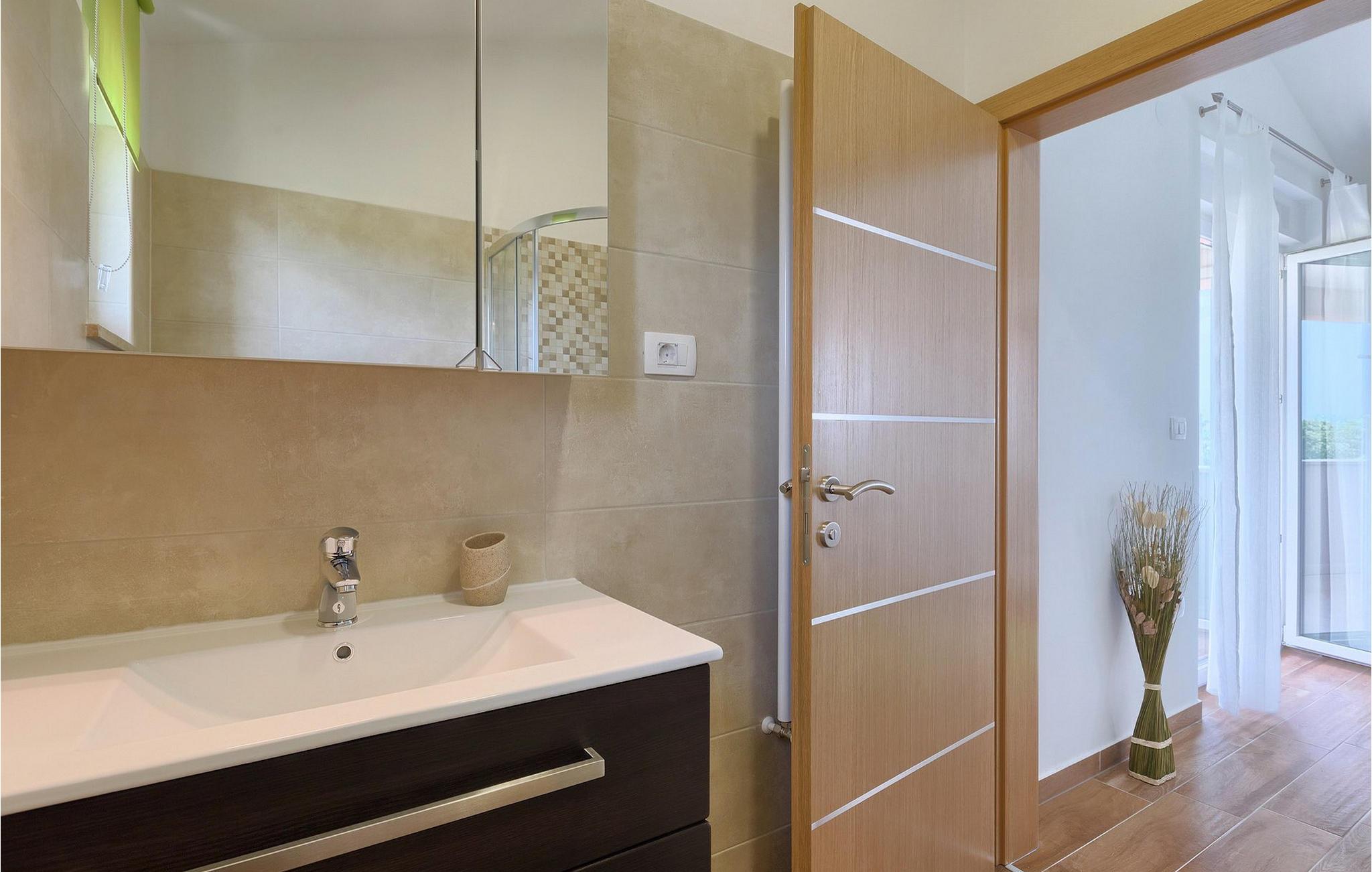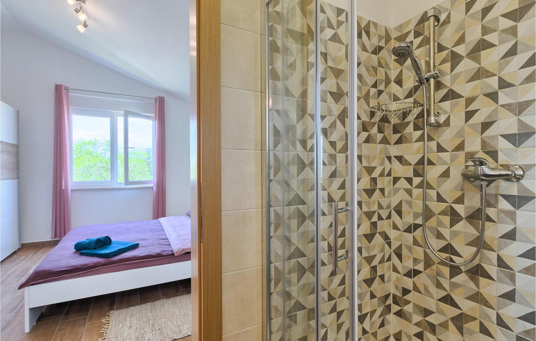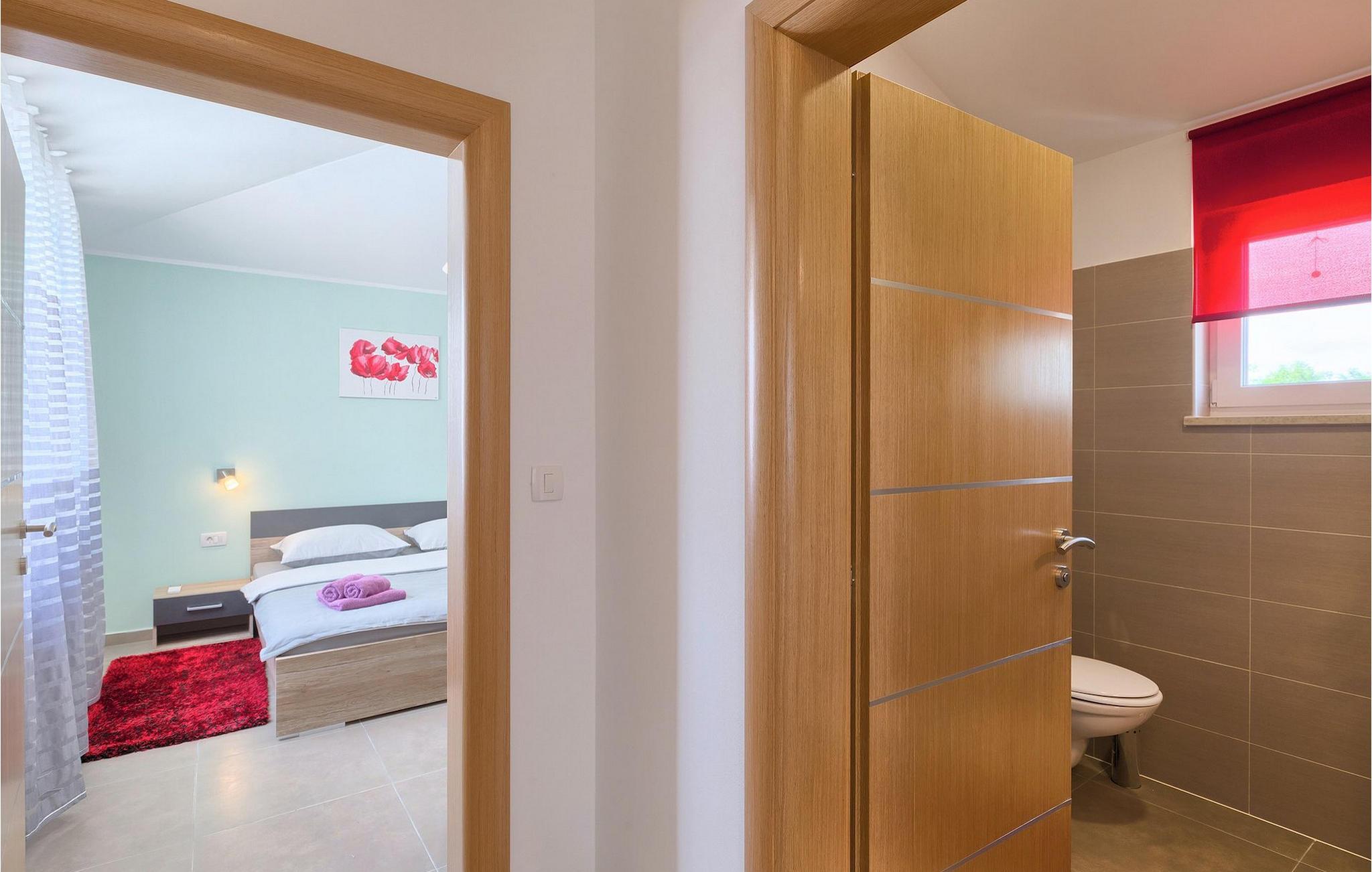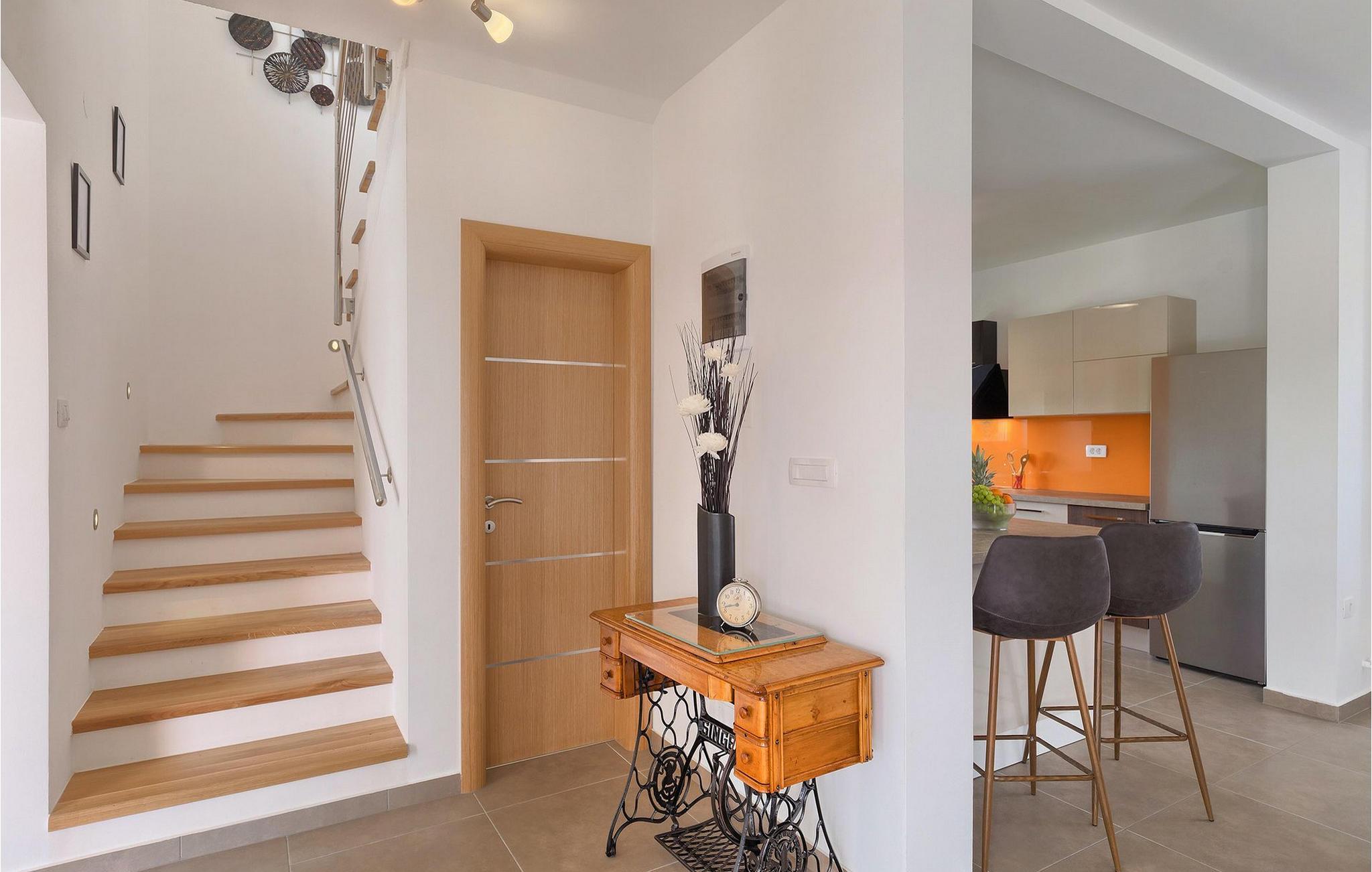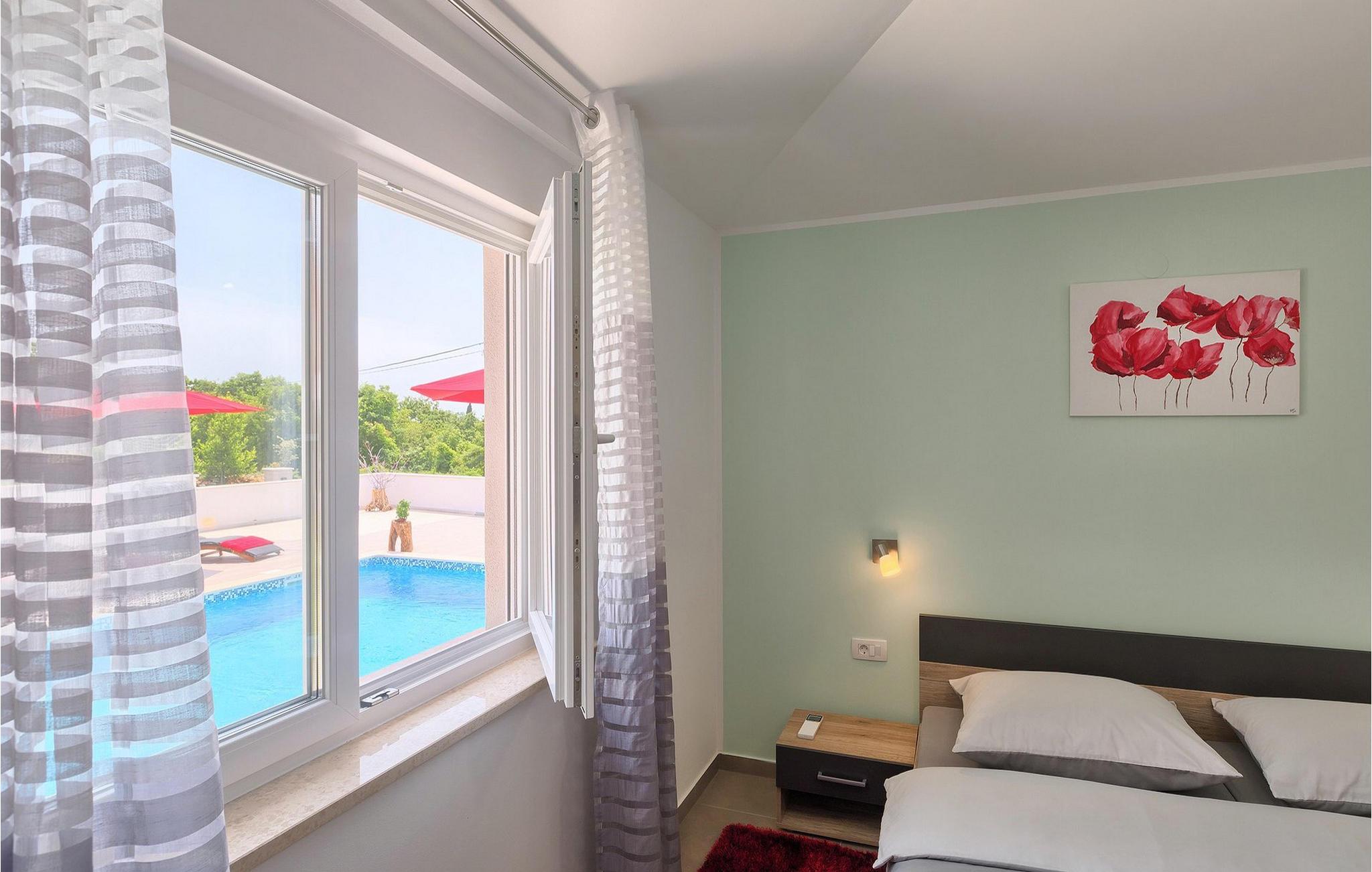 Villa Lena ist eine ideale Wahl für all diejenigen, die ihren Urlaub in einer natürlichen Umgebung ohne viele Nachbarn verbringen möchten, so dass sie sich richtig entspannen können. Die Villa bietet kann bis zu 6 + 2 Personen in 3 Schlafzimmern beherbergen. Das Interieur wurde mit sanften Naturfarben dekoriert, so dass Sie sich, sobald Sie die Villa betreten, wie zu Hause fühlen können. Das Erdgeschoss besteht aus einem offenen Wohnbereich mit komfortabler Eckgarnitur und TV, einem Essbereich und einer völlig ausgestatteten Küche mit Frühstücksbar. Ein Doppelzimmer und ein Badezimmer befinden sich ebenfalls auf dieser Etage. Die anderen beiden Schlafzimmer mit eigenem Bad sowie eine überdachte Terrasse befinden sich auf der ersten Etage. Die Terrasse bietet einen schönen Ort, von dem aus Sie die Aussicht auf die Umgebung genießen können.