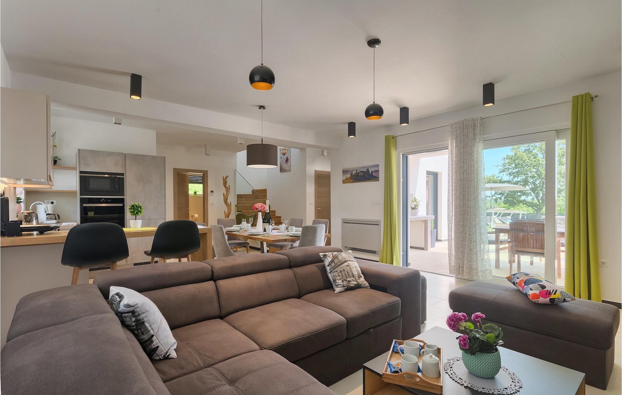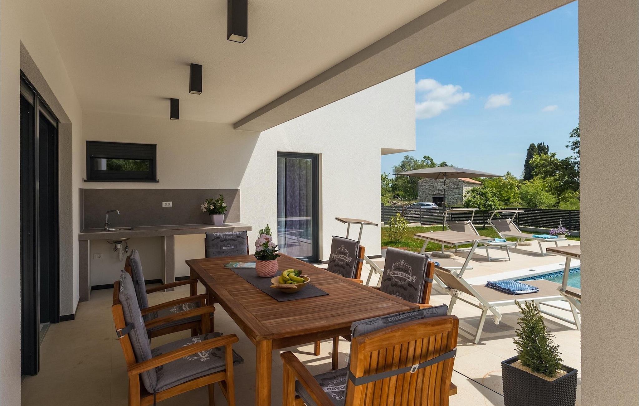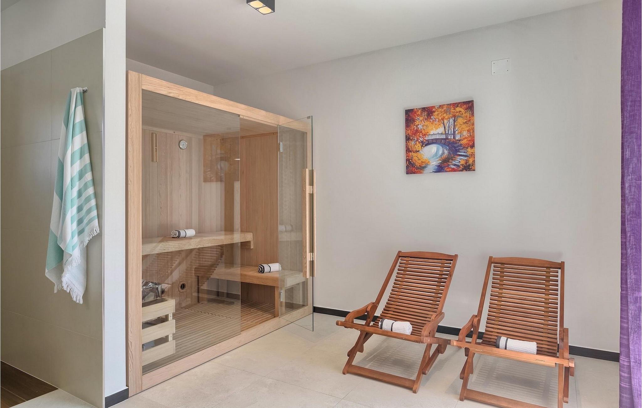 Stellen Sie sich vor, Sie bereiten Ihre Lieblingsgerichte vor für Ihre Familie und Ihre Freunde während Sie zum Pool schauen und danach zusammen im Offenen Speisen, wo sich auch der Grill befindet. All dies kann Wahr sein, wenn Sie sich entscheiden Ihren Urlaub in der Villa Lucas zu verbringen. Im Erdgeschoss befindet sich eine große, minimalistisch aber modern eingerichteter offener Raum für Kochen und Speisen aber auch als Wohnzimmer geeignet. Hier befindet sich auch ein besonderer Raum zum Entspannen. Die Sauna steht Ihnen zur Verfügung für Ihren sorglosen Urlaub. Die Küche mit dem heutigen Design ist komplett ausgestattet für Ihre kulinarischen Abenteuer. Alle Schlafzimmer schauen auf den grünen Garten und den entspannten Poolbereich umgeben von Sonnenliegen und Sonnenschirmen. Im ersten Stock befinden sich 3 angenehme Schlafzimmer in natürlichen, entspannenden Farbtönen mit privaten Badezimmern. Aus dem Flur (und aus einem Schlafzimmer), kommen Sie zur geräumigen, geteilten Terrasse mit Blick auf die grünen Hügel Istriens und das Meer im weiten Hintergrund. Hier können Sie in Ihrem ersten Morgenkaffee oder Tee genießen während Sie sich ein bisschen sonnen. Die Villa ist voll von sorgfältig ausgewählten Details und Dekorationen, mit denen Sie sich während Ihres friedlichen Aufenthalts willkommen fühlen werden. Während heißen Tagen können Sie sich im privaten Pool mit Hydromassage erholen oder nur entspannt auf einer der Sonnenliegen die Sonne genießen.Marcana ist eine Kleinstadt 15 km entfernt von Pula, im südöstlichen Teil der Halbinsel. Hier können Sie naheliegenden Dolinen und Höhlen besuchen. Die größten Höhlen sind die Ljubic und Peresin Höhlen. Einige Stein- und Keramikreste und sogar alte Knochen, wurden hier gefunden. Wahrscheinlich waren diese ein Teil des römischen Erbes. Dieses Gebiet ist auch für zahlreiche rustikale Villen bekannt, die damals hier erbaut wurden. Diese Landgüter waren für ihr rustikales Aussehen und interessante Steinverzierungen berühmt. Wenn Sie sich für Besichtigung entscheiden, sollten Sie unbedingt die naheliegende Stadt Pula besuchen. Es ist die größte Stadt Istriens, mit dem schönen Amphitheater, Museen und zahlreichen Bars und Restaurants. Pula bietet auch zahlreiche kulturelle Veranstaltungen (Theater, Kino, Konzerte, Festivals) an, sowie ein lebendiges Nachtleben, also werden Sie sicherlich nicht gelangweilt bleiben. Falls Sie wünschen in das blaue, klare Meer einzutauchen, finden Sie die nächsten Strände nur 10 km entfernt. Die Auswahl an Stränden ist groß - für jeden etwas. Egal, ob Sie Ihren Strand lieber kieselig, felsig oder sandig mögen.