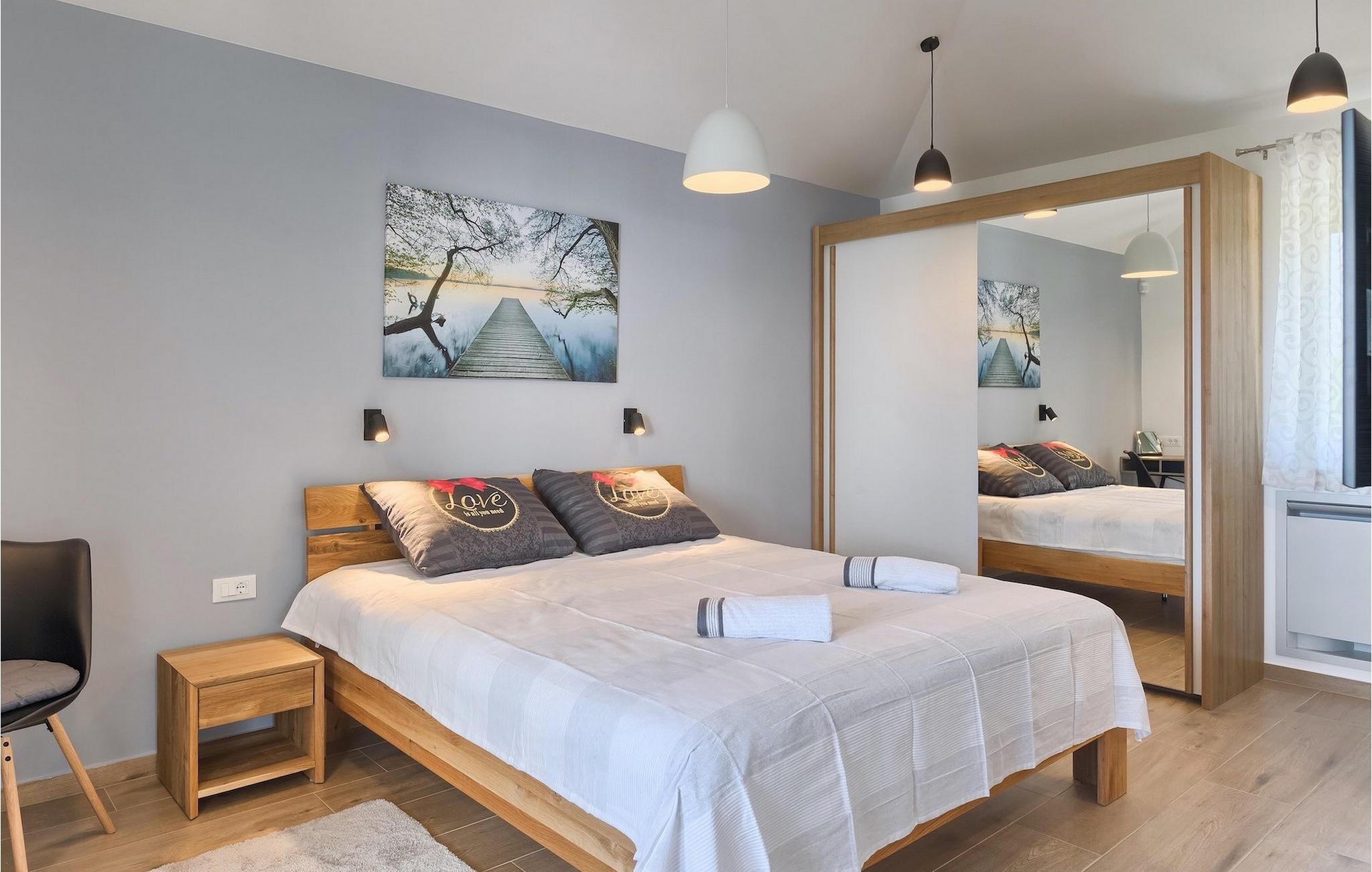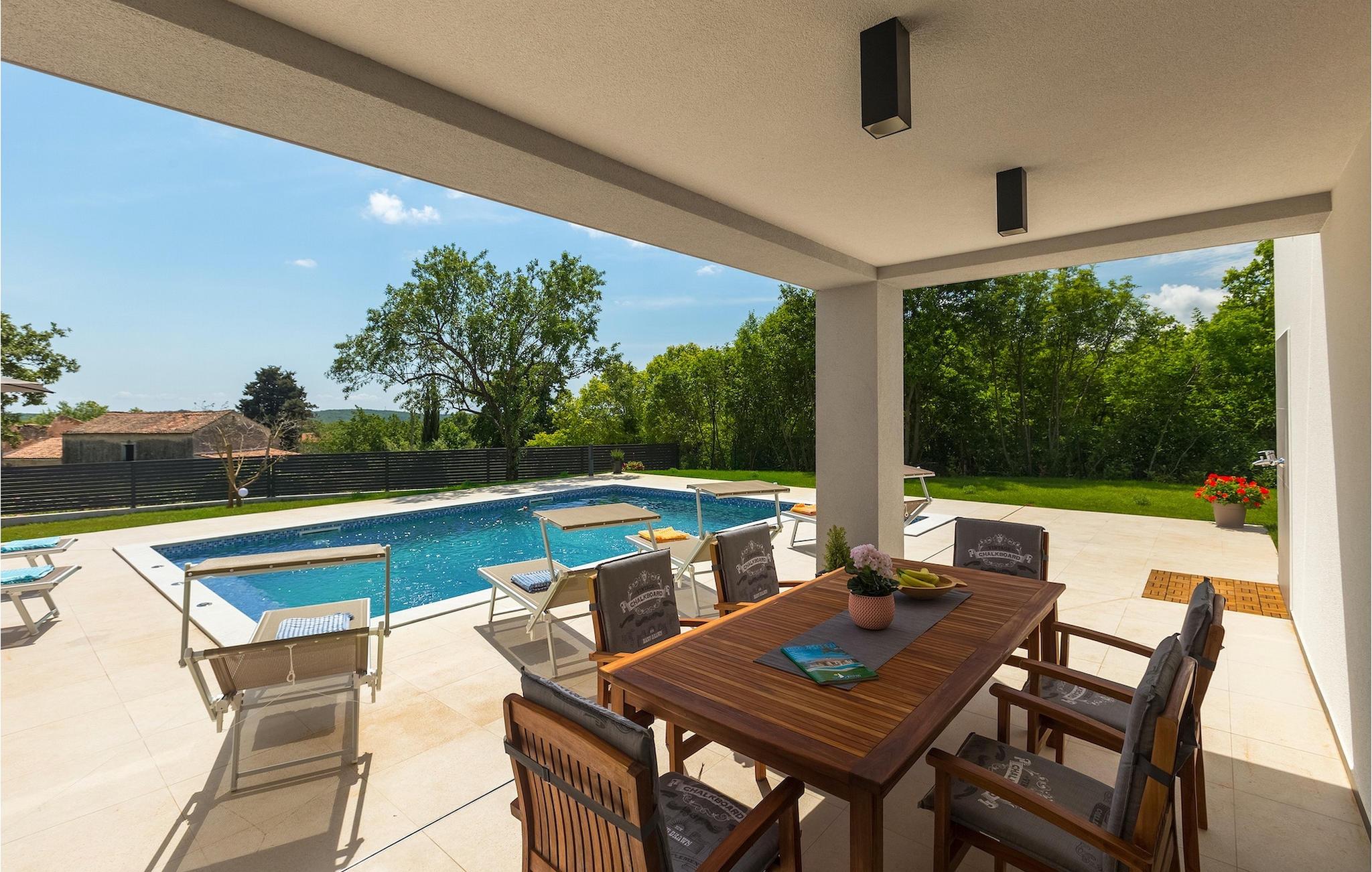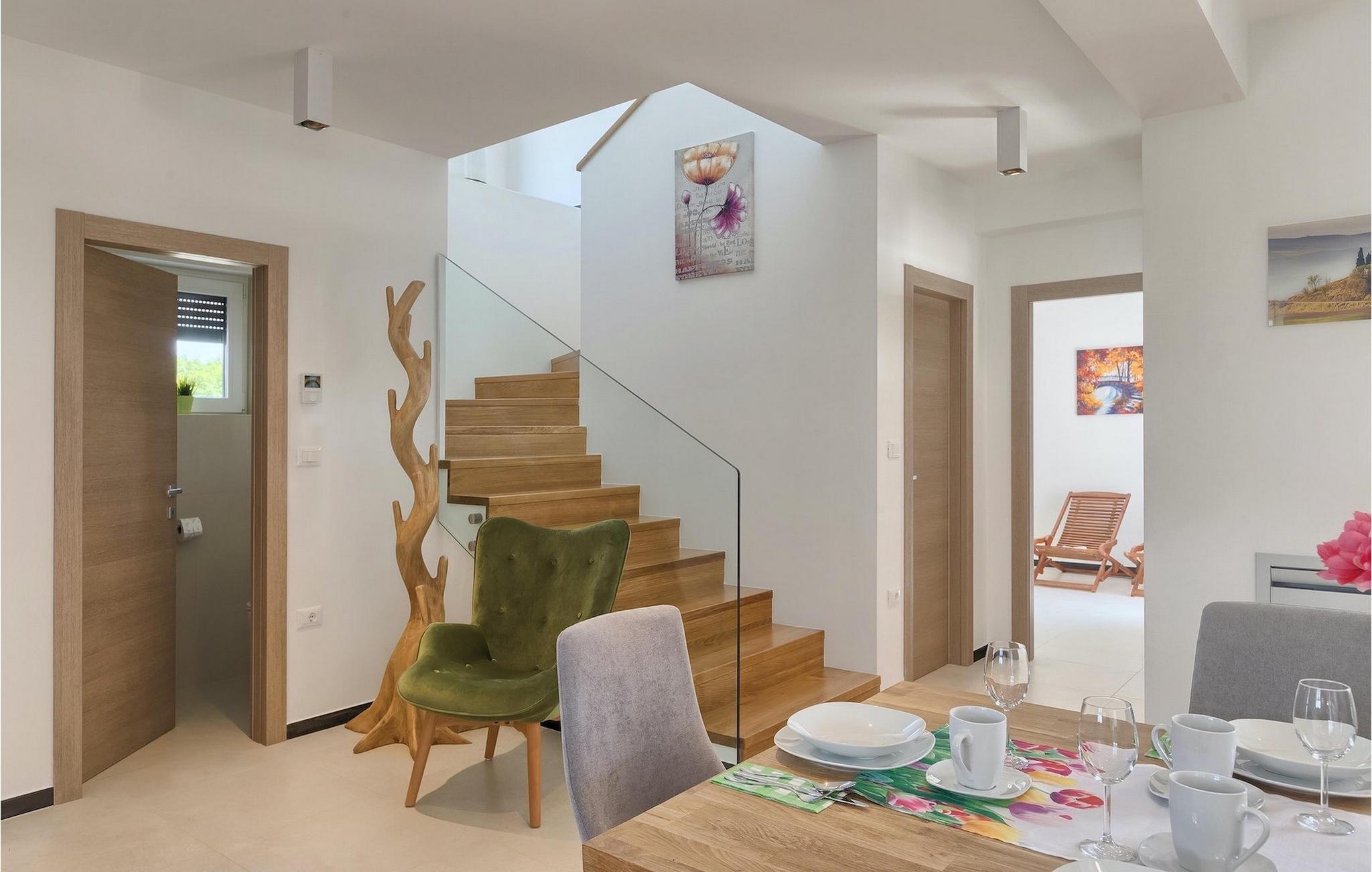 Stellen Sie sich vor, Sie bereiten Ihre Lieblingsgerichte vor für Ihre Familie und Ihre Freunde während Sie zum Pool schauen und danach zusammen im Offenen Speisen, wo sich auch der Grill befindet. All dies kann Wahr sein, wenn Sie sich entscheiden Ihren Urlaub in der Villa Lucas zu verbringen. Im Erdgeschoss befindet sich eine große, minimalistisch aber modern eingerichteter offener Raum für Kochen und Speisen aber auch als Wohnzimmer geeignet. Hier befindet sich auch ein besonderer Raum zum Entspannen. Die Sauna steht Ihnen zur Verfügung für Ihren sorglosen Urlaub. Die Küche mit dem heutigen Design ist komplett ausgestattet für Ihre kulinarischen Abenteuer. Alle Schlafzimmer schauen auf den grünen Garten und den entspannten Poolbereich umgeben von Sonnenliegen und Sonnenschirmen. Im ersten Stock befinden sich 3 angenehme Schlafzimmer in natürlichen, entspannenden Farbtönen mit privaten Badezimmern. Aus dem Flur (und aus einem Schlafzimmer), kommen Sie zur geräumigen, geteilten Terrasse mit Blick auf die grünen Hügel Istriens und das Meer im weiten Hintergrund. Hier können Sie in Ihrem ersten Morgenkaffee oder Tee genießen während Sie sich ein bisschen sonnen. Die Villa ist voll von sorgfältig ausgewählten Details und Dekorationen, mit denen Sie sich während Ihres friedlichen Aufenthalts willkommen fühlen werden. Während heißen Tagen können Sie sich im privaten Pool mit Hydromassage erholen oder nur entspannt auf einer der Sonnenliegen die Sonne genießen.Marcana ist eine Kleinstadt 15 km entfernt von Pula, im südöstlichen Teil der Halbinsel. Hier können Sie naheliegenden Dolinen und Höhlen besuchen. Die größten Höhlen sind die Ljubic und Peresin Höhlen. Einige Stein- und Keramikreste und sogar alte Knochen, wurden hier gefunden. Wahrscheinlich waren diese ein Teil des römischen Erbes. Dieses Gebiet ist auch für zahlreiche rustikale Villen bekannt, die damals hier erbaut wurden. Diese Landgüter waren für ihr rustikales Aussehen und interessante Steinverzierungen berühmt. Wenn Sie sich für Besichtigung entscheiden, sollten Sie unbedingt die naheliegende Stadt Pula besuchen. Es ist die größte Stadt Istriens, mit dem schönen Amphitheater, Museen und zahlreichen Bars und Restaurants. Pula bietet auch zahlreiche kulturelle Veranstaltungen (Theater, Kino, Konzerte, Festivals) an, sowie ein lebendiges Nachtleben, also werden Sie sicherlich nicht gelangweilt bleiben. Falls Sie wünschen in das blaue, klare Meer einzutauchen, finden Sie die nächsten Strände nur 10 km entfernt. Die Auswahl an Stränden ist groß - für jeden etwas. Egal, ob Sie Ihren Strand lieber kieselig, felsig oder sandig mögen.