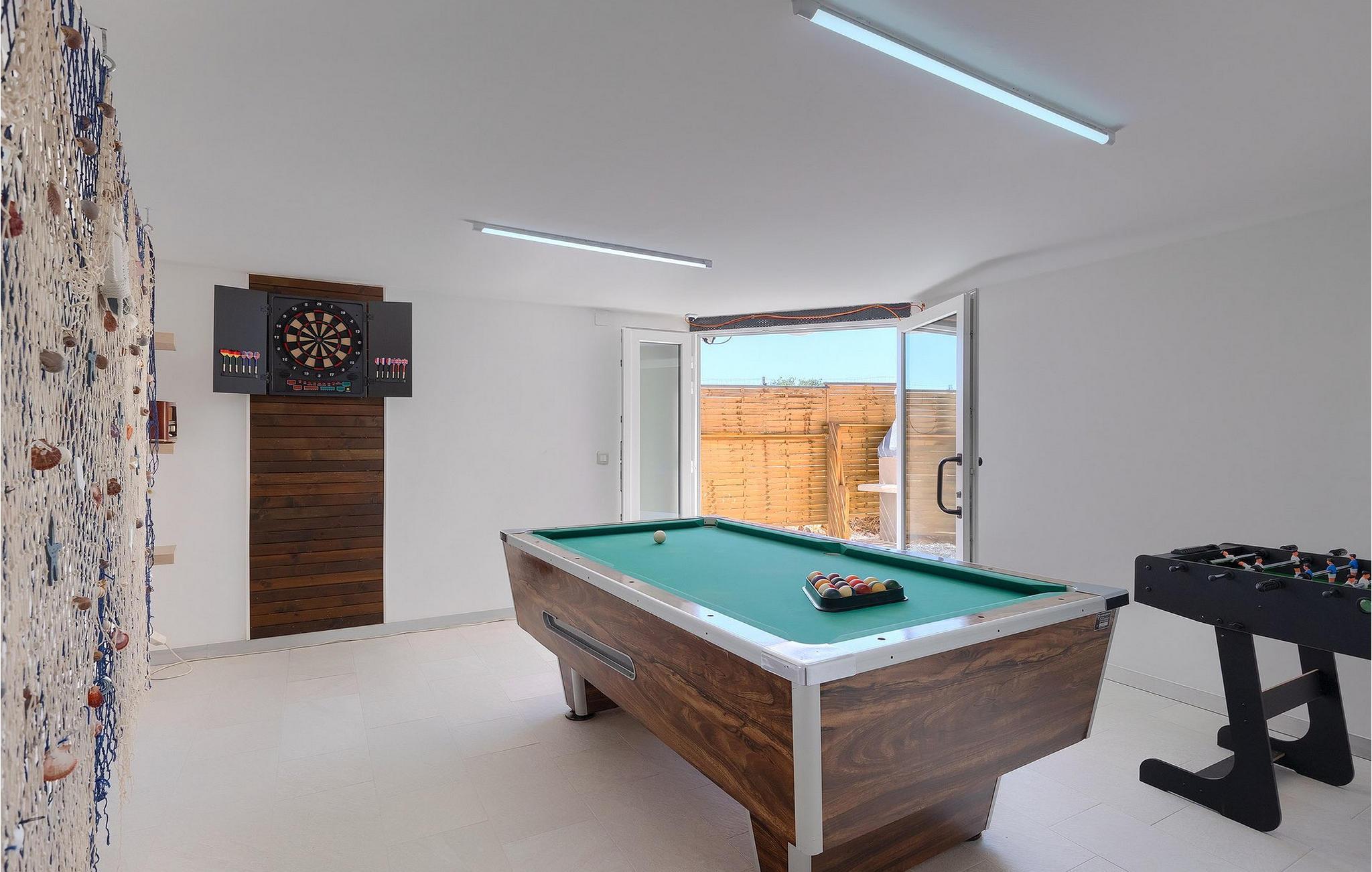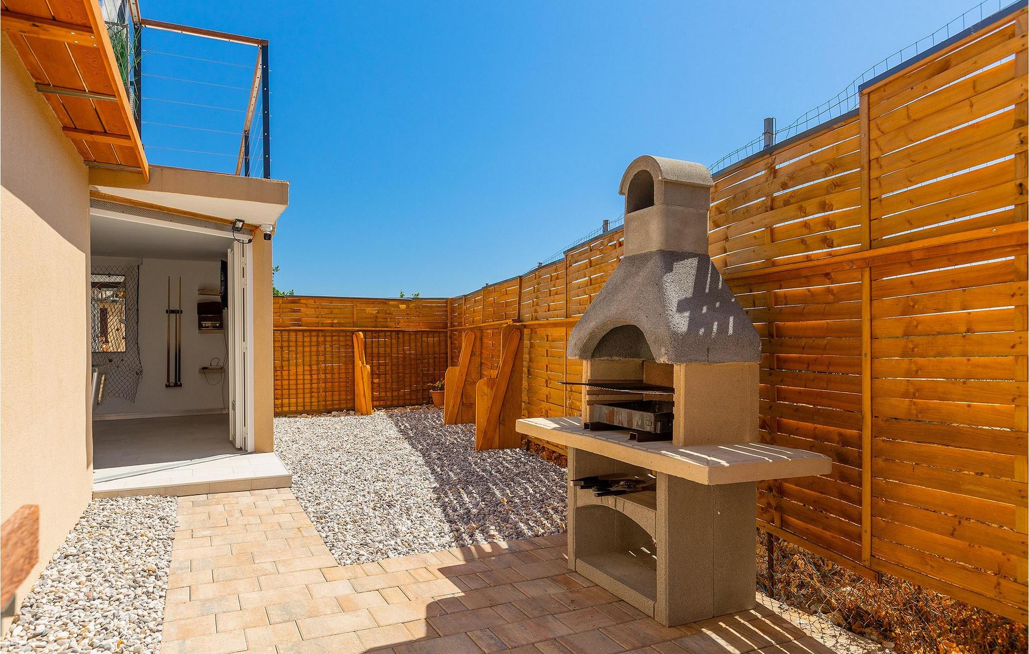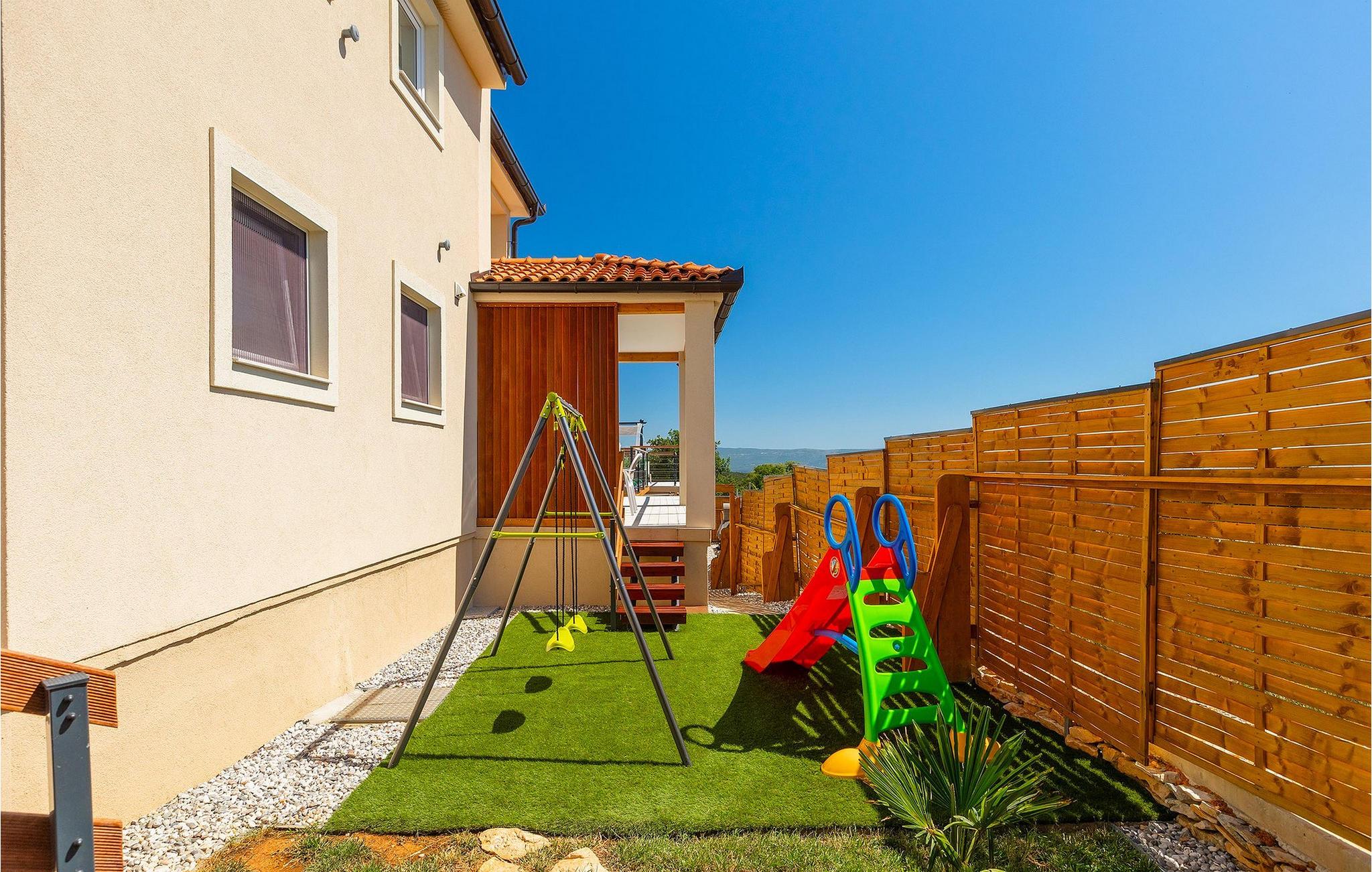 Die schöne Villa Veduta befindet sich im westlichen Teil von Istrien und ist ein ideales Haus für bis zu 6 Gäste. Die Villa besteht aus einem Innen- und einem umzäunten Außenbereich, einem privaten Pool und einer Terrasse mit herrlichem Blick auf die Küste und Natur. Genießen Sie die einzigartige Aussicht von der Terrasse aus, entfliehen Sie der Sommerhitze im privaten Pool oder genießen Sie einfach ein kühles Getränk, während Sie die Sonnenstrahlen auf den Liegestühlen fangen. Diese Villa bietet einen Grill wo sie Speisen vorbereiten können, eine Entspannungsecke im Schatten und einen Spielplatz mit Schaukel und Rutsche für Kinderspiele. Von der Terrasse aus hat man direkten Zugang zum Innenbereich, der aus einem geräumigen Wohnzimmer, einer voll ausgestatteten Küche und einem Esszimmer sowie einem Badezimmer besteht. Die Treppe führt in den ersten Stock des Hauses, wo sich 2 moderne Schlafzimmer mit Doppelbett und eigenem Badezimmer befinden, die klimatisiert sind und einen TV verfügen. Ein Freizeitraum mit Billard und Pikado sorgt für Spaß und Unterhaltung im Kreise Ihrer Liebsten. Buchen Sie die Villa Veduta und sorgen Sie für einen sorgenfreien Urlaub!Die Villa Veduta befindet sich in einer ruhigen Lage, aber in der Nähe der größeren Städten in dieser Region: Pula, Labin und Rabac. Pula ist die größte Stadt in Istrien und bietet eine große Auswahl von Bars, Restaurants und Sehenswürdigkeiten. Ein Besuch des berühmten Amphitheaters aus dem 1. Jahrhundert ist eine unvergessliche Erfahrung. Es befindet sich im Stadtzentrum und wir empfehlen eine Besichtigung, um mehr über das imposante Gebäude von großem historischen Wert zu erfahren. Hier finden zahlreiche Veranstaltungen statt, z. B. Konzerte, Filmvorführungen und Sportereignisse. Die Umgebung bietet zahlreiche Möglichkeiten zur Freizeitgestaltung: Radfahren, Reiten, Joggen, Wandern und vieles mehr. Naturliebhabern empfehlen wir einen Ausflug in den nahe gelegenen Nationalpark Brijuni oder zum Kap Kamenjak, wo Sie unberührte Naturschönheiten und natürliche Besonderheiten genießen können. Nicht weit entfernt liegen Labin und Rabac, die für ihre schönen Kieselstrände mit kristallklarem Meer bekannt sind. Machen Sie einen Spaziergang entlang der Küste und probieren Sie istrische Spezialitäten wie Nudeln mit Trüffeln oder Prosciutto, natürlich mit einem Glas des berühmten istrischen Malvasia. Diese mittelalterlichen Städte sind bekannt als die Stadt der Künstler, so dass Kunstliebhaber die Ateliers und Galerien mit Kunstwerken in den Steinstraßen besuchen können.