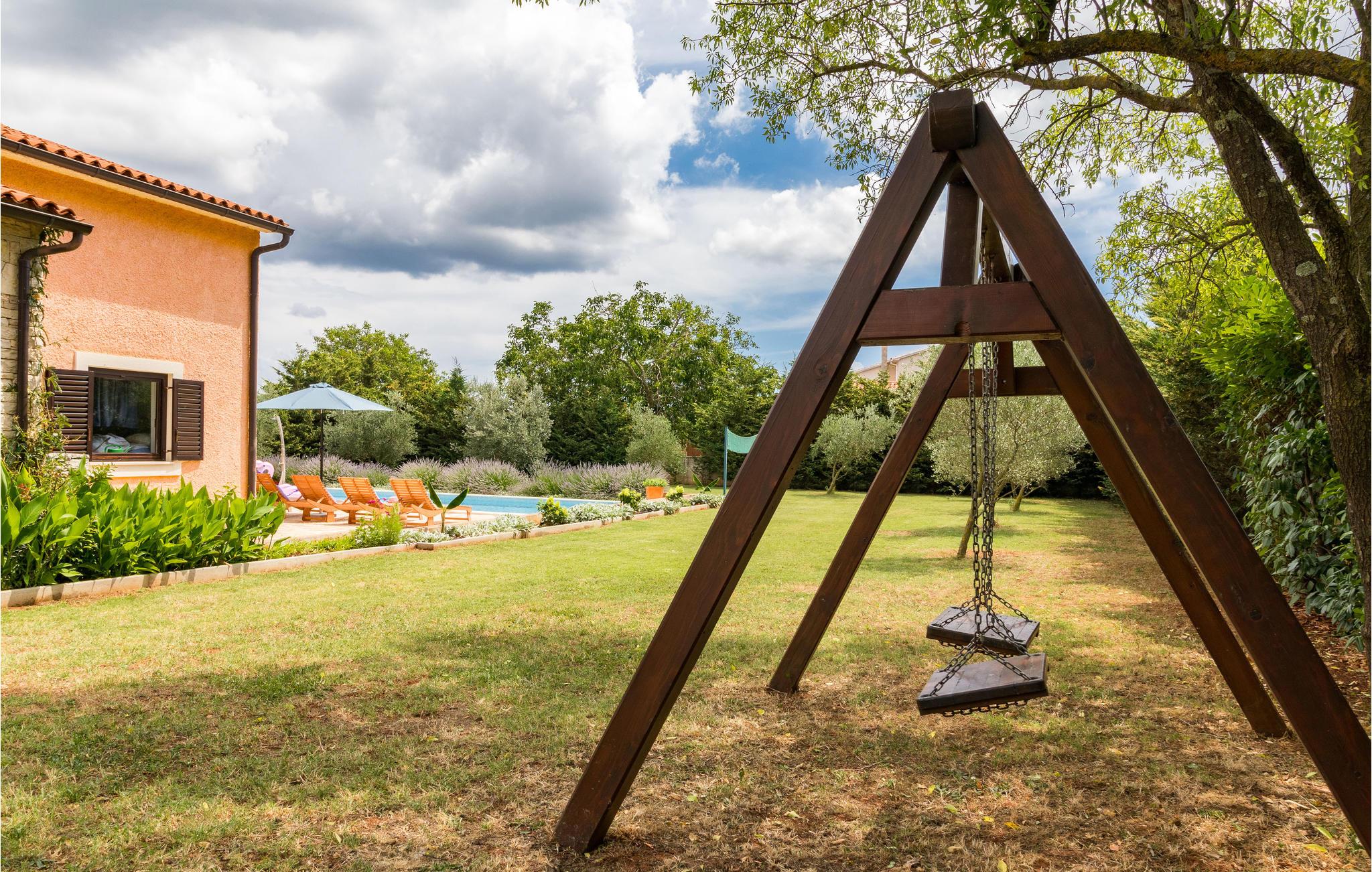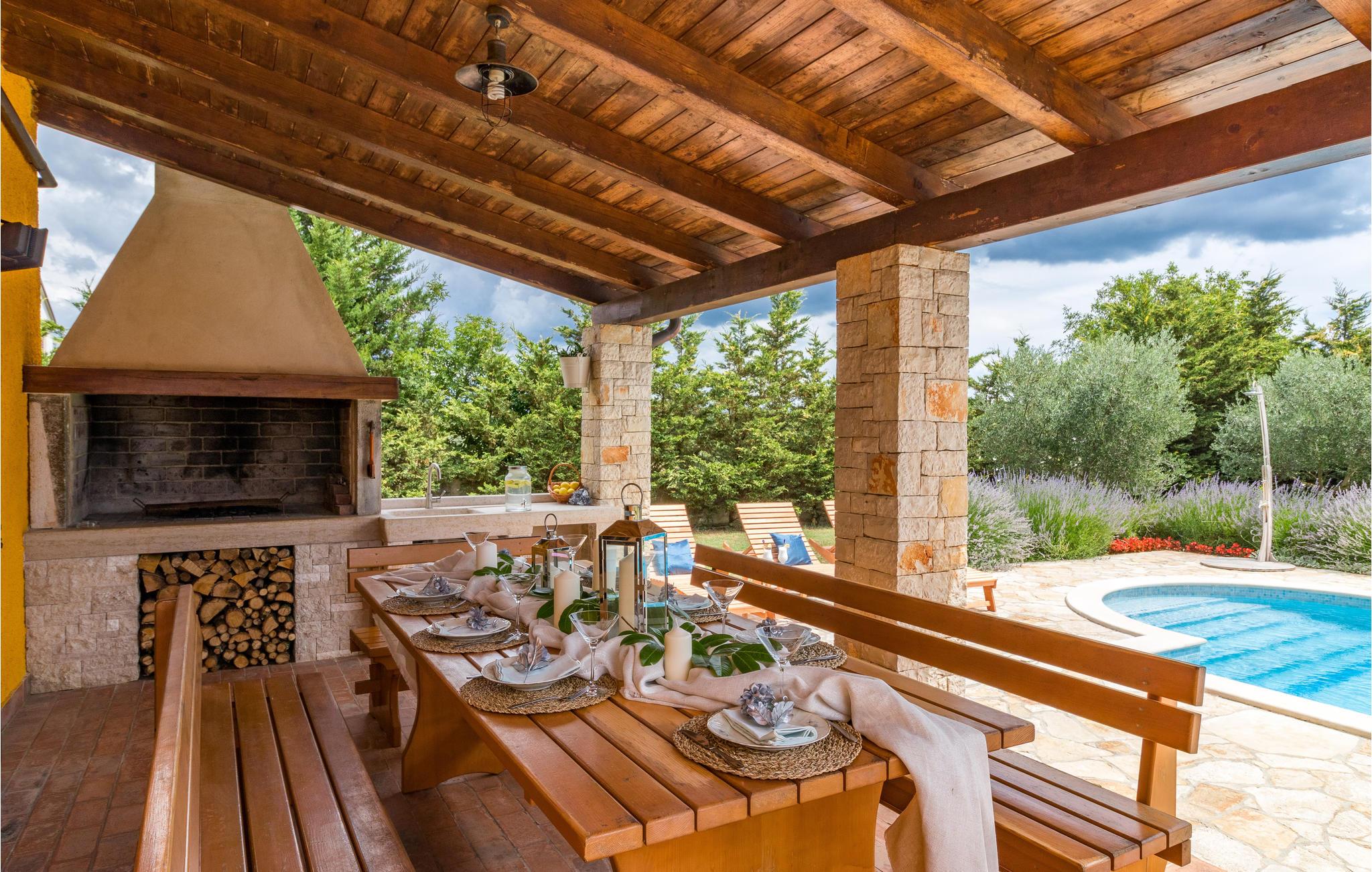 Im kleinen istrischen Dorf in der Nähe der Stadt Pula befindet sich das schöne Ferienhaus. Das Objekt wurde sehr komfortabel und mit Fokus auf Qualität gebaut. In der Inneneinrichtung wurden moderne mit rustikalen Elementen kombiniert. Das große Grundstück dominieren der schöne Außenpool und mediterrane Pflanzen. Das Erdgeschoss, mit großem, offenem Wohnbereich und dem Kamin in der Mitte des Raumes, wird neben Küche und Esszimmer der meistbesuchte Teil des Hauses sein. Alle Schlafzimmer haben eine Klimaanlage. Die Mindestdeckenhöhe beträgt 137 cm. Am herrlichen Außenpool können Sie sich sonnen oder mit Ihren Kindern spielen und auf der überdachten Terrasse sind ein Steinkamin, ein Waschbecken und ein Kühlschrank verfügbar. Besuchen Sie die Stadt Pula und ihre Sehenswürdigkeiten, wie das Amphitheater und den Augustustempel oder den Nationalpark Brijuni, der für diese Gegend von historischer Wichtigkeit ist. Die lokalen Restaurants und Bars sind für ihre kulinarischen Spezialitäten bekannt.