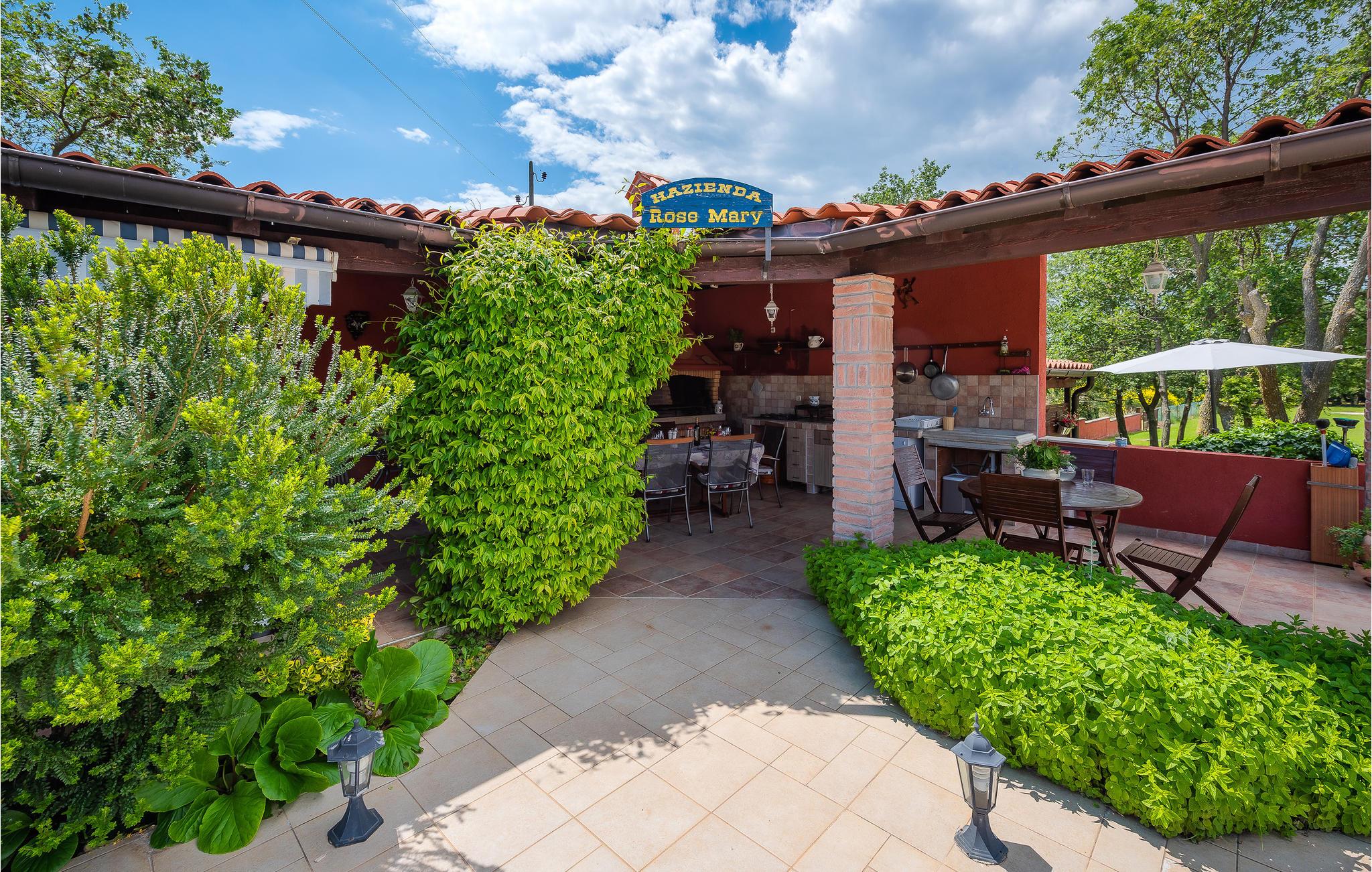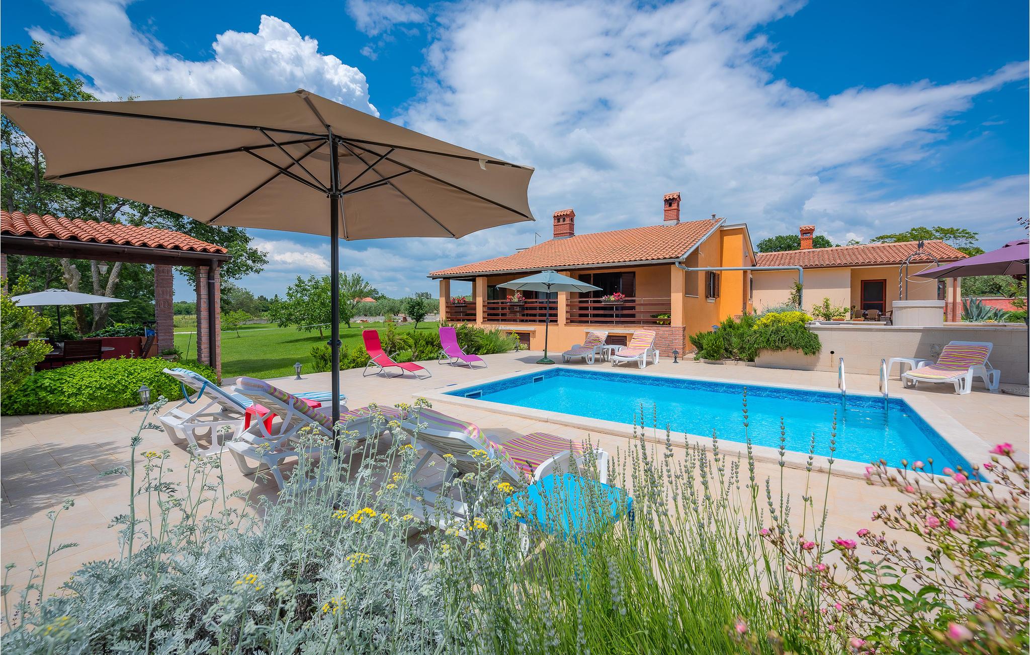Auf über 11.000 m² eingezäuntem Grundstück können die Gäste Privatsphäre genießen, im privaten Pool entspannen und sich in der voll ausgestatteten Sommerküche mit allen Geräten und Geschirrspüler leckere Mahlzeiten zubereiten und Sie gleich vor Ort verspeisen.