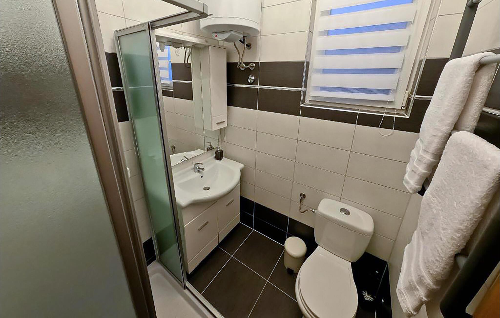 - WC mit warmem und kaltem Wasser, Dusche