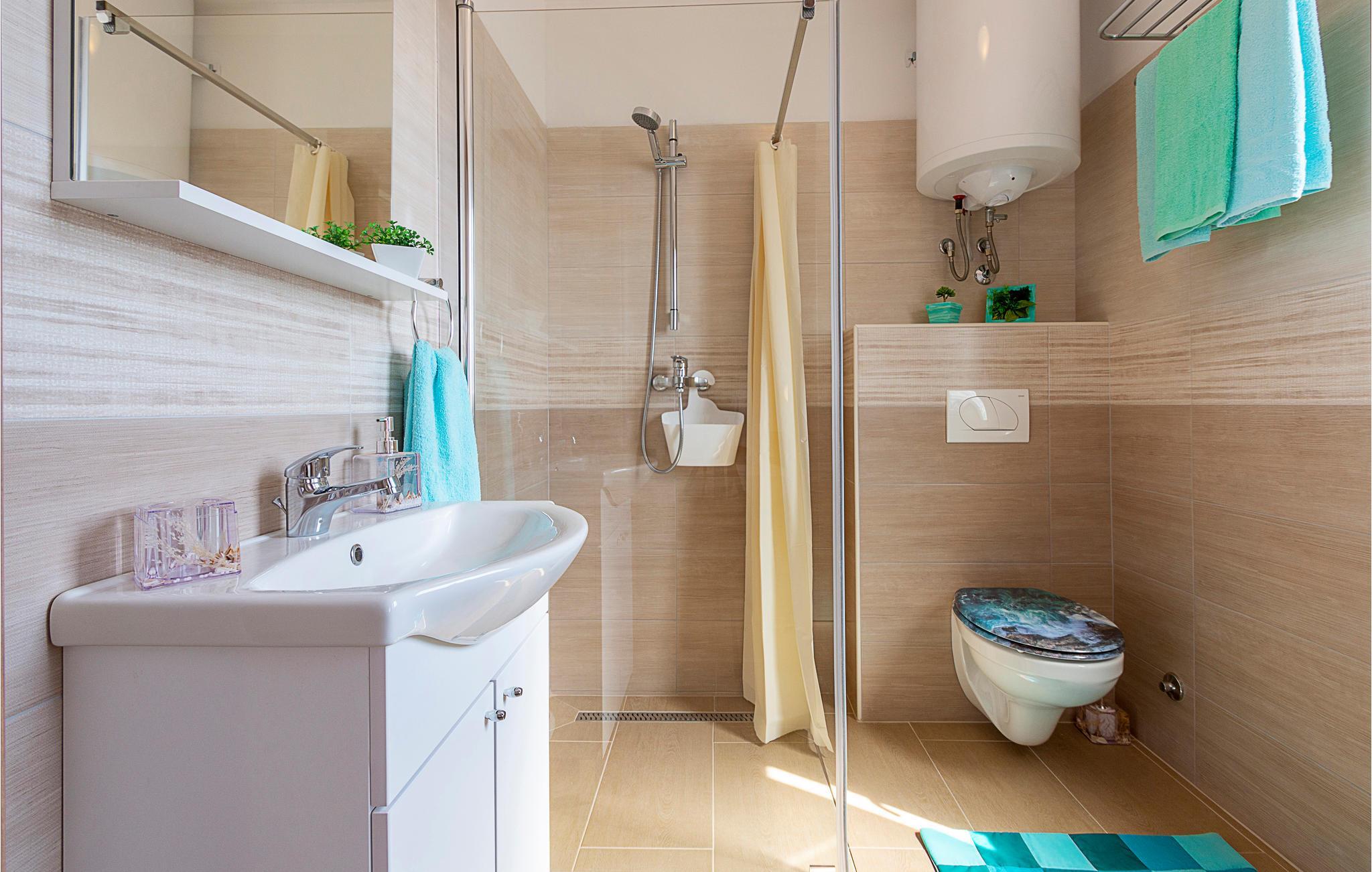 Badezimmer 4m2 (nr. 1) - WC. Warmes und kaltes Wasser. Dusche