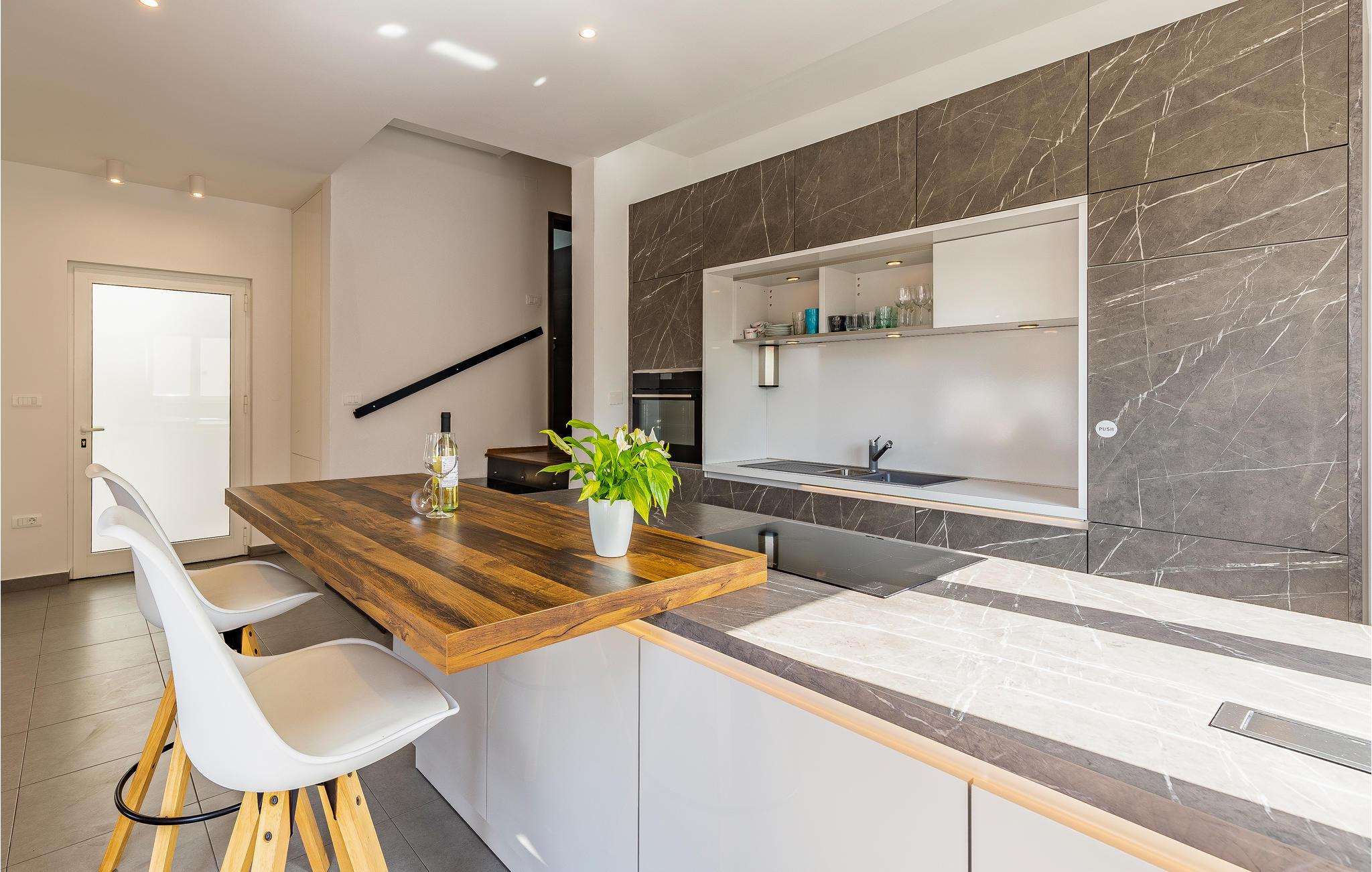 Dieses geschmackvoll eingerichtete Ferienhaus mit umzäuntem Garten befindet sich im kleinen Dorf Šišan in der Nähe von Pula. Die komfortablen Innenräume erstrecken sich über zwei Etagen, die mit Innentreppen verbunden sind. Im umzäunten Garten mit überdachter Terrasse und Grill können Sie gemütlich Ihren Morgenkaffee trinken und abends leckere Mahlzeiten zubereiten, während Ihre Kinder unbeschwert spielen. Ausgelassenen Badespaß verspricht der Pool, wo Sie sicherlich die meiste Zeit verbringen werden. Das Dorfzentrum mit kleinem Supermarkt, eine Konoba mit lokalen Spezialtäten sowie ein ausgezeichnetes Restaurant erreichen Sie bequem zu Fuß. Empfehlenswert ist ein Besuch der Altstadt von Pula sowie der beliebten Stadt Medulin.
