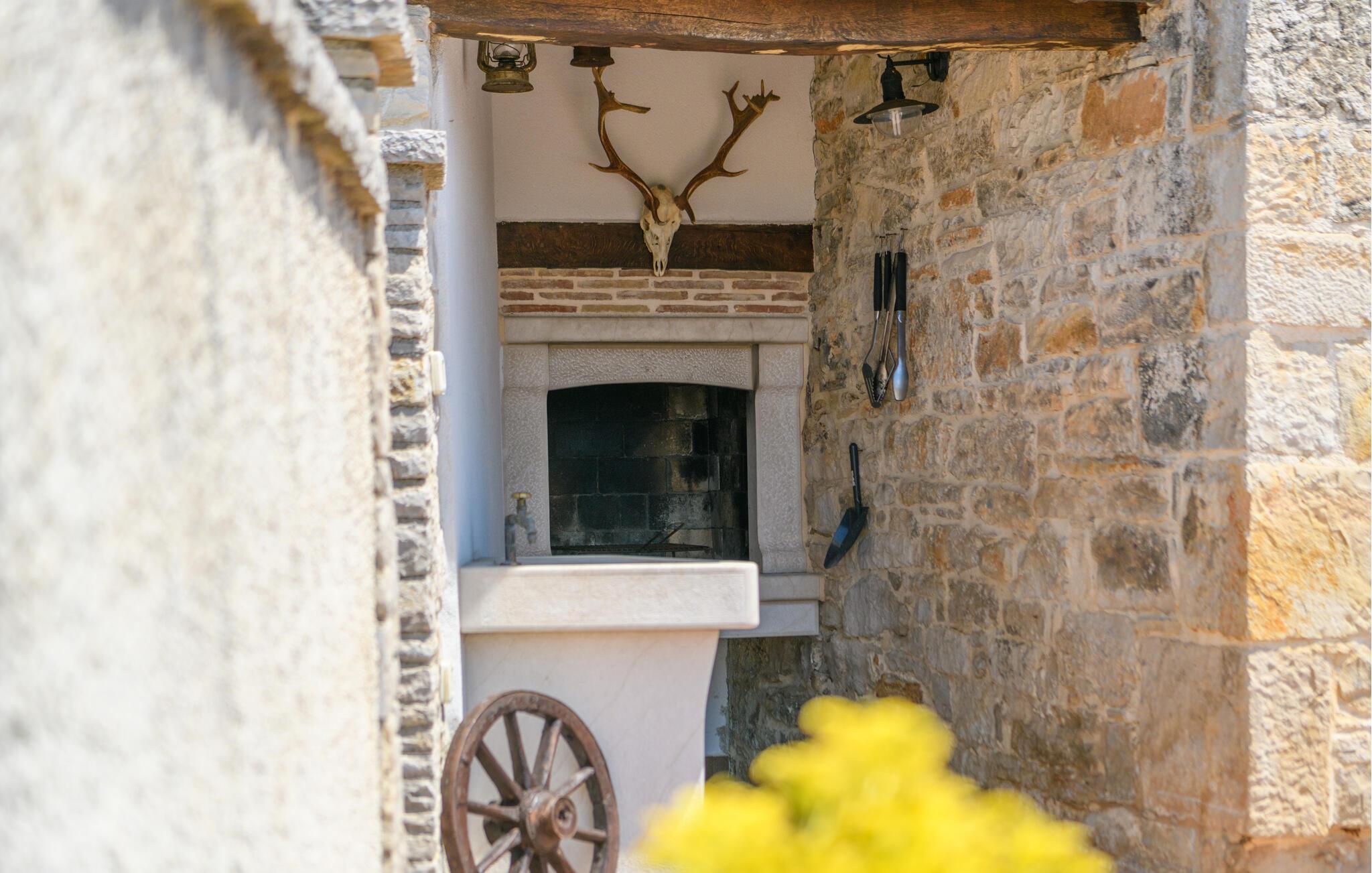 Outdoor fireplace with barbeque