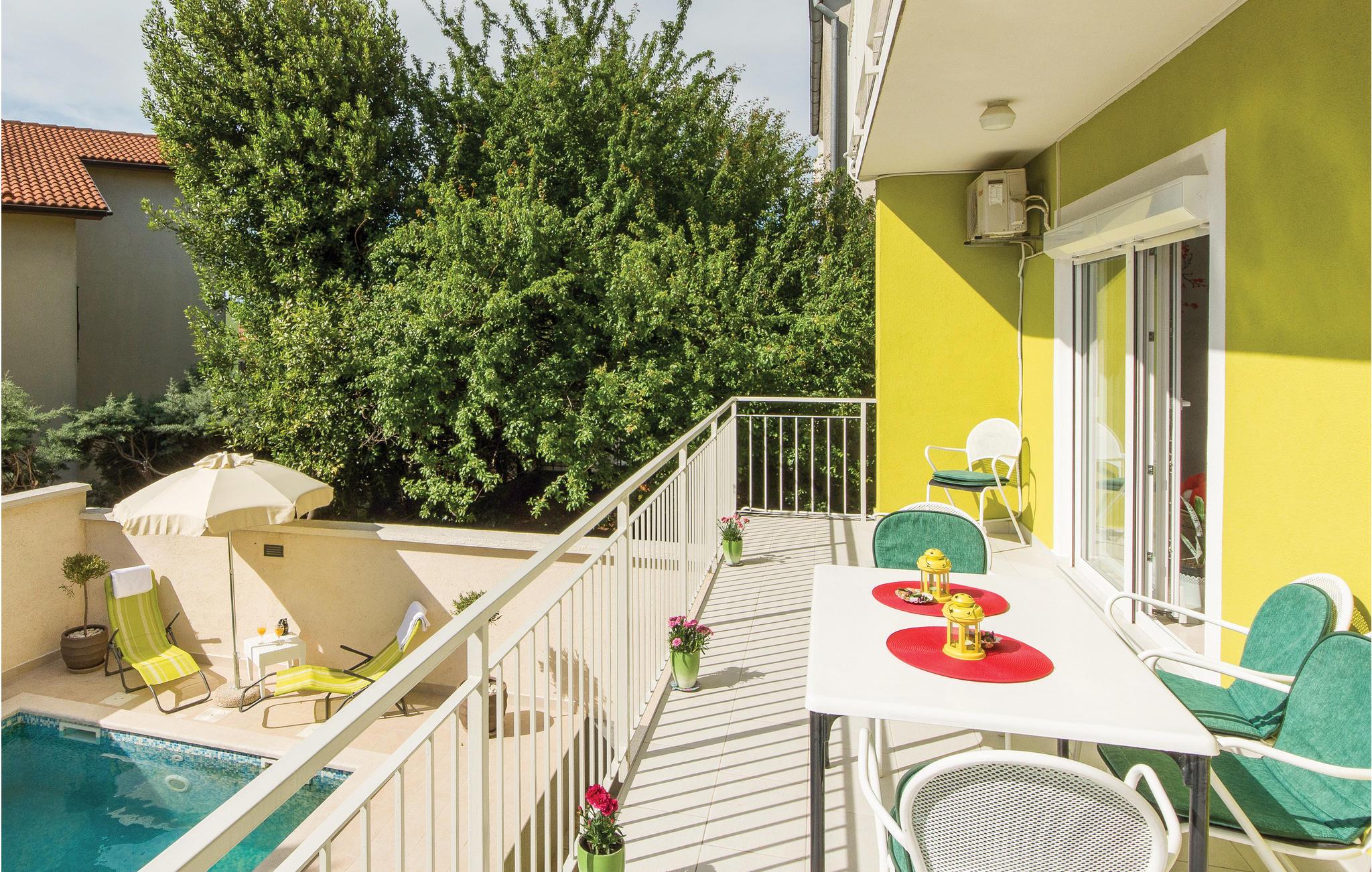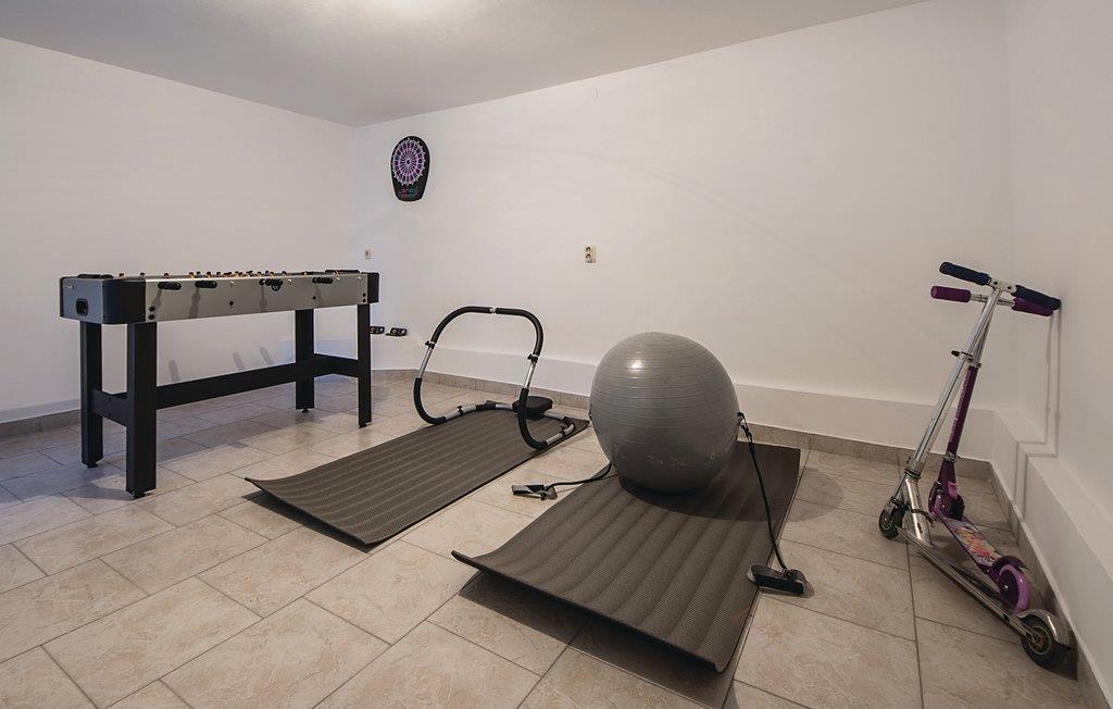 In einem Vorort befindet sich dieses komfortabel und modern eingerichtete Ferienhaus. Das Erdgeschoss und der erste Stock sind mit einer Innentreppe verbunden. Auf dem umzäunten Grundstück ist genug Platz für Kinder zu spielen und Schwimmen im Pool zu genießen. Im Aktivitätsraum können Sie sich mit Darts, Tischfußball und Fitnessgeräten beschäftigen. Außer vielen Denkmälern aus Römerzeit in Pula können auch Filmliebhaber einmalige Projektionen unter offenem Himmel in dem römischen Amphitheater während der Dauer des ältesten Filmfestivals Kroatiens genießen. Zwei Parkplätze sind auf dem umzäunten Grundstück verfügbar und ein Parkplatz in der Garage.