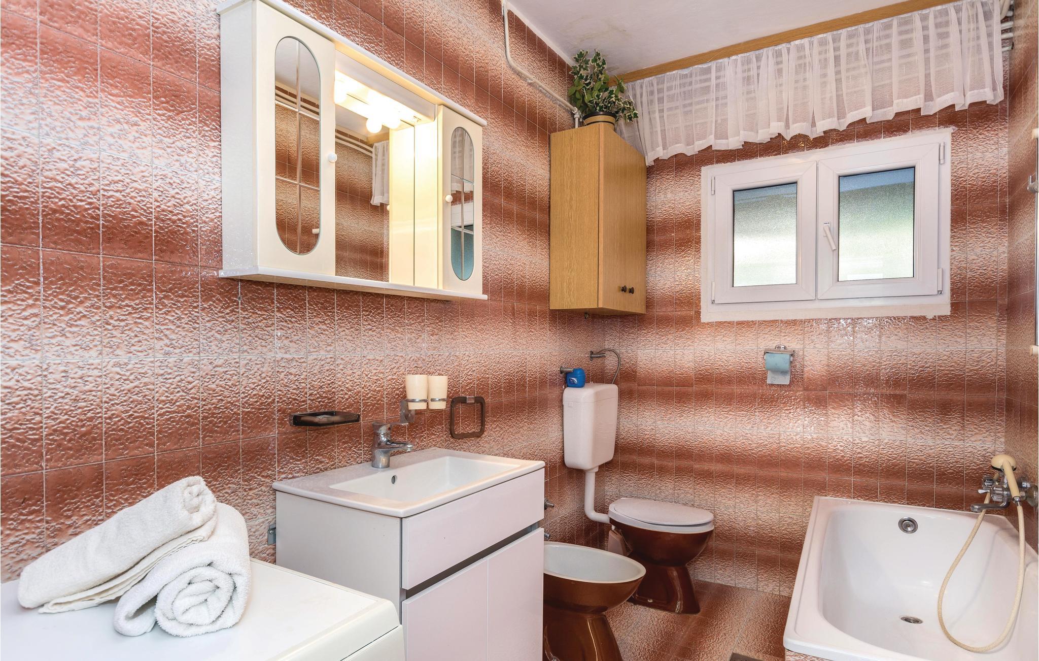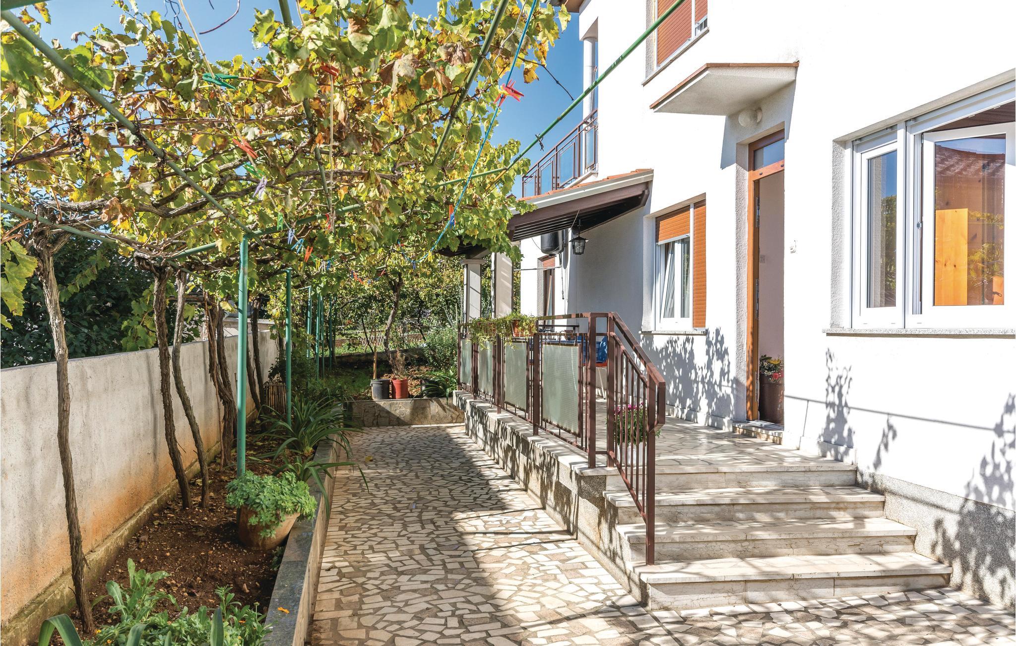 Machen Sie es sich in diesem einladenden Domizil gemütlich, wobei die heimeligen und urigen Möbel in Verbindung mit einfachen Dekorationen eine wunderbare Atmosphäre zum Wohlfühlen erschaffen. Hier können Sie es sich mit Ihrer Familie für einen Urlaub bequem machen und die Zeit in Kroatien genießen. Beim Eingang zum Haus finden Sie auch einen überdachten Terrassenbereich, der zum Lektüren verschlingen oder Kaffee schlürfen einlädt. Genießen Sie hier Ihre Mahlzeiten oder grillen im Hof unter bewachsener Pergola.