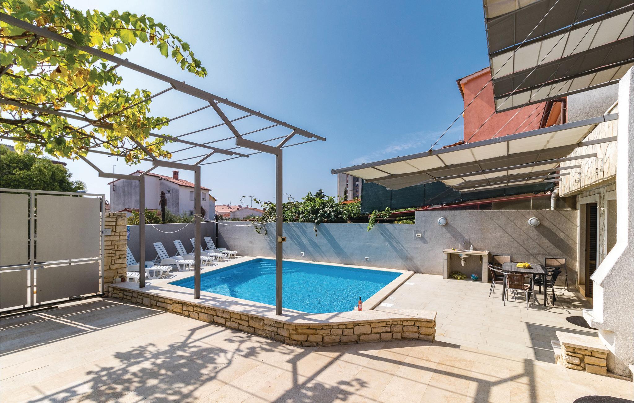 Das Reihenhaus liegt in einem Vorort von Pula, nur wenige Minuten zu Fuß von schönen Stadtstränden entfernt. Es ist ideal für eine größere Gesellschaft. Im Erdgeschoss sind ein Fitnessraum, die Sauna und ein gemeinsames Esszimmer mit Küche. Vor der Küche liegt die Terrasse mit Grillplatz. Der erste Stock hat ein geräumiges Wohnzimmer, eine voll ausgestattete Küche, eine Terrasse und zwei Schlafzimmer, im 2. Stock gibt es vier Schlafzimmer, während das Dachgeschoss 3 Schlafzimmer hat, eines davon hat Ausgang auf die Terrasse mit Meerblick. Die Ausstattung bietet Komfort. Erfrischung finden Sie im Pool mit Massagedüsen. Das Stadtzentrum beherbergt Sehenswürdigkeiten aus der Antike und sommerliche Unterhaltungen. Zur Verfügung steht auch eine Garage.