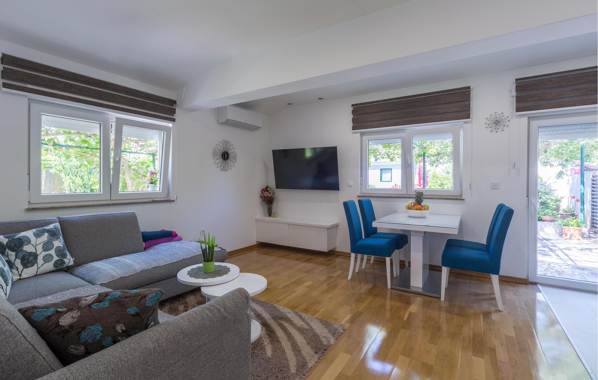 Dieses schöne Ferienhaus mit Pool befindet sich in einem Vorort von Pula. Es ist angenehm eingerichtet und der Außenbereich ist gepflegt. Entspannen Sie auf der schönen Terrasse, die für geselliges Beisammensein mit einem Glas Wein und Grillgerichten perfekt ist. Erfrischung finden Sie im Pool. Besuchen Sie Pula und entdecken Sie iele kulturell-historische Sehenswürdigkeiten, sowie Veranstaltungen während des Sommers. Der Nationalpark auf den Brijuni Inseln, sowie der Naturpark am Kap Kamenjak sind ebenfalls empfehlenswert zu besichtigen. Kosten Sie istrische Spezialitäten in einem der Restaurants in der Umgebung.