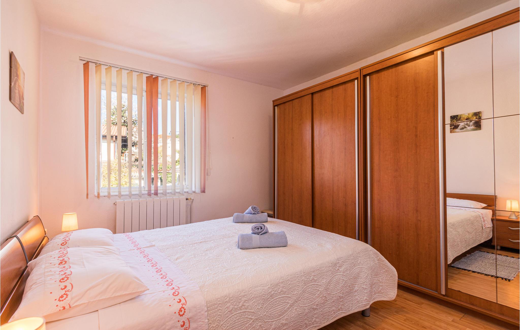 Diese geräumige Ferienwohnung erwartet ihre Gäste im 1. Stock eines Wohngebäudes. 5 Personen finden hier Platz, dabei gibt es ein Doppelbett in dem einen Schlafzimmer, 2 Einzelbetten im anderen Schlafzimmer und einen weiteren Schlafplatz im Wohnzimmer. Die Einrichtung ist funktional und ansprechend, machen Sie es sich hier gemeinsam gemütlich.
