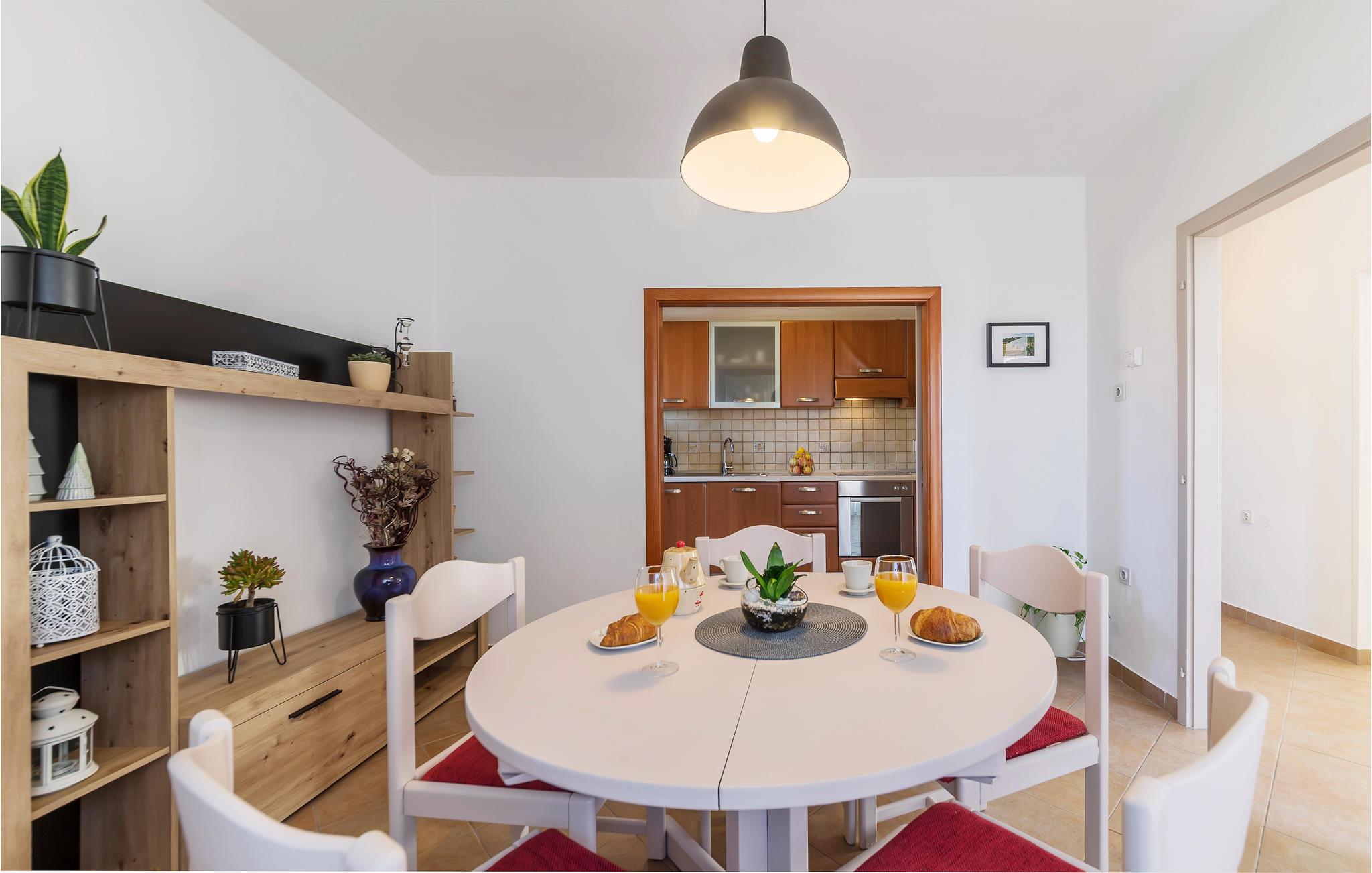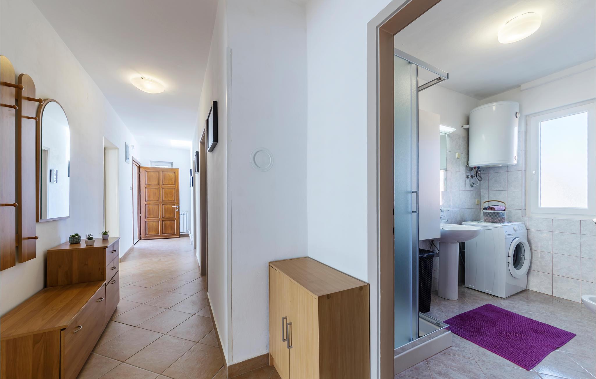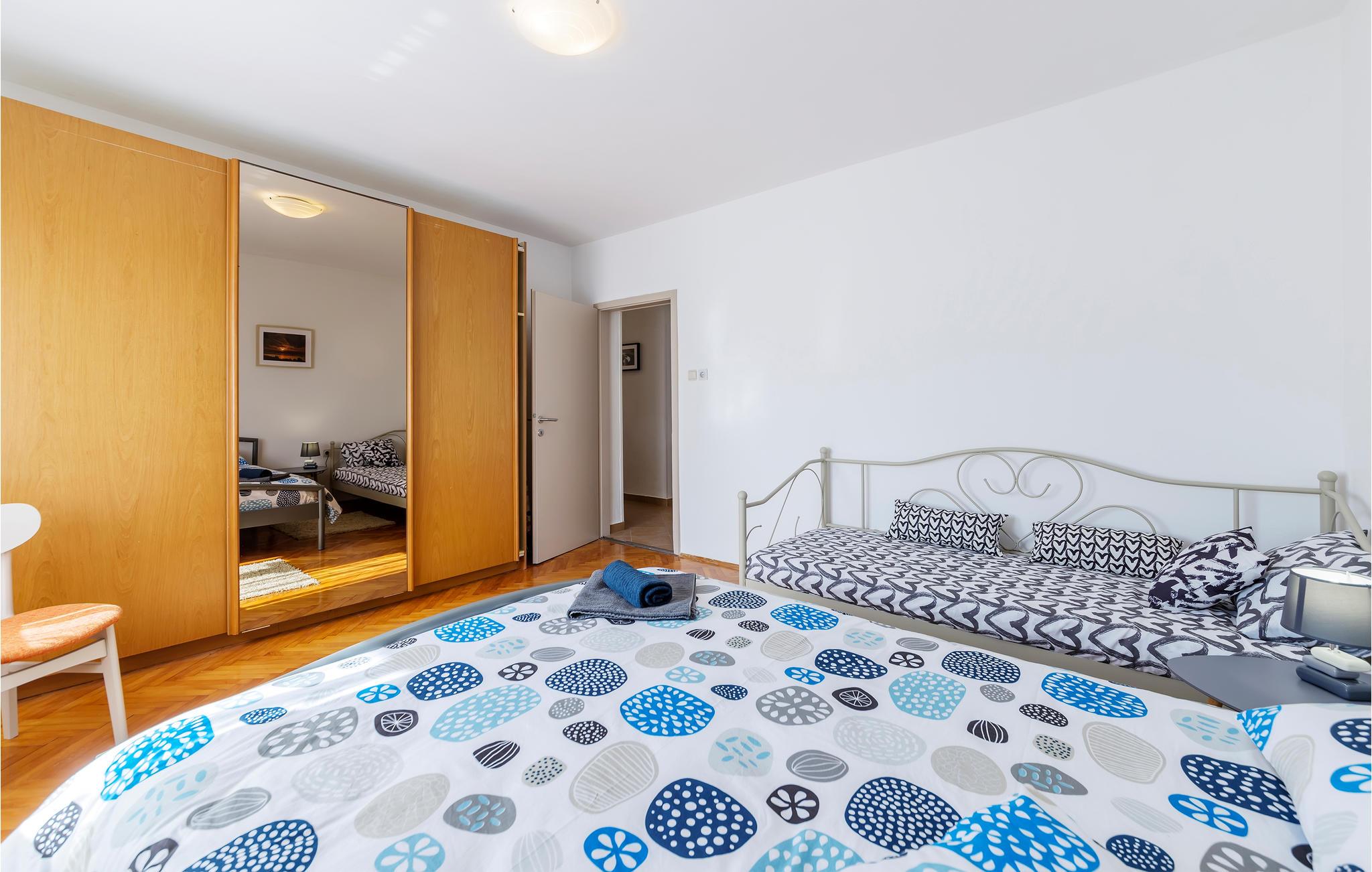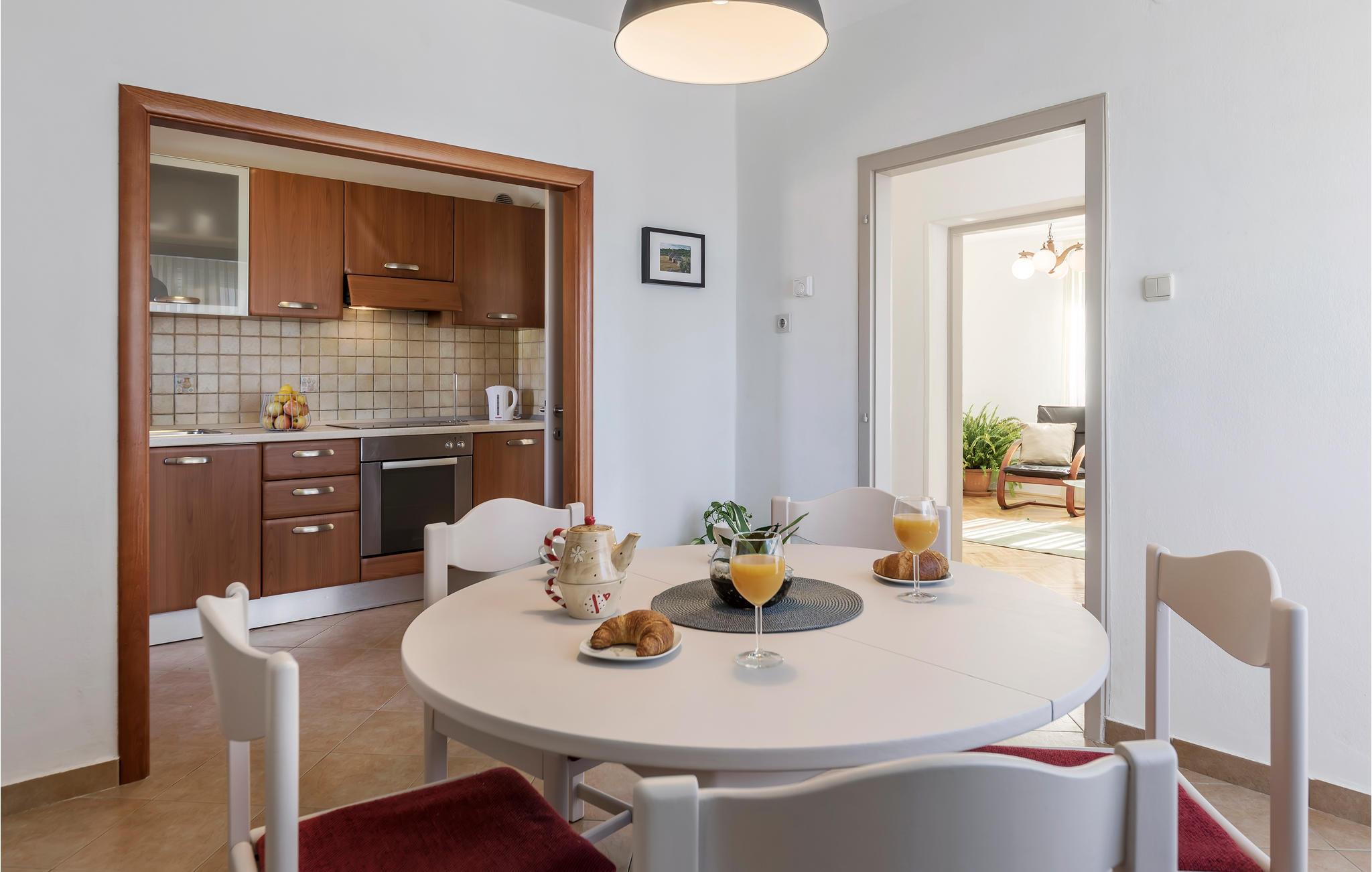 Die Wohnung erwartet ihre Gäste im 1. Stock eines Wohnhauses in Pula. Sie empfängt Sie mit einer schönen Einrichtung und großzügig geschnittenen Räumen. In den 2 Schlafzimmern befindet sich jeweils 1 Doppelbett, in einem Schlafzimmer steht außerdem ein Einzelbett. Ein weiterer Schlafplatz befindet sich im Wohnzimmer. Die Ferienwohnung eignet sich für einen erholsamen Urlaub das ganze Jahr über.