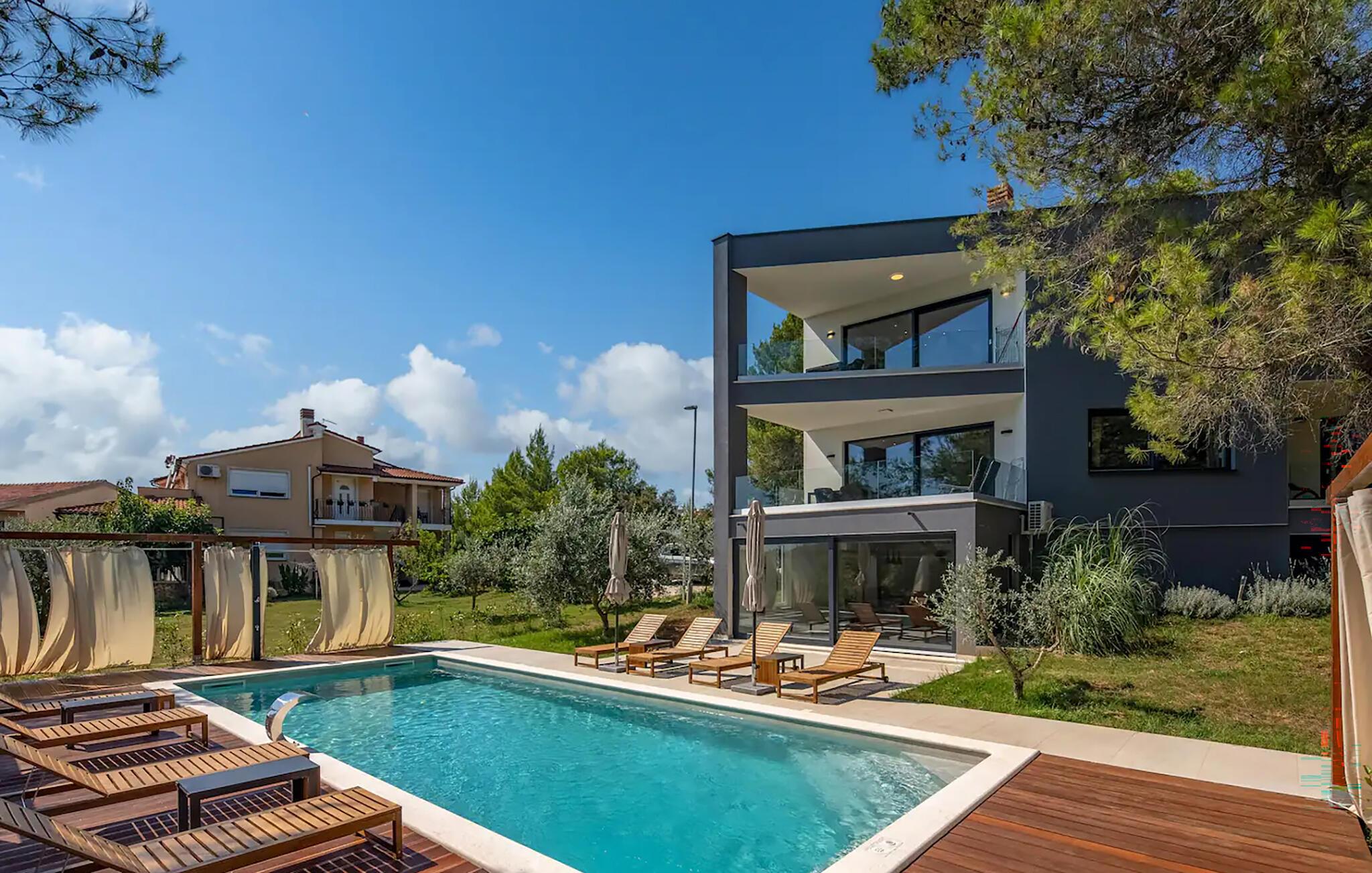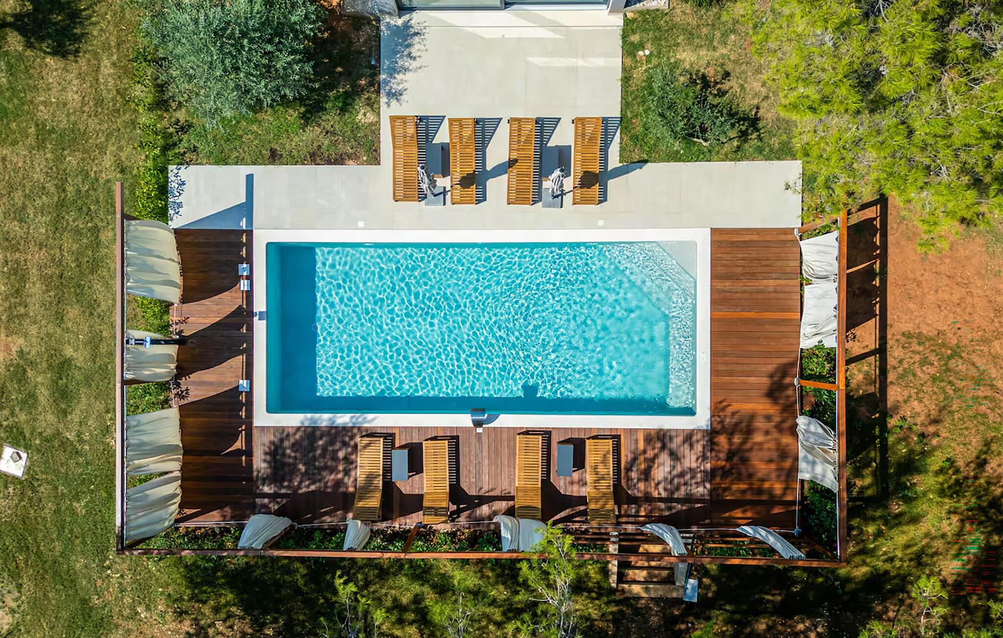 Auch der Außenbereich des Hauses hat viel zu bieten. Genießen Sie auf den Terrassen die Sonne und die langen Sommerabende und erfrischen Sie sich an heißen Tagen im Pool.