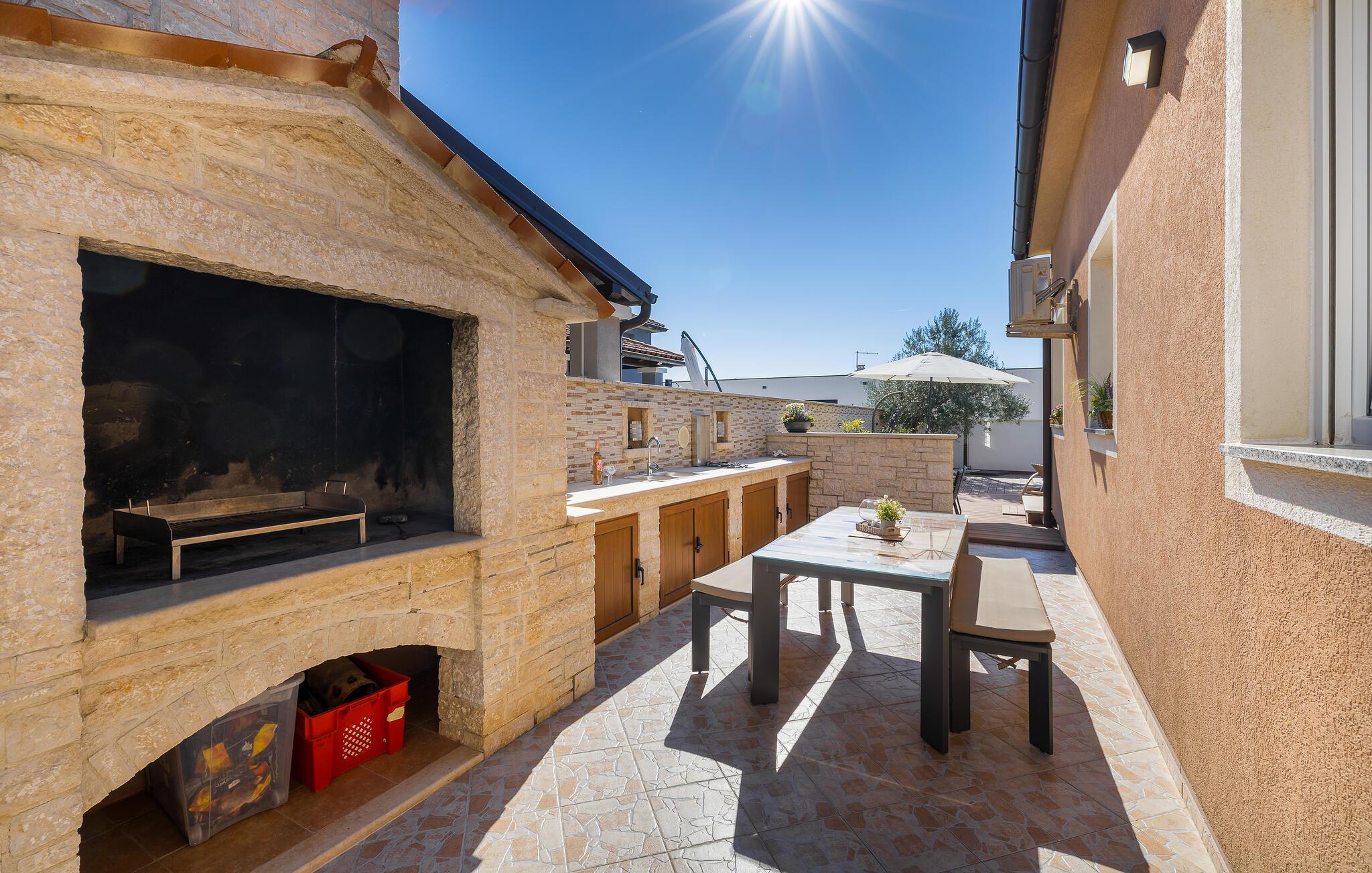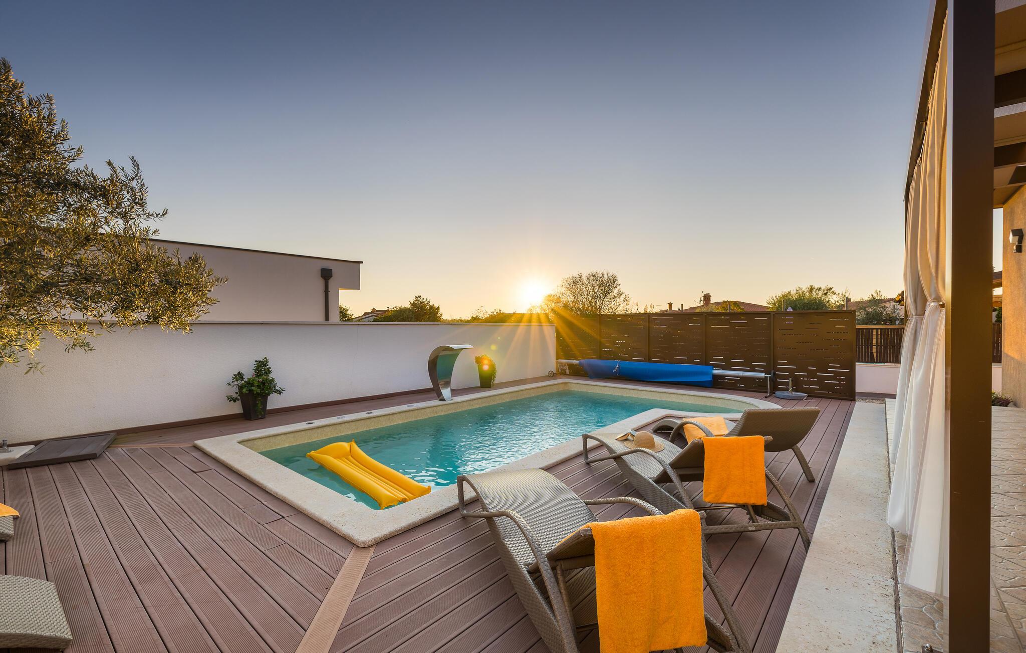 Die charmante Villa Magnolia liegt am Stadtrand von Pula und ist genau das richtige Urlaubsdomizil für Familien, die Ruhe und Entspannung suchen und doch nicht allzu weit entfernt vom Geschehen sein möchten. Das Highlight der Villa ist der erfrischende Pool mit Gegenstrom- und Wassermassage-Jets. Hier wird die ganze Familie Spass haben und wahrscheinlich die beste Zeit des Urlaubs verbringen. Entspannen Sie auf einer der Sonnenliegen und genießen Sie die kroatische Sonne. Am Esstisch auf der überdachten Terrasse kann sich die ganze Familie versammeln, um frisch am Holzkohlegrill zubereitete Mahlzeiten an lauen Sommerabenden zu genießen. Ein Kickertisch, eine Tischetennisplatte und ein Trampolin für Kinder stehen Ihnen im Außenbereich ebenfalls zur Verfügung. Betreten Sie von der Terrasse aus das Interieur, so finden Sie einen offenen Wohnraum vor. Alles ist liebevoll eingerichtet und dekoriert. Ein gemütlicher Wohnbereich und eine voll ausgestattete Küche mit Esstisch sind ideal für Ihre Familie, um sich wie zu Hause zu fühlen. 3 farbenfrohe Schlafzimmer mit bequemen Doppelbetten bieten Platz für bis zu 6 Personen. Die voll klimatisierte Villa verfügt zudem über ein schönes Badezimmer mit Badewanne. Aber auch Pula oder der Nationalpark Brijuni sowie viele traumhafte Strände sind gut zu erreichen. Buchen Sie Villa Magnolia und verbringen Sie einen unvergesslichen Urlaub am südlichen Zipfel Istriens.Die Villa Magnolia befindet sich im süd-westlichen Teil von Istrien, nur 6 km vom Touristenzentrum Pula entfernt. Wir empfehlen sie an Familien mit Kindern und Gäste, die Ruhe der Hektik der großen Städte vorziehen. Neben Schwimmen und Sonnenbaden können Sie auch Ihre Zeit beim Fahrradfahren verbringen, da viele istrische Radwege durch oder nahe Sisan verlaufen.